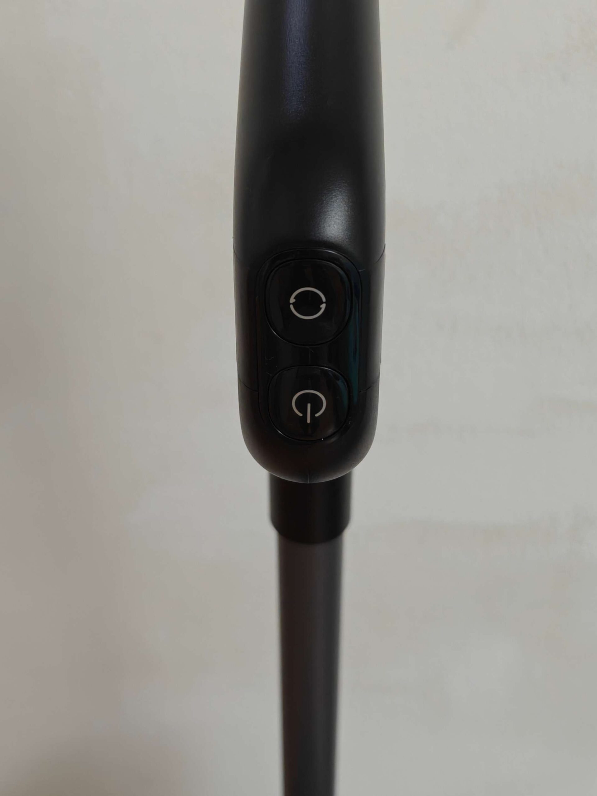 L’impugnatura è ergonomica e comoda per lunghe sessioni di pulizia. I pulsanti di accensione e cambio modalità sono facilmente accessibili.