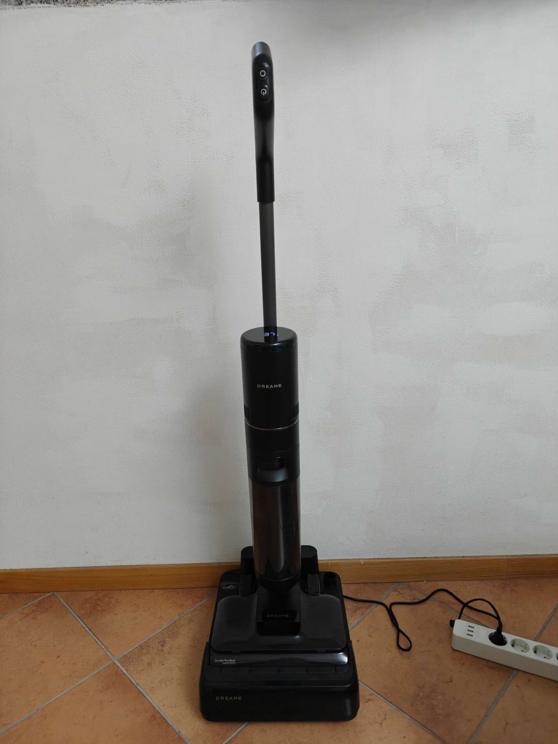 La base è essenziale per il funzionamento del Dreame H12 Pro Flex Reach, fungendo da stazione di ricarica e fulcro per le sue funzioni igieniche più avanzate. Nell’angolo in alto a destra è presente l’alloggiamento per la spazzolina di pulizia.