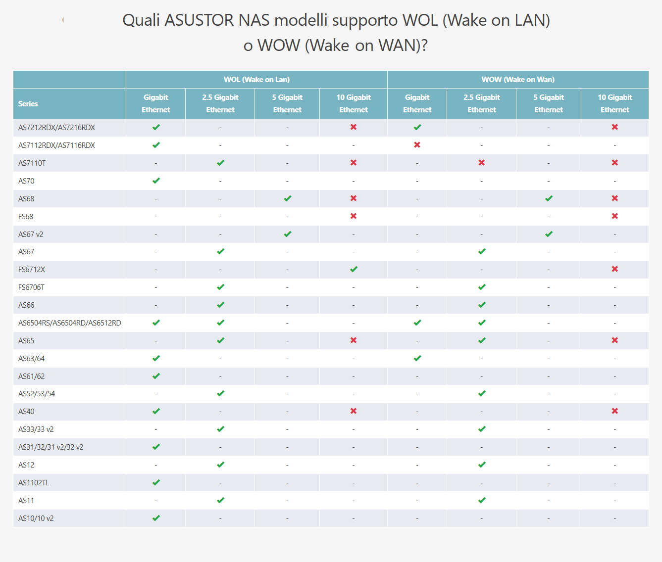 Il supporto Wake On Wan è stato a oggi già implementato sulla maggioranza delle serie di NAS ASUSTOR e l’Azienda prevede di estenderlo ad altri modelli idonei tramite aggiornamenti software, confermando il proprio impegno nel migliorare costantemente l’esperienza utente attraverso l’innovazione del firmware delle proprie soluzioni.