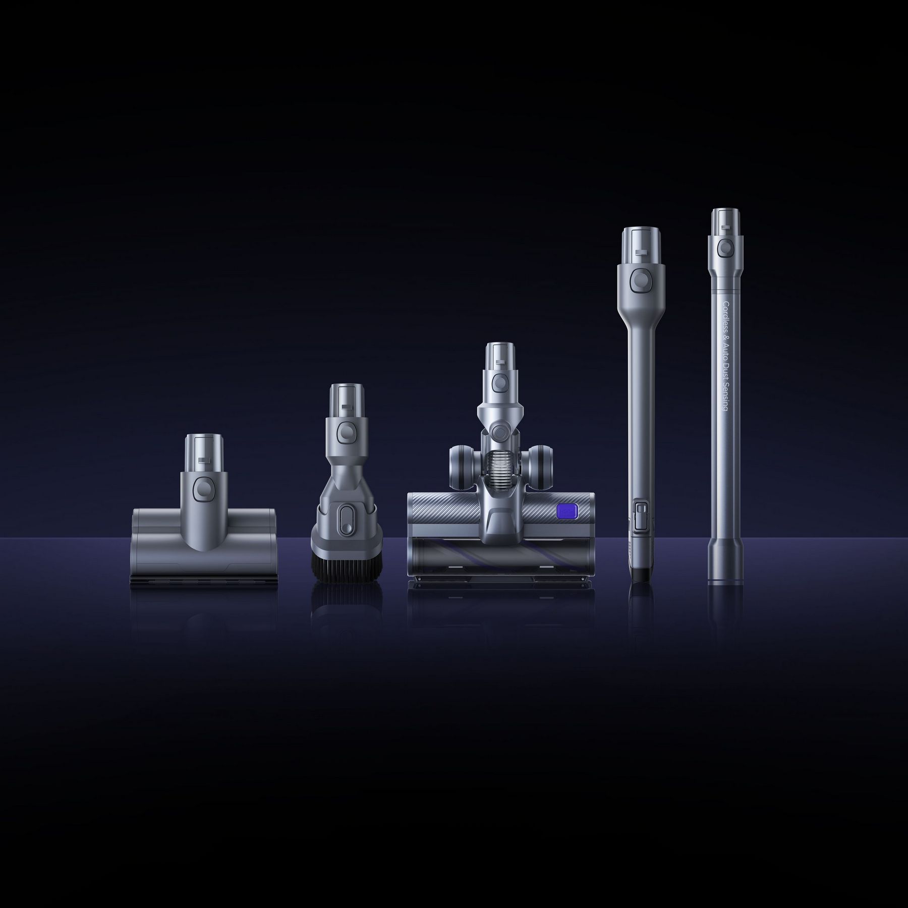 Ogni componente è stato sviluppato pensando alle reali esigenze quotidiane. La spazzola principale garantisce una pulizia profonda su tappeti e pavimenti duri, grazie al design anti-groviglio e alla luce integrata per individuare la polvere, che rende visibile anche lo sporco nascosto. La mini spazzola motorizzata è ideale per divani, materassi e peli di animali, la spazzola morbida protegge le superfici delicate, mentre la bocchetta per fessure raggiunge angoli stretti e bordi difficili da pulire.