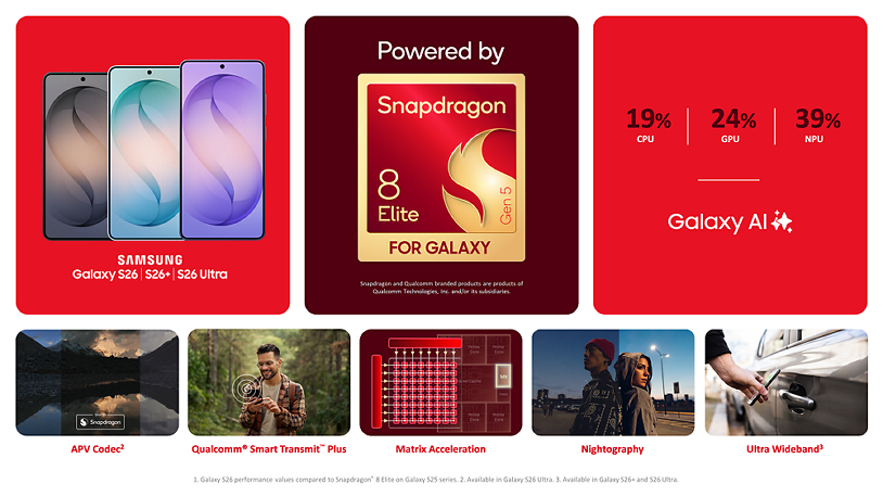 “Siamo orgogliosi di approfondire la nostra collaborazione con Samsung mentre la serie Galaxy S26 inaugura la prossima evoluzione dell’intelligenza mobile, potenziata da Snapdragon 8 Elite Gen 5 per i dispositivi Galaxy”, ha commentato O.H. Kwon, senior vice president e presidente di Qualcomm APAC, QUALCOMM CDMA Technologies (Korea) YH. “Questo traguardo riflette la solidità della nostra partnership strategica e il nostro impegno condiviso per offrire prestazioni accelerate dall’AI e esperienze utente fluide sui dispositivi di punta di Samsung”.