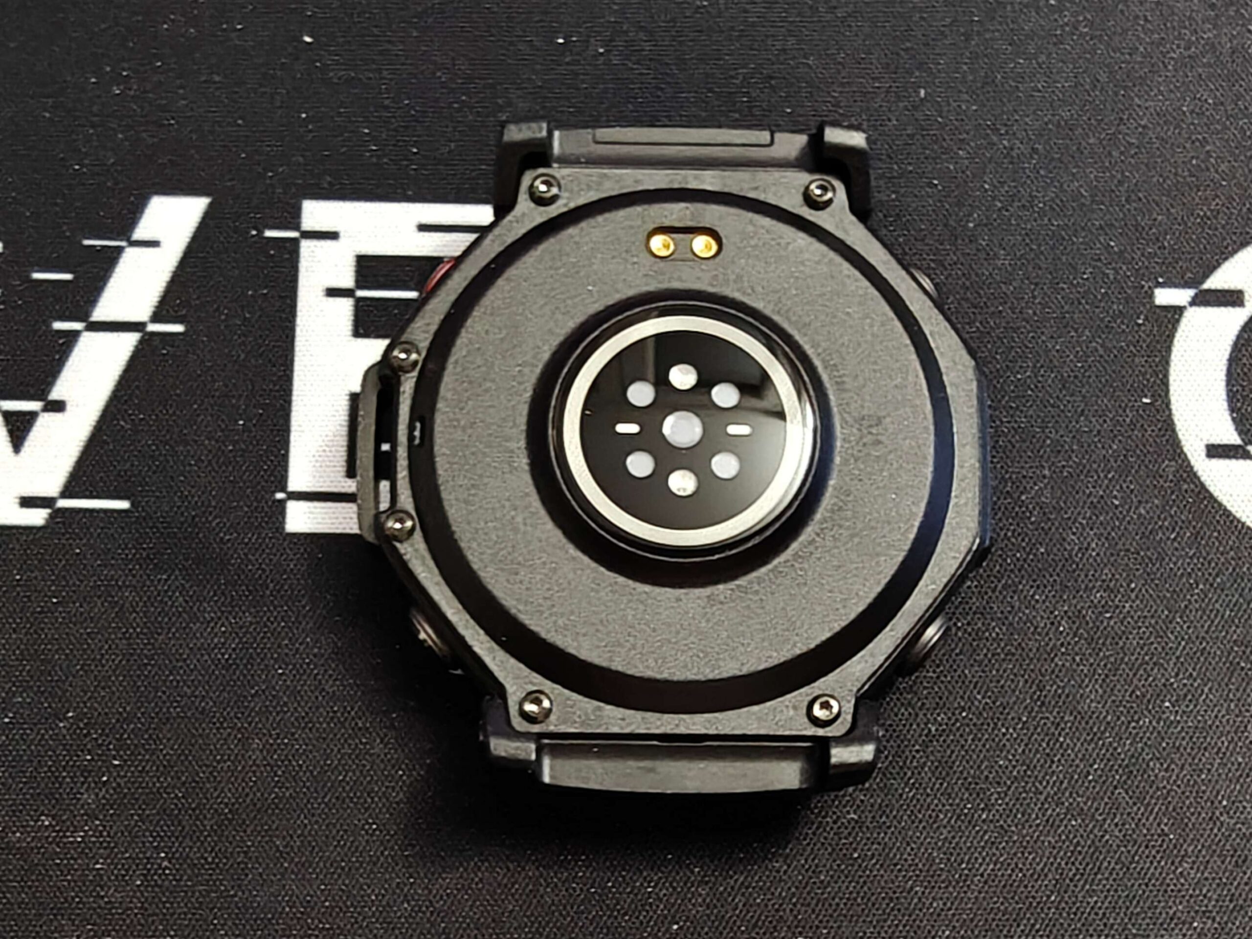 Nella parte posteriore, troviamo il sensore per il battito cardiaco e gli attacchi magnetici per la basetta di ricarica.