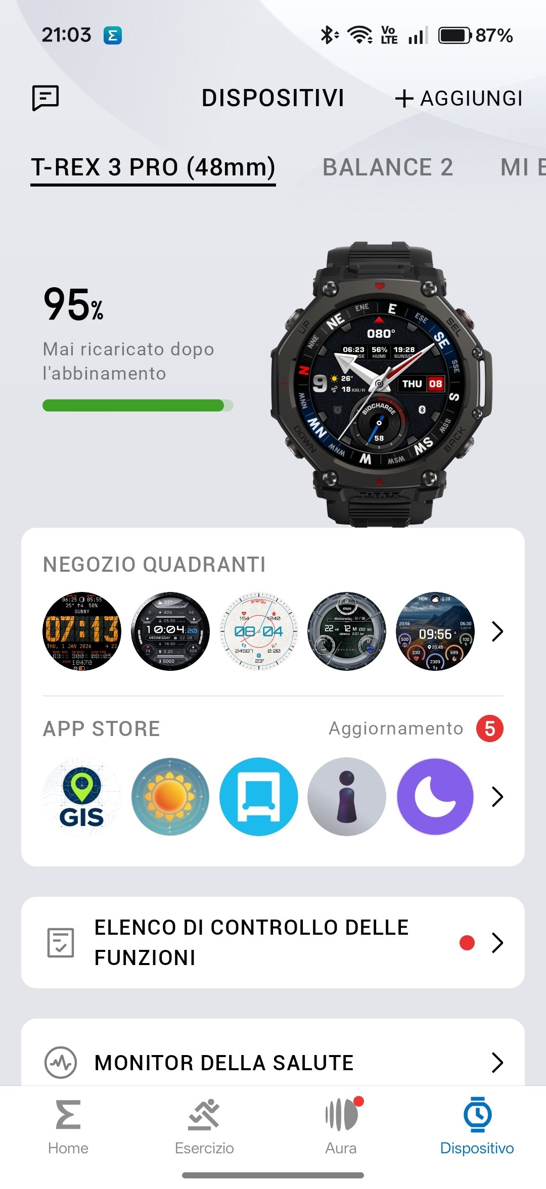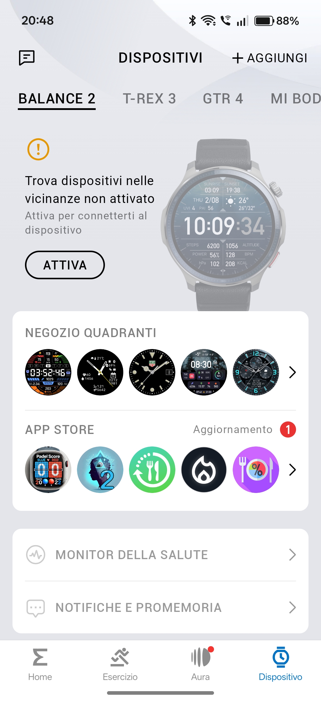 Tramite l’app Zepp disponibile per Android che per iOS è possibile sia gestire a pieno lo smartwatch, sia tenere monitorate e sincronizzate le varie attività.