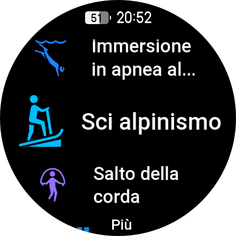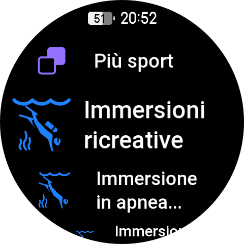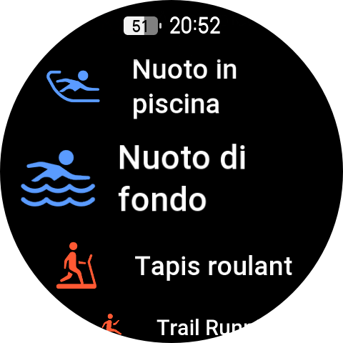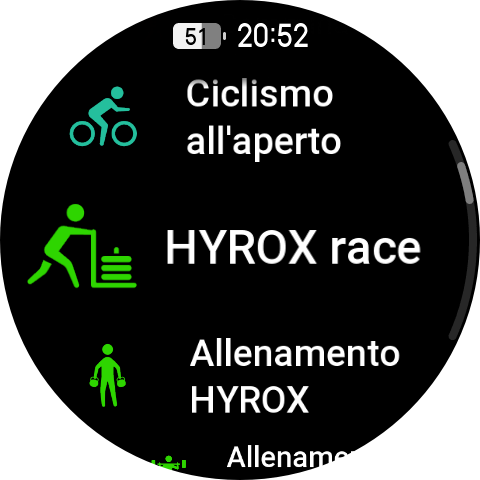 Tramite il pulsante superiore possiamo accedere alle varie modalità sportive presenti che sono oltre 180, tra cui la modalità Hyrox Race, l’apnea, l’ultramaratona e una modalità di Strenght Training aggiornata. Il corpo dell’orologio e il cinturino standard sono certificati per l’apnea fino a 45 metri e il display AMOLED super luminoso mantiene i dati chiave facilmente visibili anche sott’acqua.