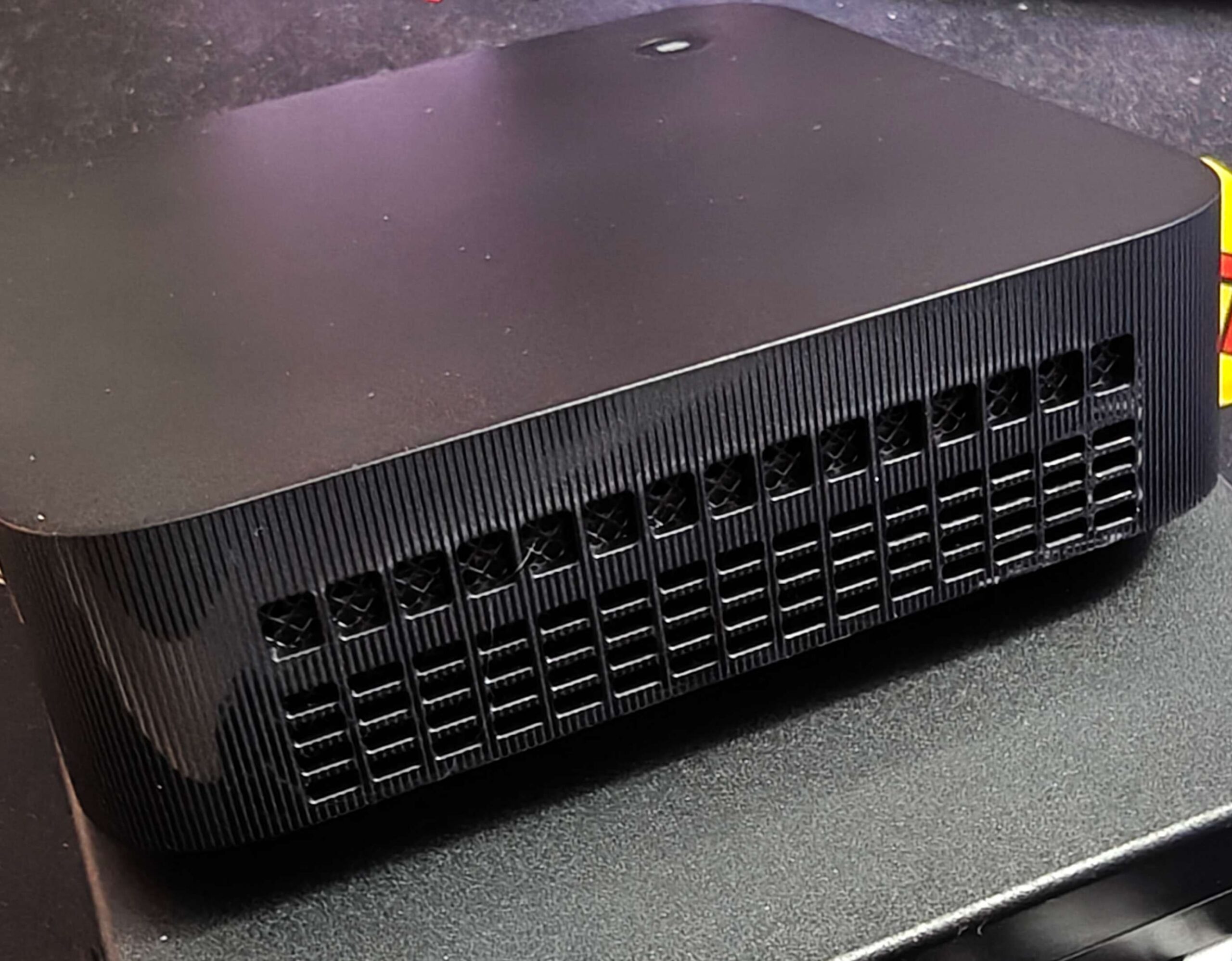 Il PN54 è un Mini-PC compatto (circa 120 x 130 x 58 mm), progettato per l’installazione in spazi ristretti e montabile anche dietro il monitor tramite il supporto VESA. Esteticamente è sobrio e funzionale, con uno chassis robusto che privilegia la ventilazione, essenziale data la potenza interna da gestire.
