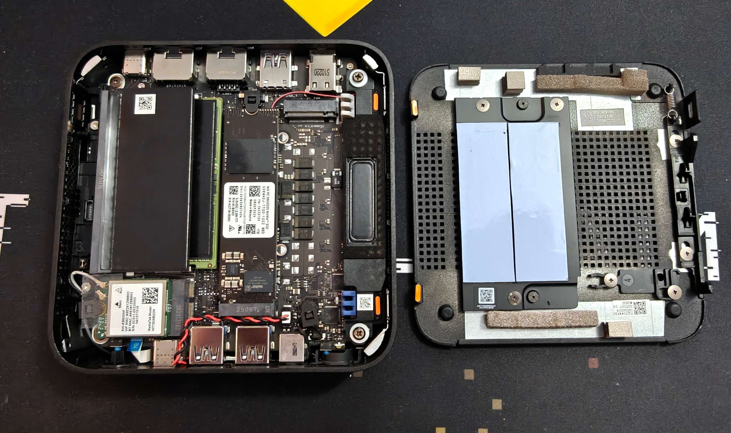 Il PN54 eredita la filosofia DIY (Do-It-Yourself) di ASUS, ovvero, l’accesso ai componenti interni per l’espansione è notevolmente semplice, richiedendo solo la rimozione di poche viti standard. Questo permette agli utenti di installare rapidamente RAM DDR5 aggiuntiva, sostituire l’SSD M.2 NVMe o aggiungerne un altro, senza bisogno di attrezzi specifici. Questa semplicità è un enorme vantaggio per chi acquista il dispositivo in versione barebone (senza RAM e archiviazione preinstallate).