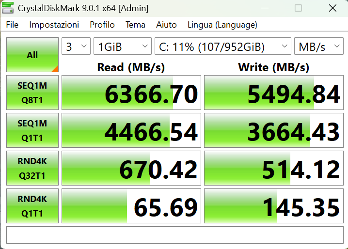 In questi scenari, il sistema termico entra in funzione al 100%, la ventola aumenta significativamente di velocità per dissipare il calore generato, e la rumorosità diventa chiaramente udibile, anche se il suono emesso è generalmente un flusso d’aria costante piuttosto che un fischio acuto e fastidioso. Sebbene il rumore non sia assente, il PN54 riesce a mantenere le temperature della CPU a livelli di sicurezza, evitando il thermal throttling (riduzione forzata delle prestazioni per evitare il surriscaldamento) nella maggior parte dei casi d’uso professionale. Questo indica che il design termico è adeguato alla potenza installata, anche se il prezzo da pagare per le prestazioni è un maggiore impatto acustico sotto stress.