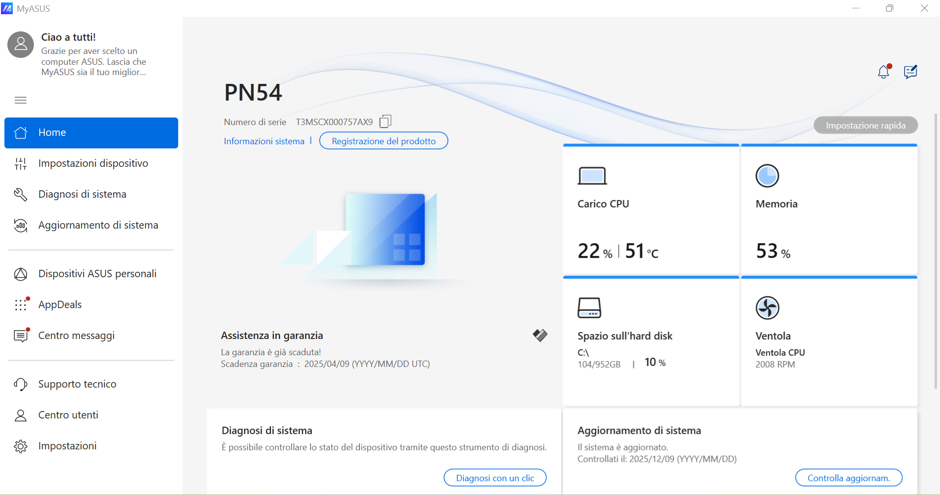 MyAsus è uno strumento di sistema tramite il quale è possibile gestire lo stato del sistema, dell’hardware, dell’audio, gli aggiornamenti, nonché risolvere i problemi in completa autonomia o contattando il servizio di assistenza.
