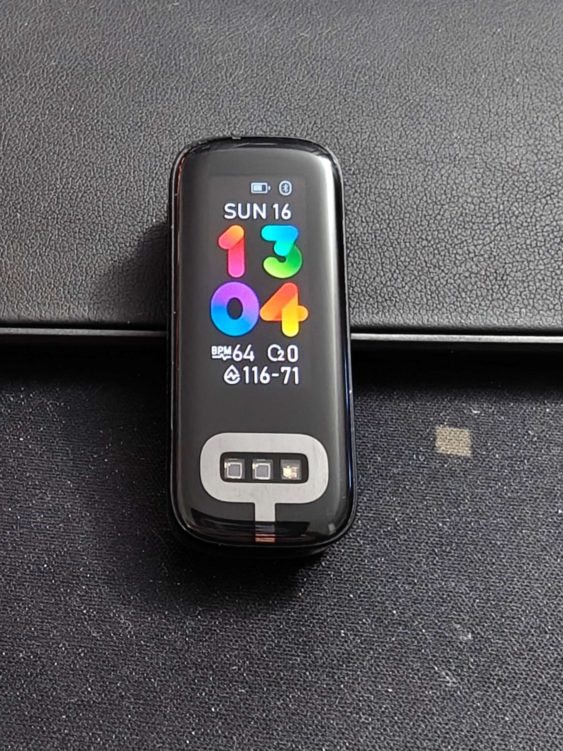 L’ASUS VivoWatch 6 Aero è dotato di un display AMOLED da 1,1 pollici, un netto miglioramento rispetto ai modelli precedenti, che garantisce colori vividi e, soprattutto, un ottimo contrasto con neri molto profondi, rendendo i numeri e le icone sullo schermo più leggibili e piacevoli da vedere. Grazie all’alta luminosità tipica dell’AMOLED, lo schermo rimane facilmente leggibile anche quando ci si trova all’aperto sotto la luce diretta del sole.