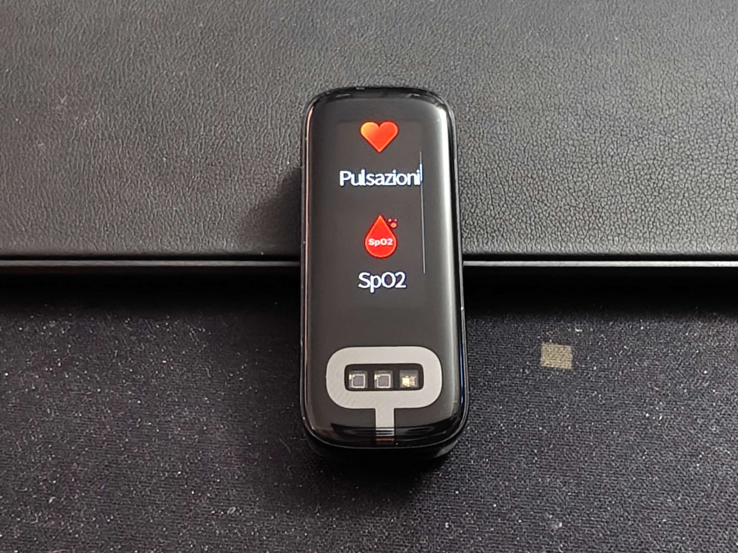 Frontalmente sulla cornice superiore del display troviamo il sensore a elettrodo per la misurazione della Pressione.