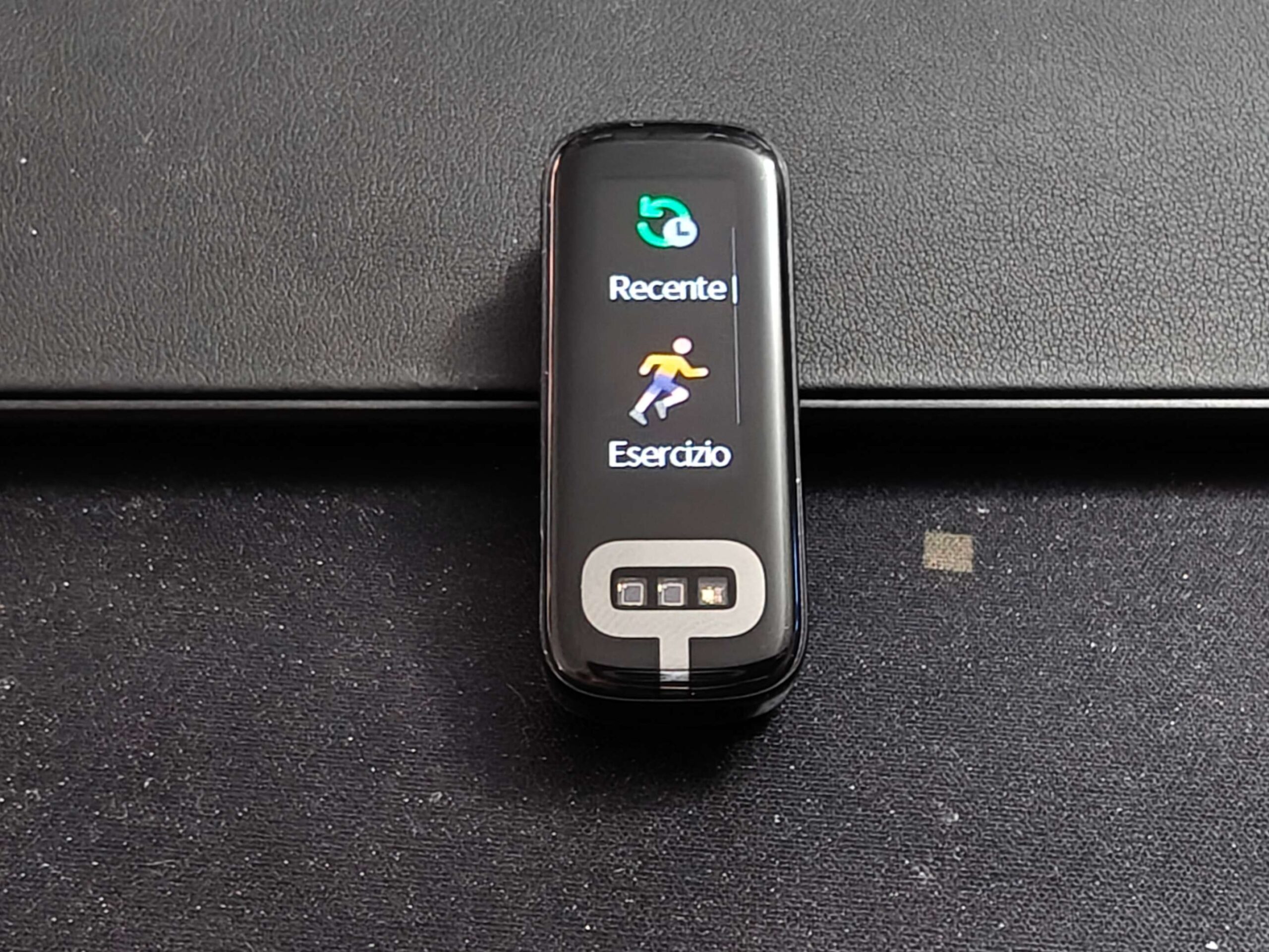 Il display è integrato in una cornice sottile che contribuisce all’aspetto moderno e discreto della smart band ed è resistente a graffi e a urti quotidiani. Infine, sebbene l’uso continuo riduca leggermente l’autonomia, l’AMOLED permette di avere, opzionalmente, la funzione Always-On per tenere l’orario sempre visibile, gestendo il consumo energetico in modo intelligente.