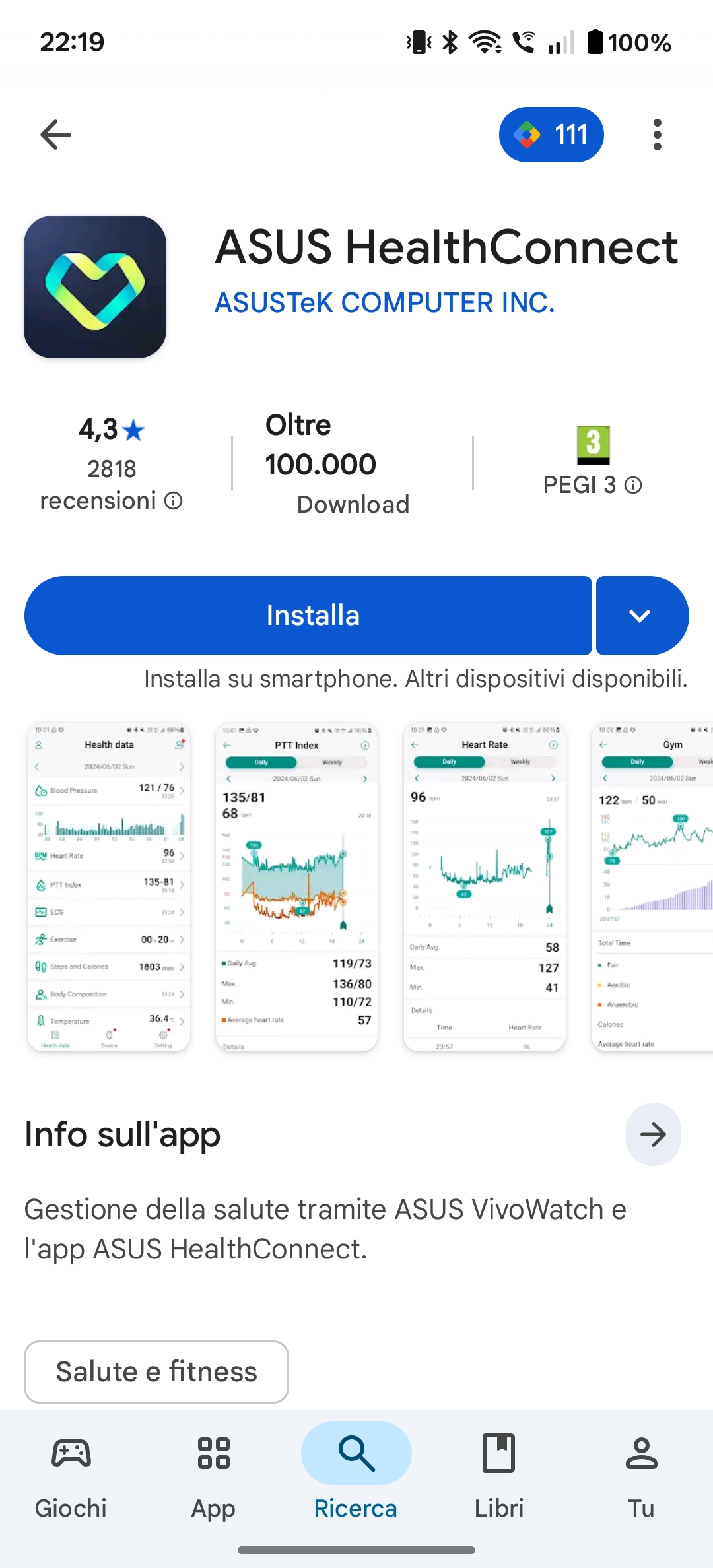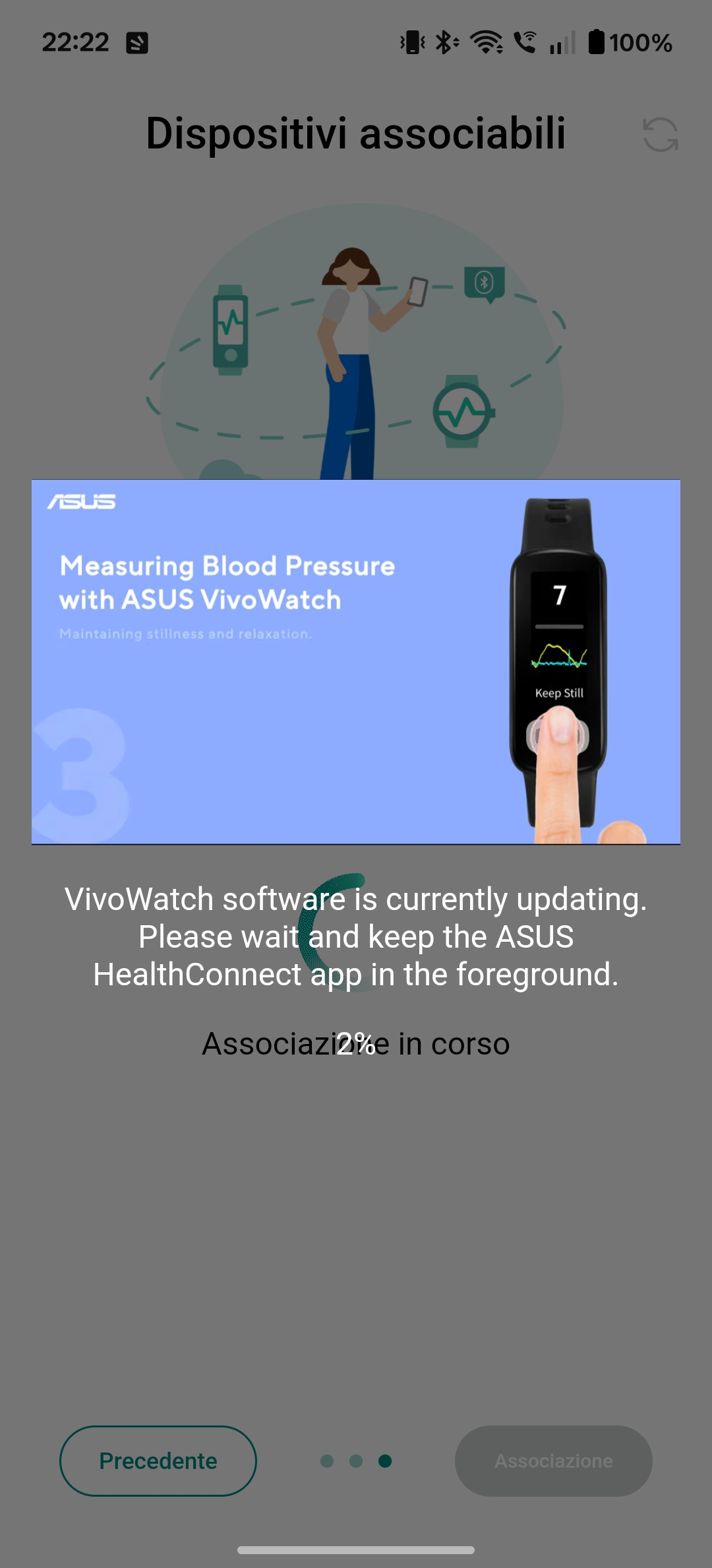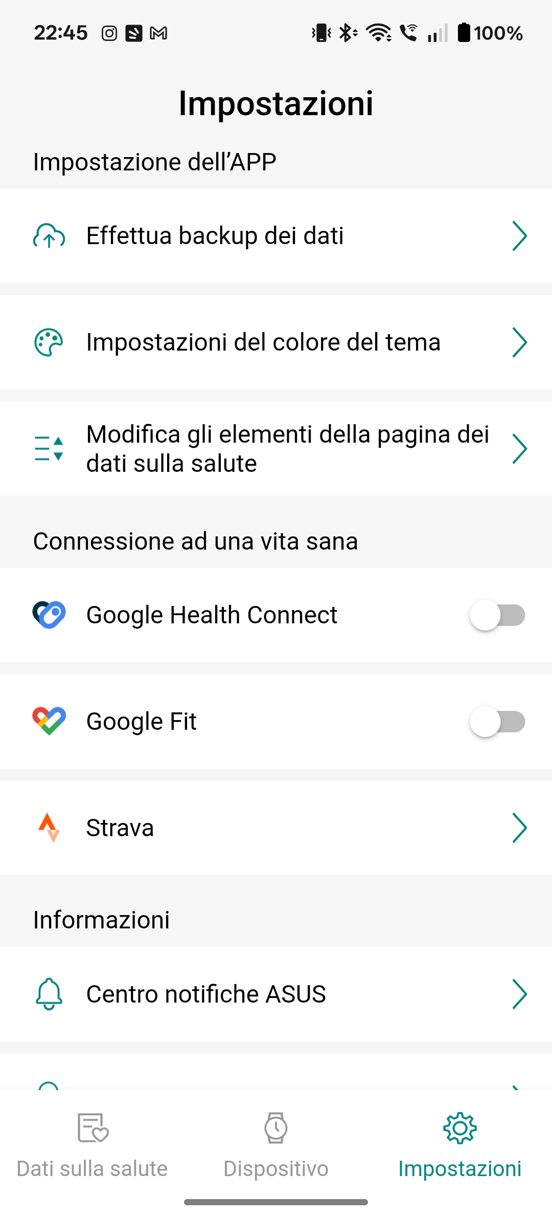 L’associazione avviene scaricando l’app di gestione, ASUS HealthConnect e risulta essere molto facile e immediata, tramite l’app abbiamo accoppiato i due dispositivi e cominciato la configurazione della Smart band.