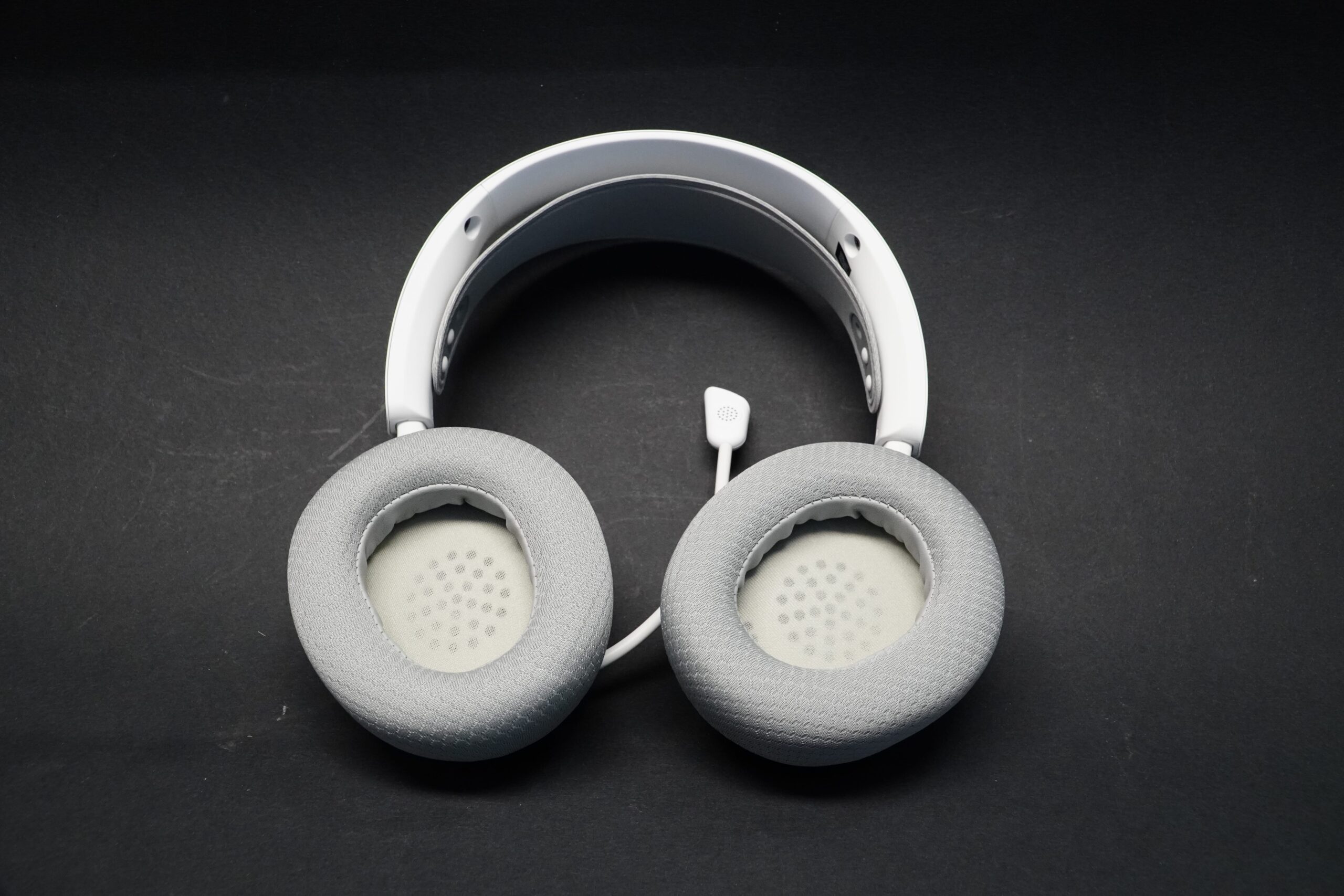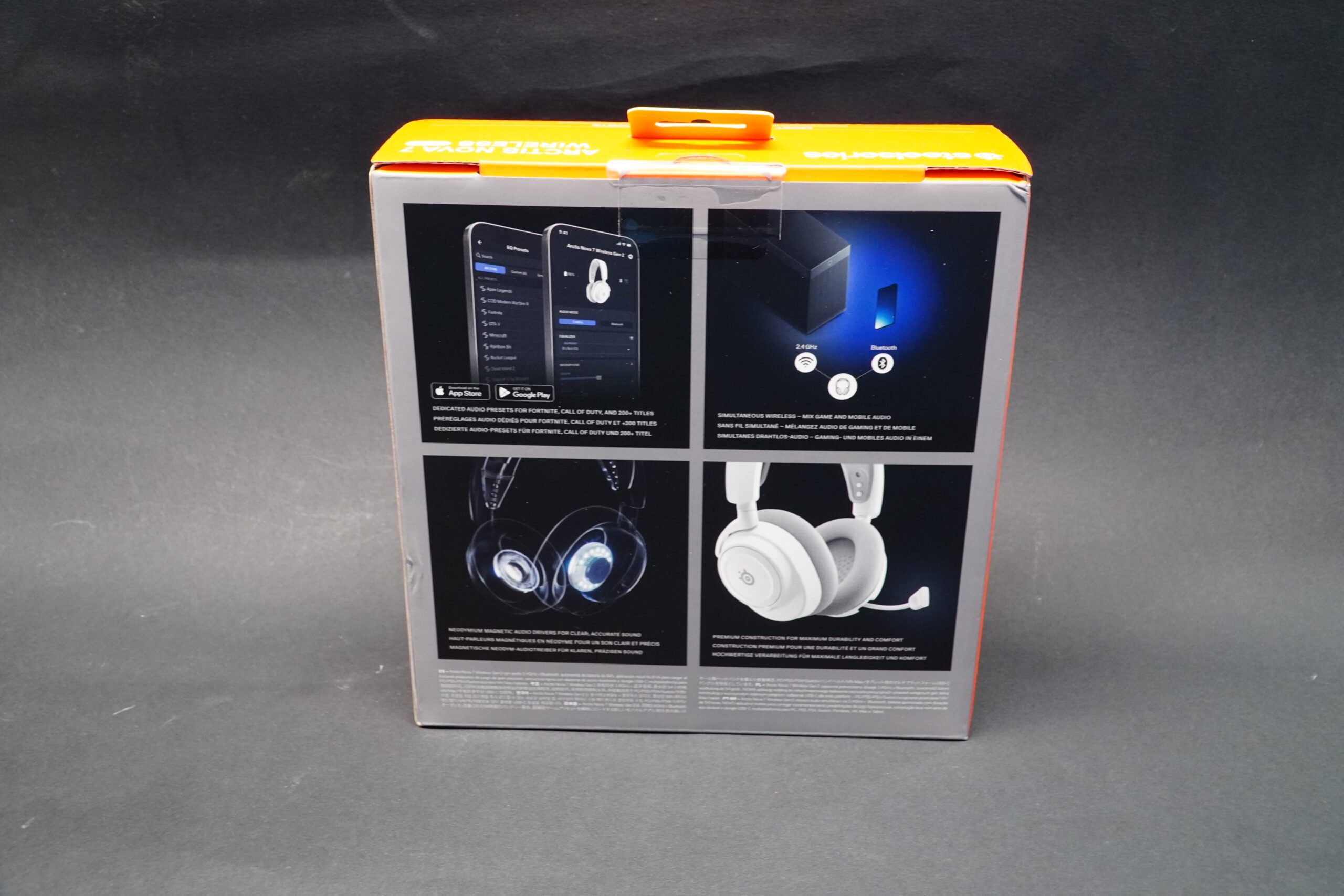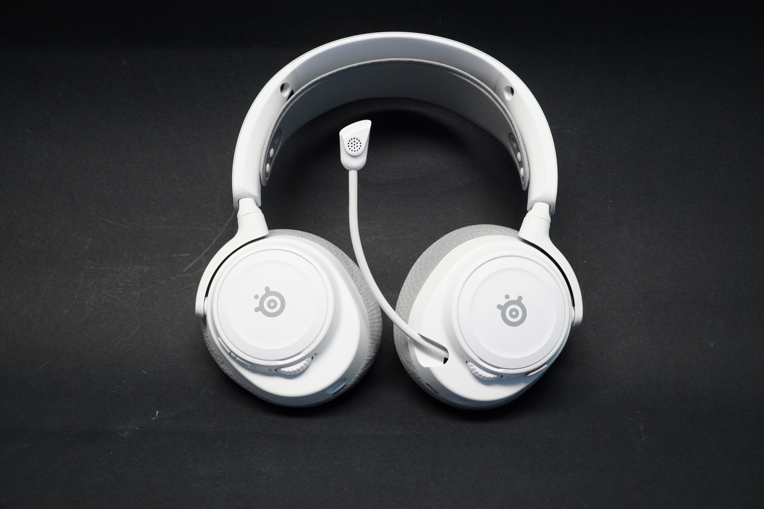 Esternamente, su entrambi i padiglioni troviamo il logo SteelSeries; sul destro sono presenti la rotella per il volume, il pulsante multifunzione per accensione/spegnimento e mute (con LED rosso di promemoria), mentre sul sinistro il pulsante Bluetooth per rispondere alle chiamate, saltare tracce (doppio/triplo clic per play/pausa e navigazione musicale) e il bilanciamento ChatMix.
