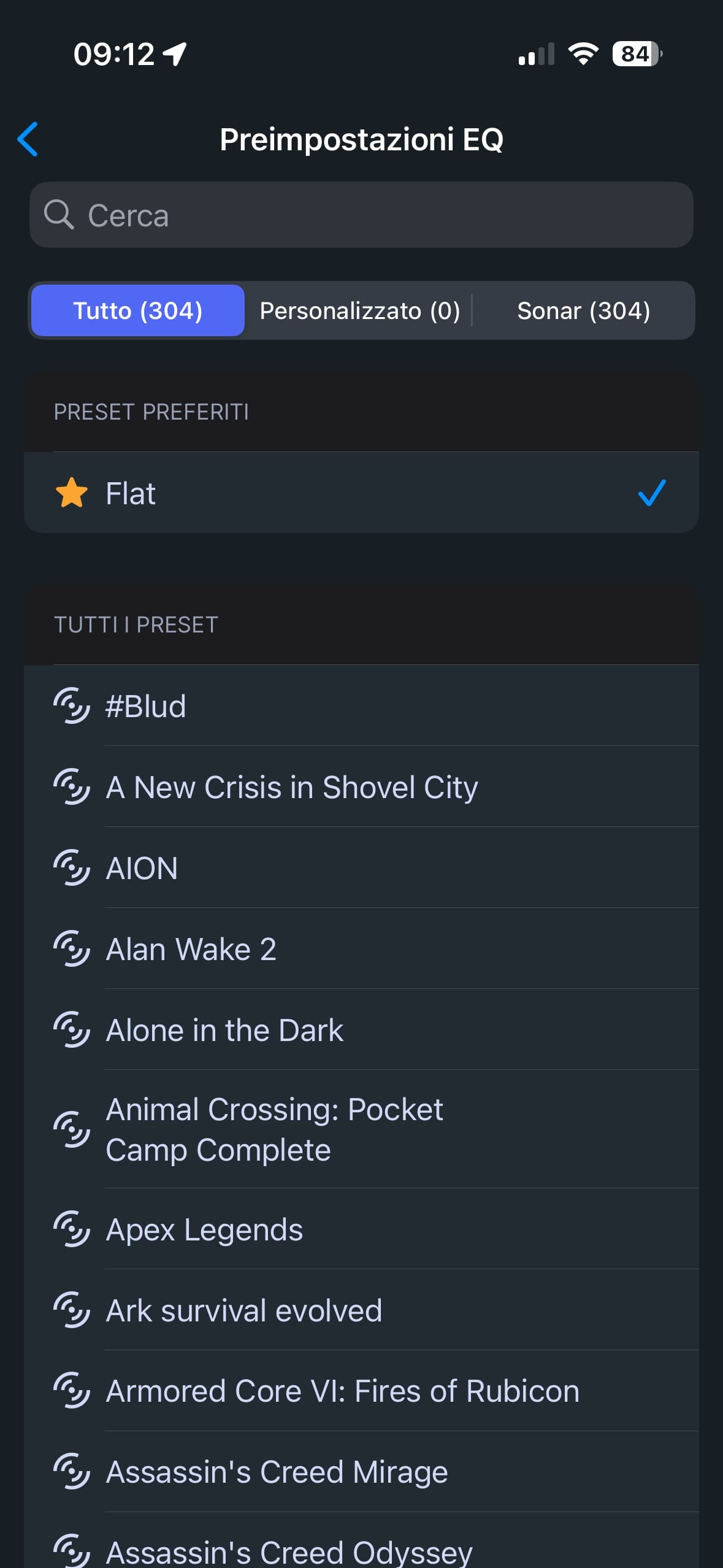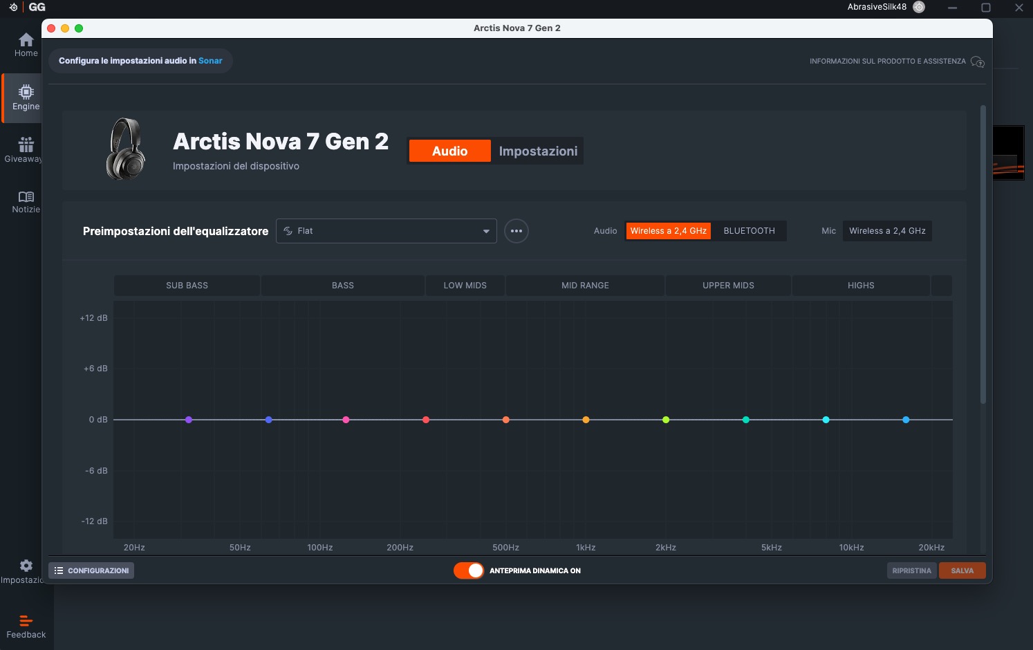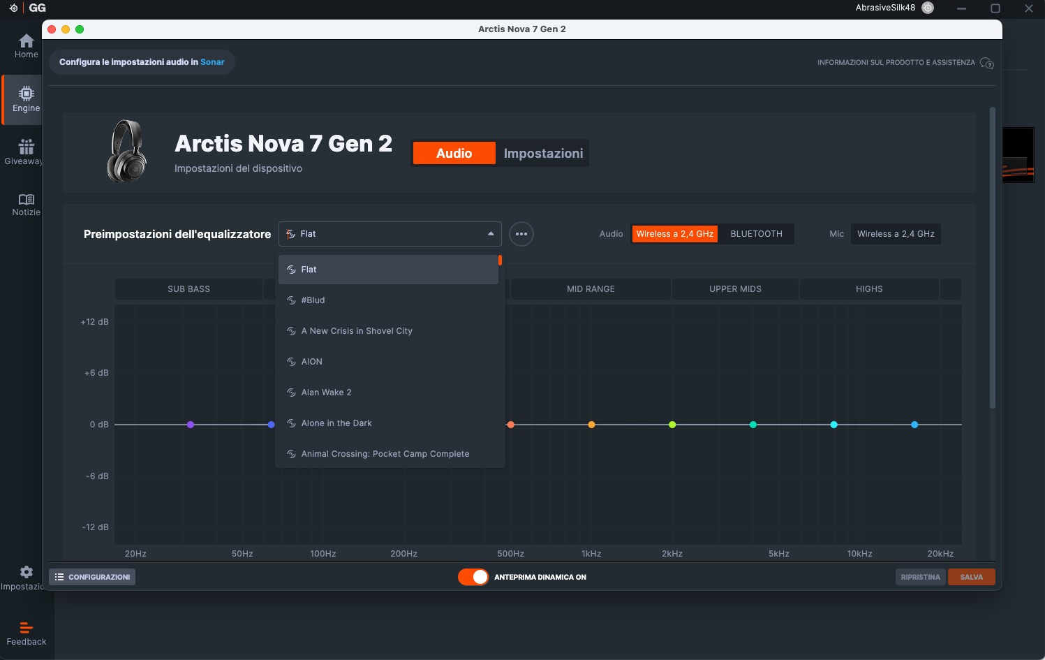 Software Sonar: Sì (PC GG app con preset EQ e audio spaziale)
