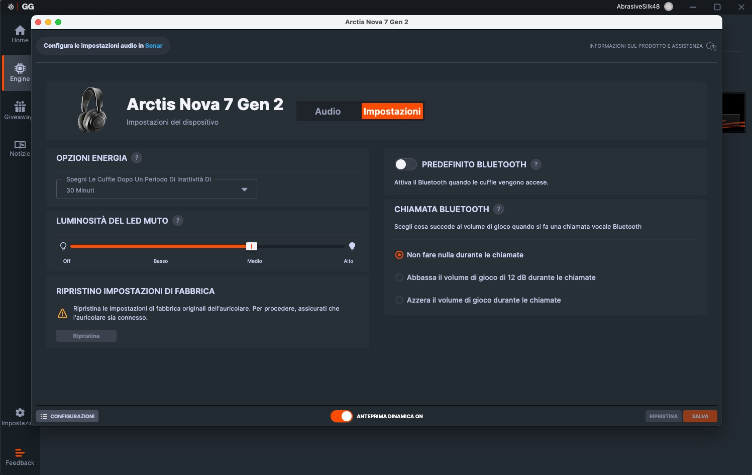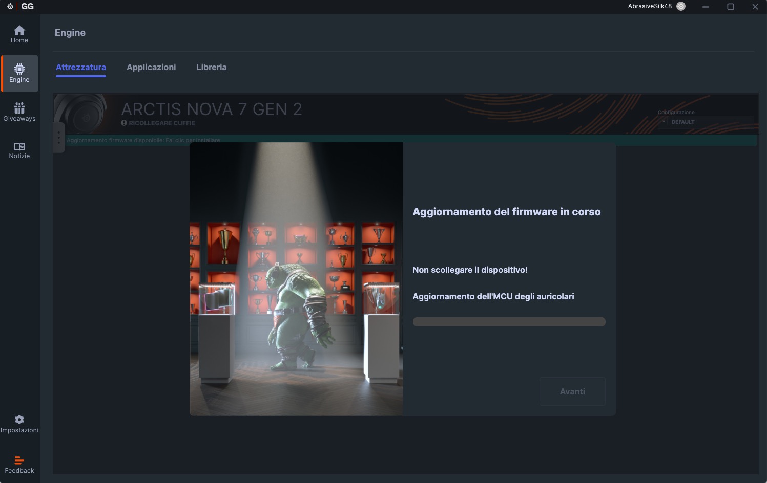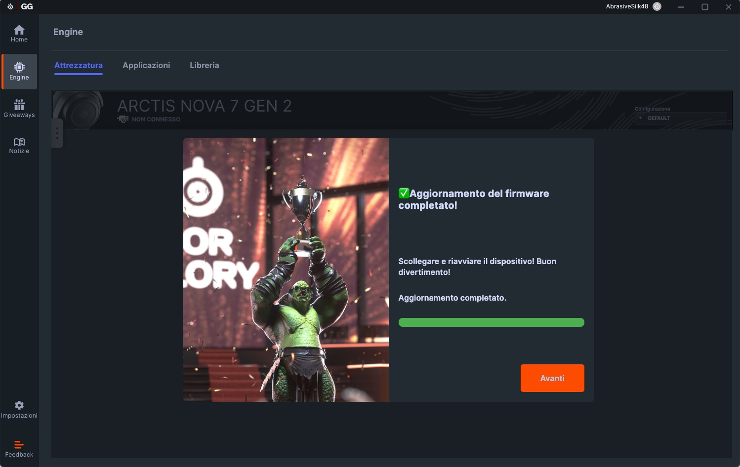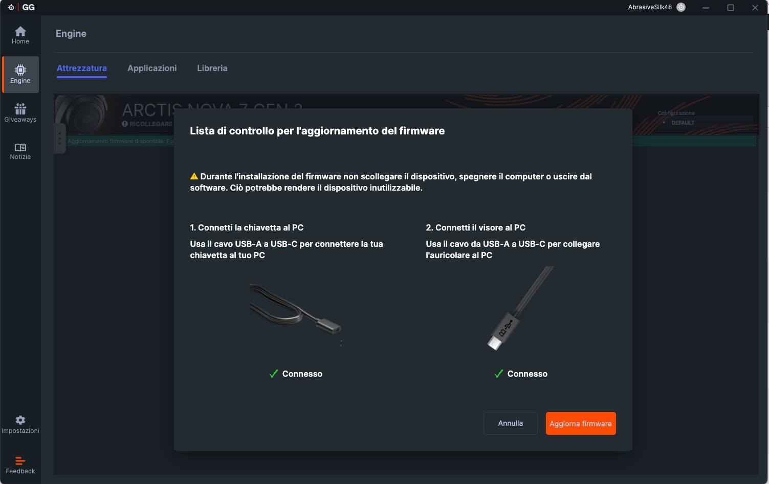 Inoltre tramite app in caso di aggiornamento firmware ci verrà notificato attraverso il sistema e si potrà procedere all’aggiornamento via PC/Mac con il software SteelSeries GG.