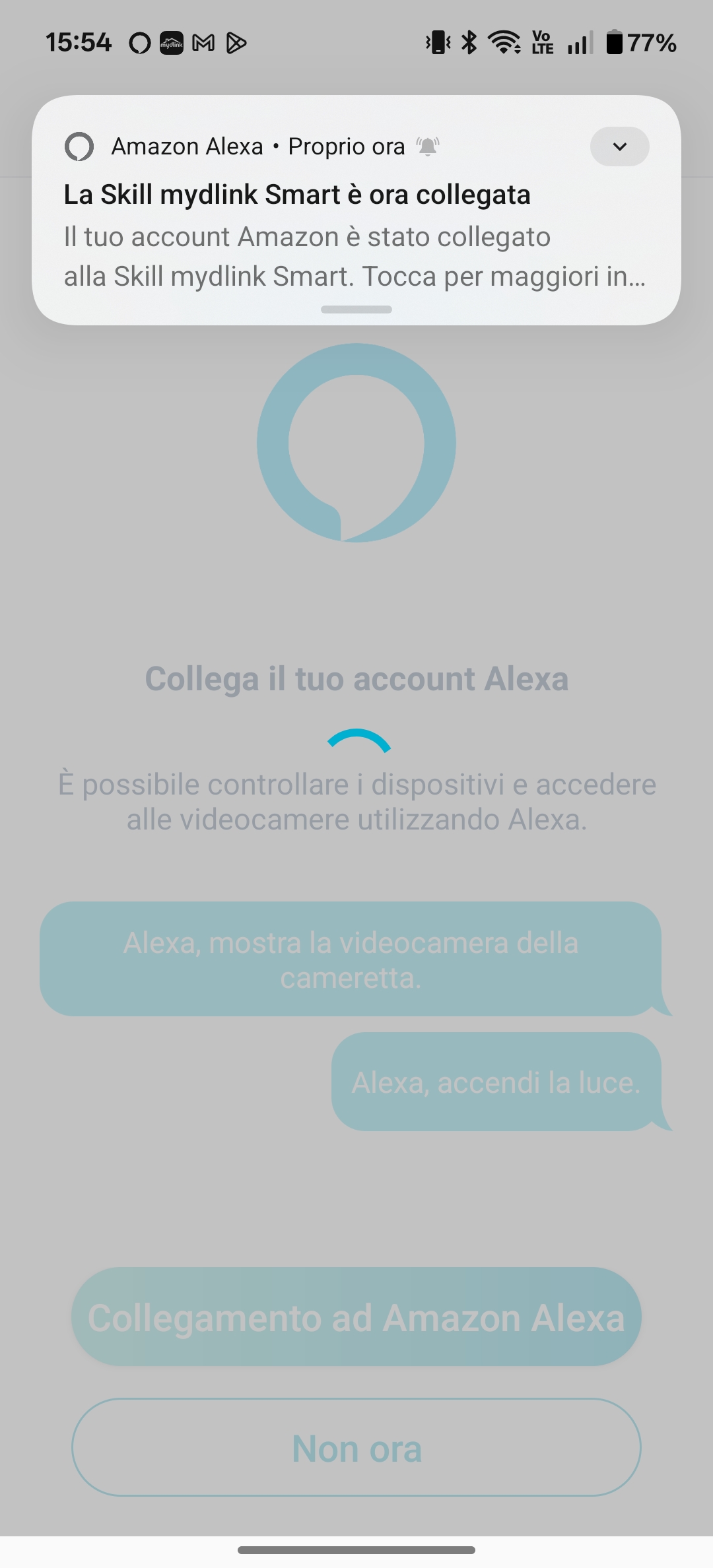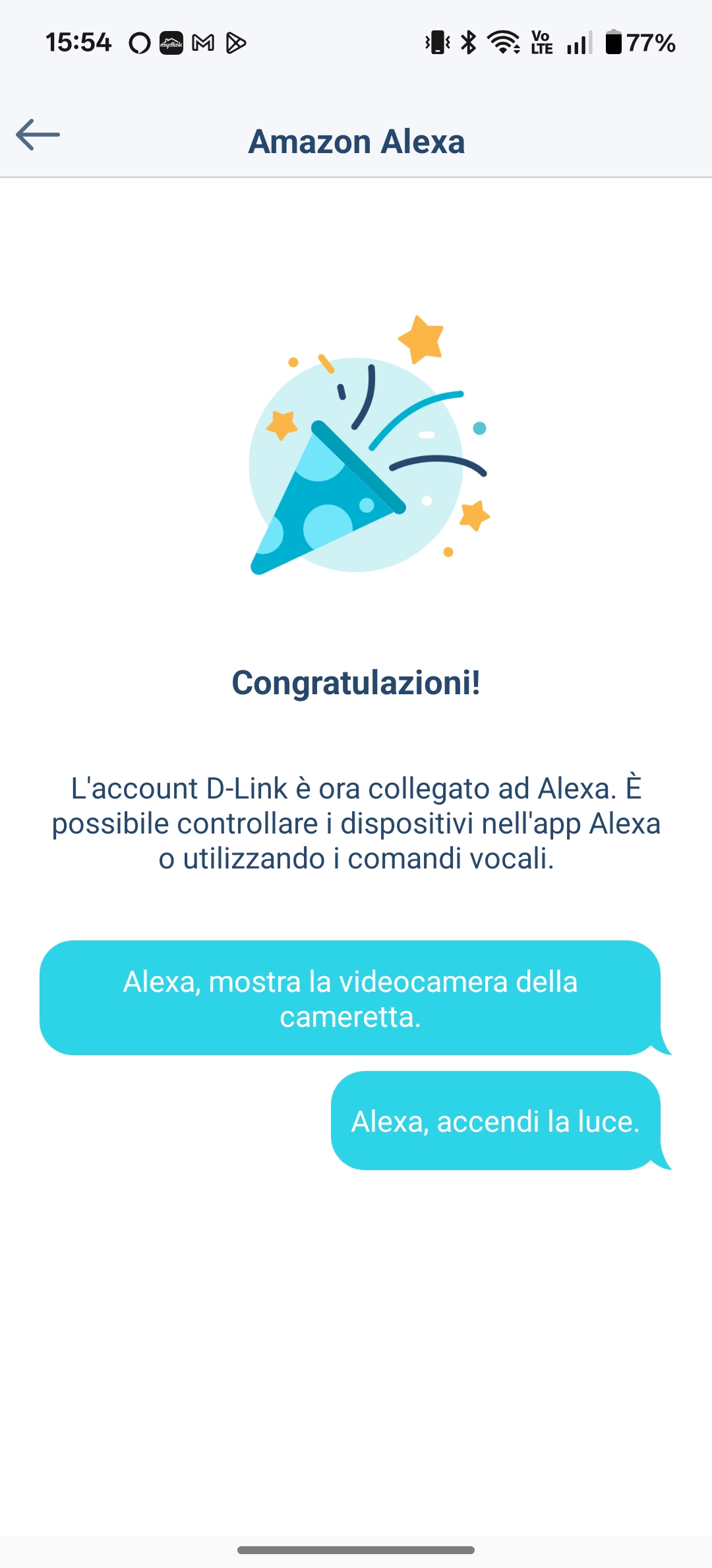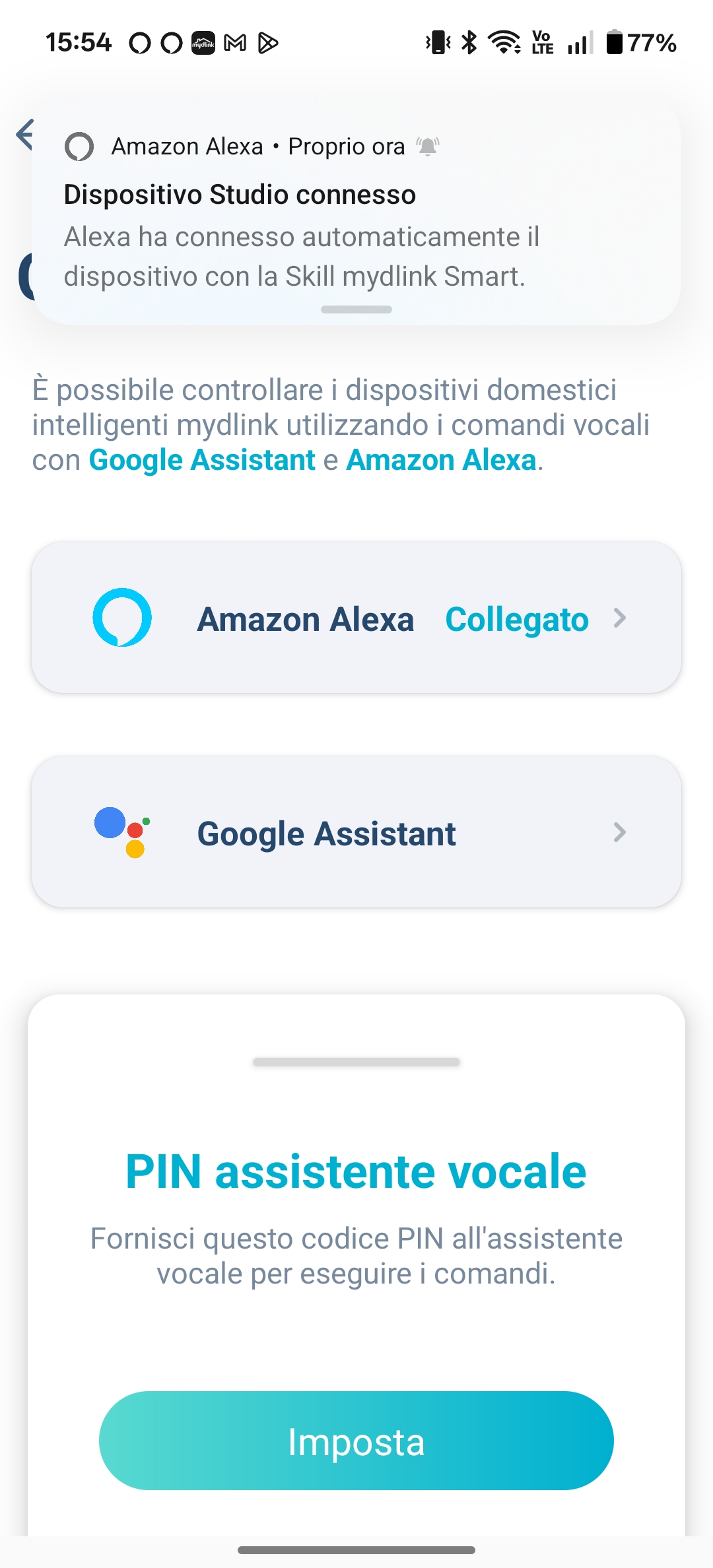 La gestione avviene interamente tramite l’app mydlink, disponibile per iOS e per Android, che rende la configurazione iniziale semplice e rapida. La telecamera si integra perfettamente con gli assistenti vocali Amazon Alexa e Google Assistant, permettendo di visualizzare in diretta in casi di display, come con l’Amazon Echo 8.