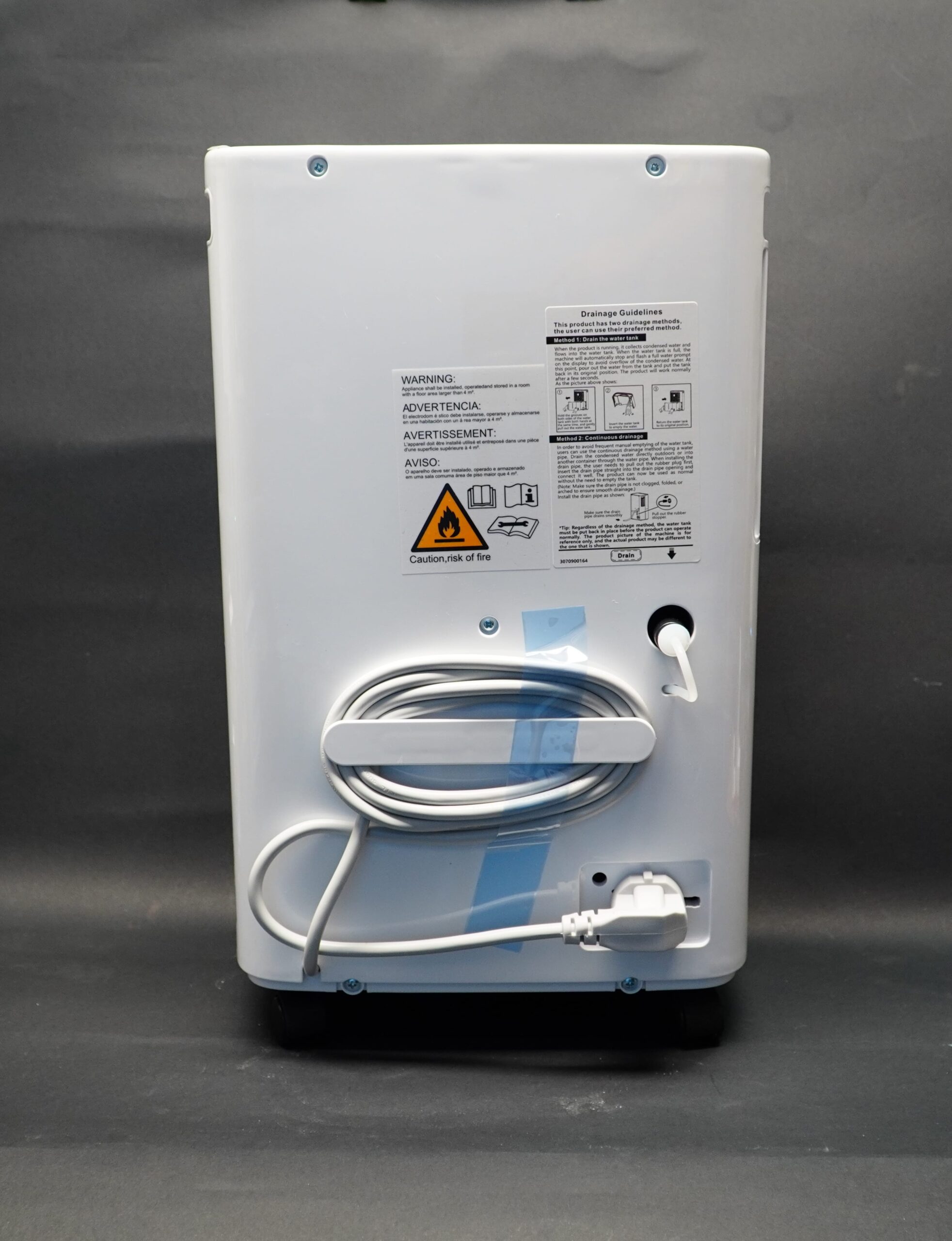 Include il deumidificatore principale, serbatoio dell’acqua rimovibile da circa 2L, tubo di drenaggio continuo, manuale utente multilingua.