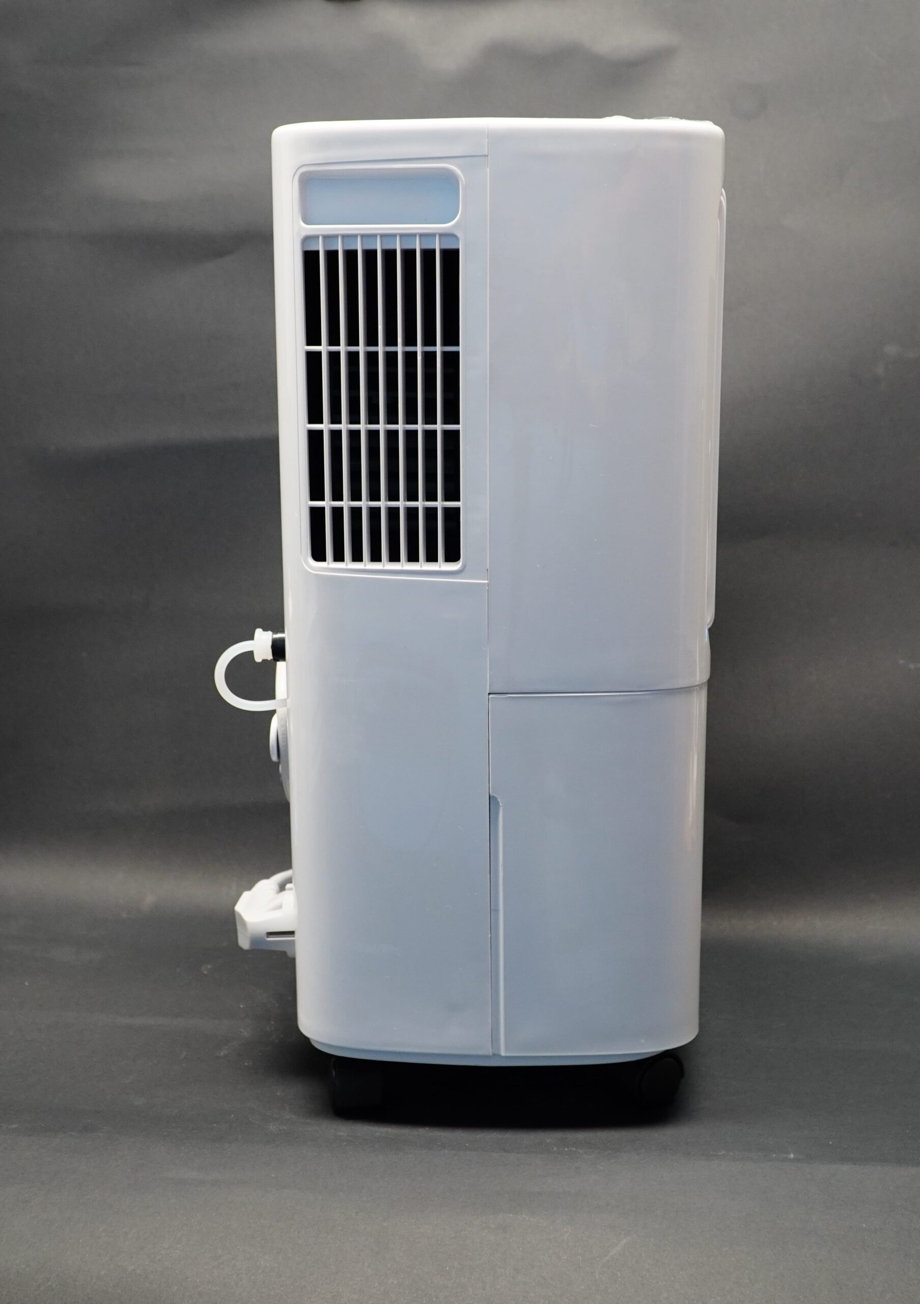 Realizzato in plastica ABS resistente con finitura opaca bianca, il corpo compatto misura circa 25x20x40 cm e pesa intorno ai 8-10 kg, con serbatoio trasparente per monitorare il livello dell’acqua e griglia frontale removibile per la pulizia.