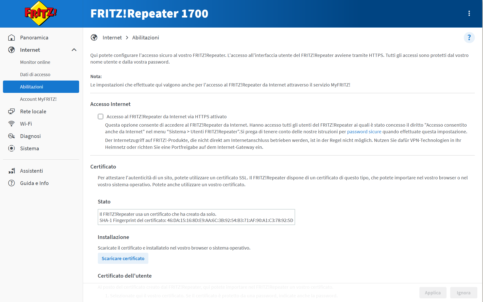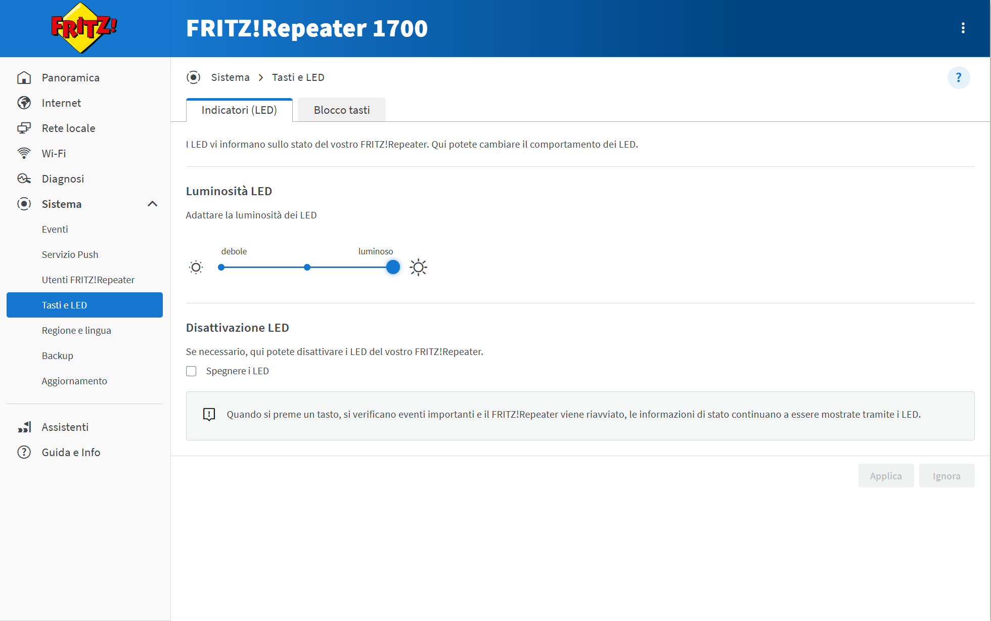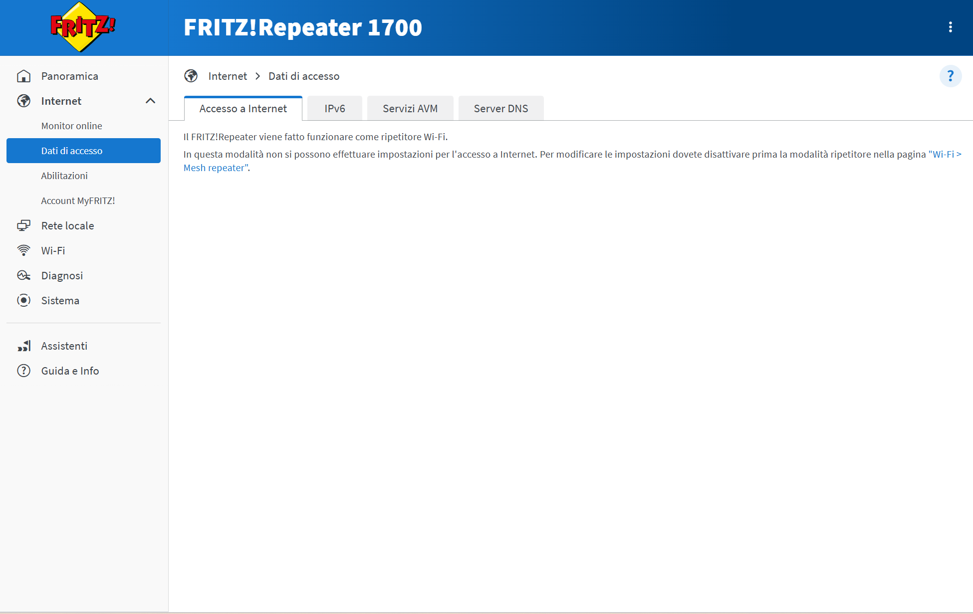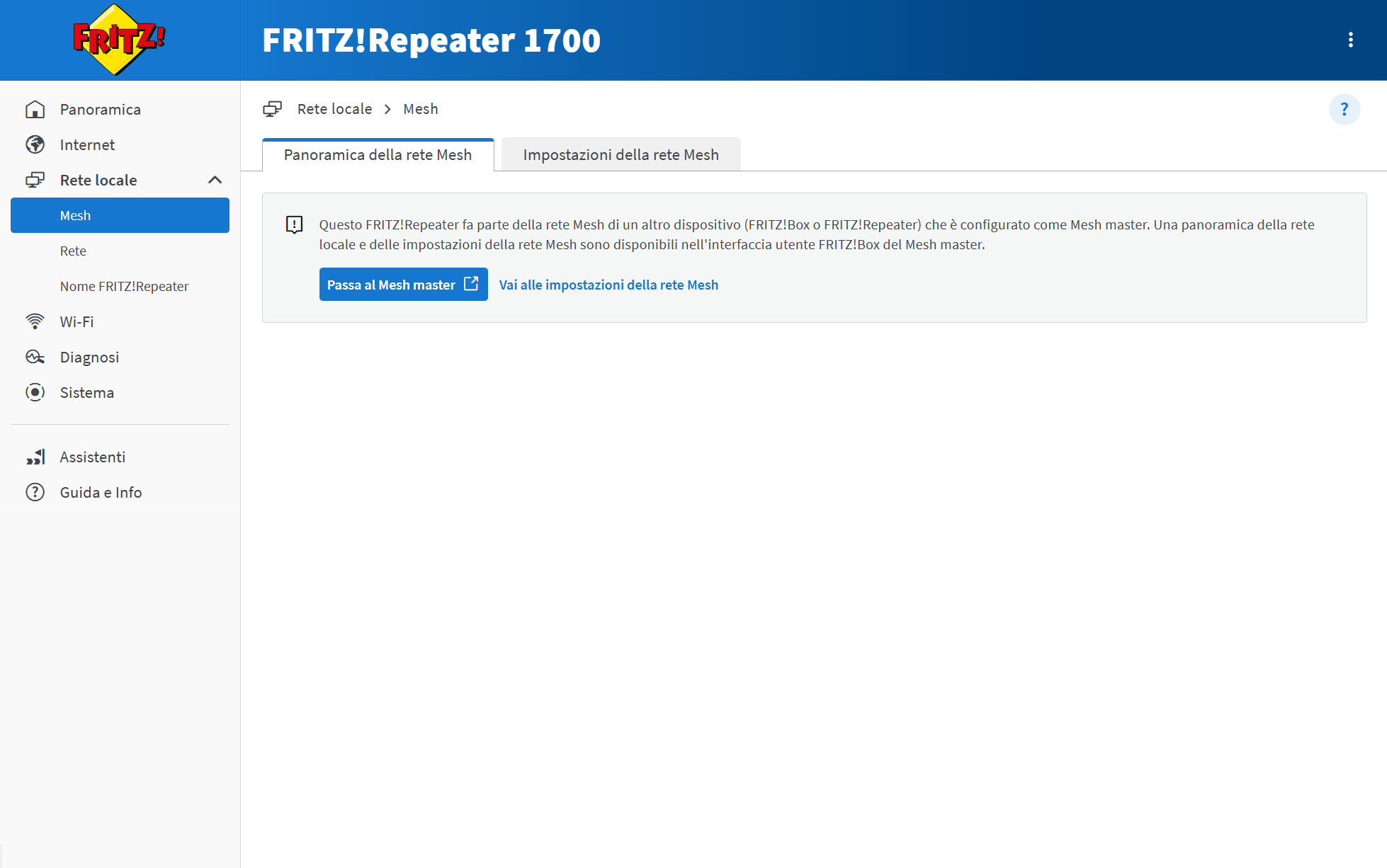 Ovviamente è possibile configurare il FRITZ!Repeater 1700 manualmente, collegandosi alla sua interfaccia tramite l’IP assegnato dal vostro router; in caso di router Fritz!Box, sarà sufficiente digitare l’indirizzo htttp://fritz.repeater.