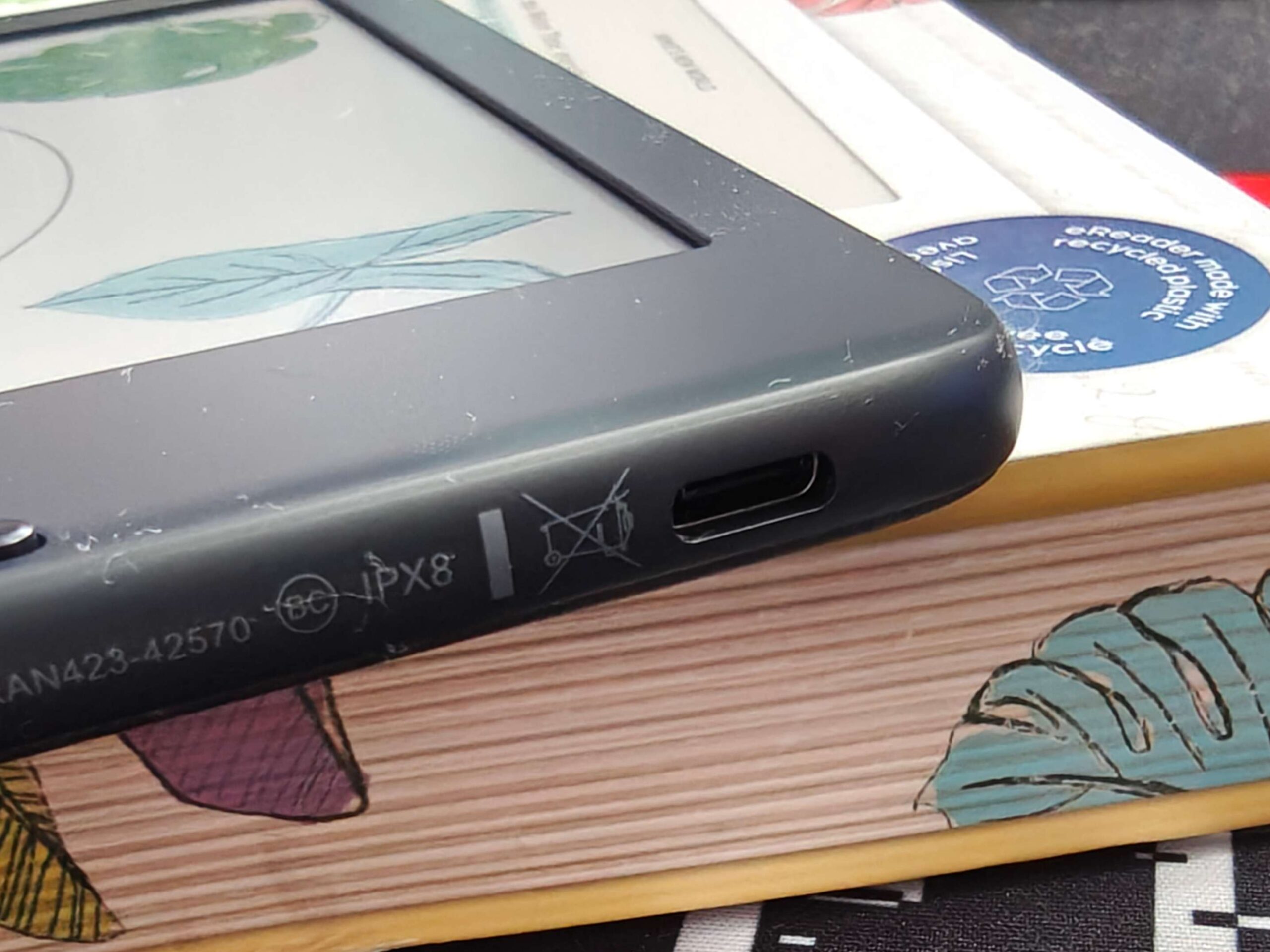 L’e-reader è dotato di certificazione IPX8, il che lo rende impermeabile, fino a 60 minuti in 2 metri d’acqua, rendendolo un compagno ideale per la lettura in piscina, al mare o nella vasca da bagno.