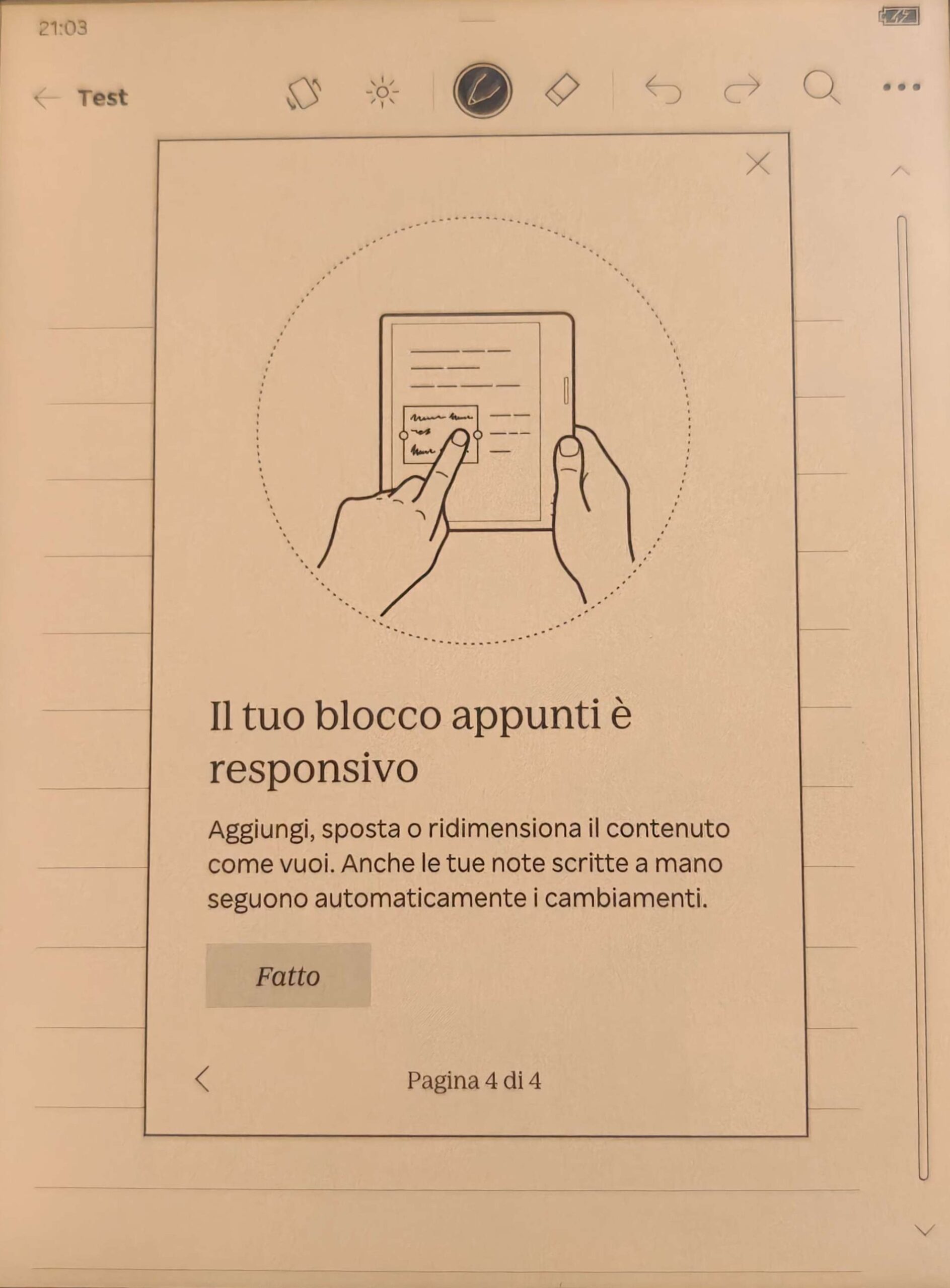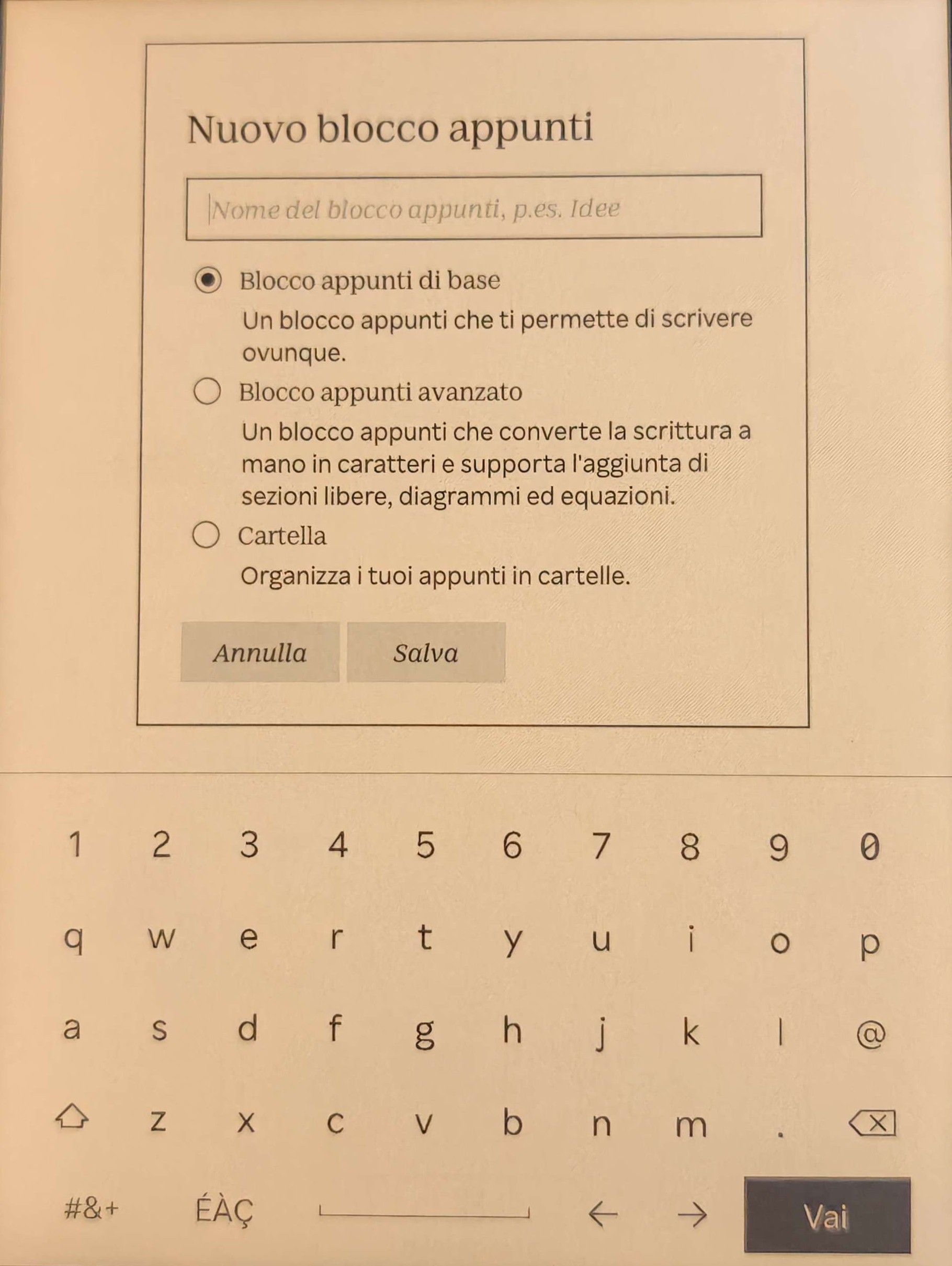 - Funzione Quaderno: Il dispositivo include un’apposita funzione Quaderno che permette di prendere appunti a mano libera in diversi stili di pennello e tonalità. I quaderni possono essere organizzati in cartelle e, grazie alla connettività cloud, è possibile sincronizzare e accedere alle note su Google Drive e Dropbox per consultarle e modificarle anche da altri dispositivi.