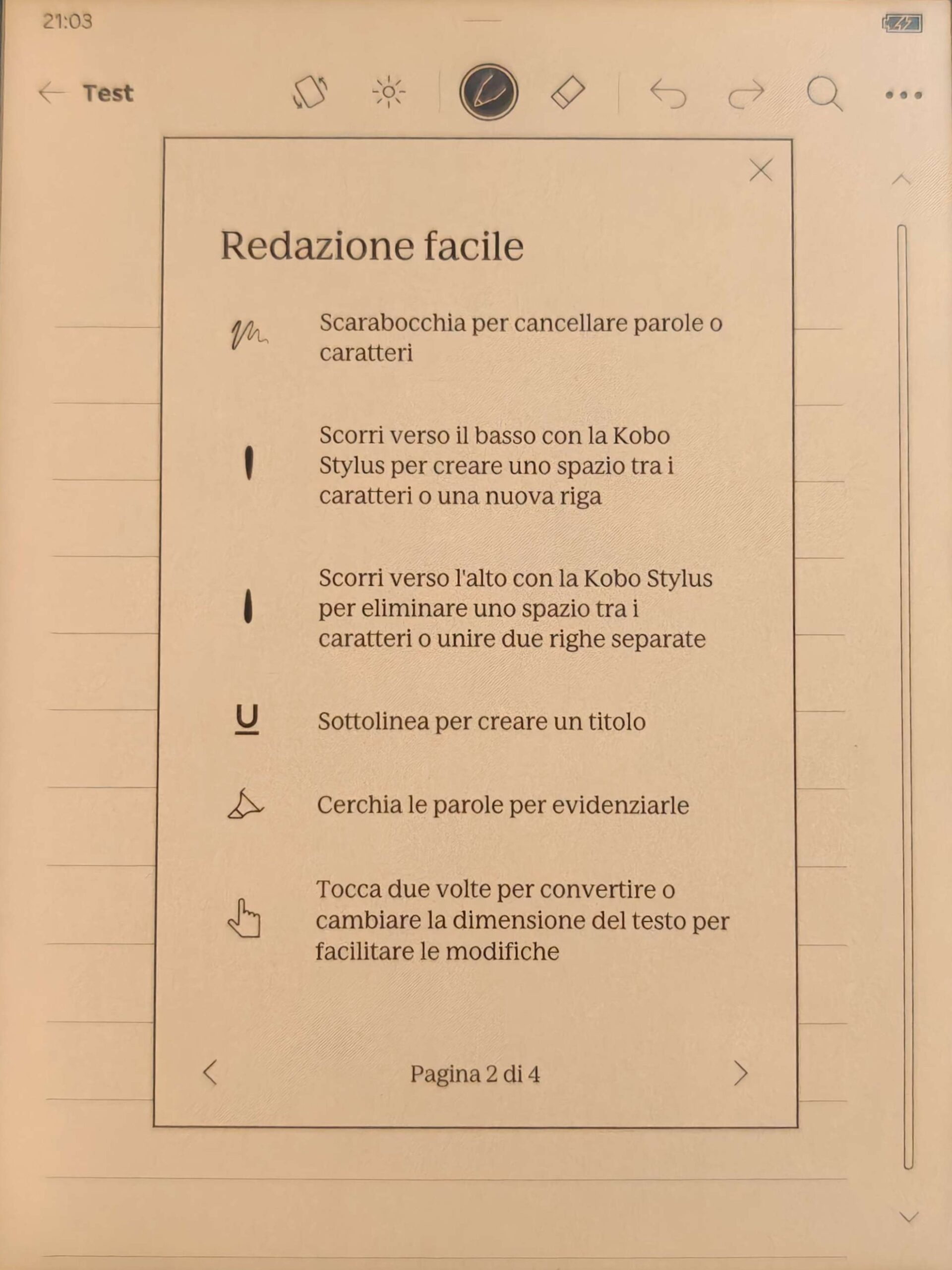 La vera rivoluzione del Kobo Libra Colour è la sua capacità di trasformarsi in un vero e proprio taccuino digitale, a patto di utilizzare la Kobo Stylus 2 (venduta separatamente).