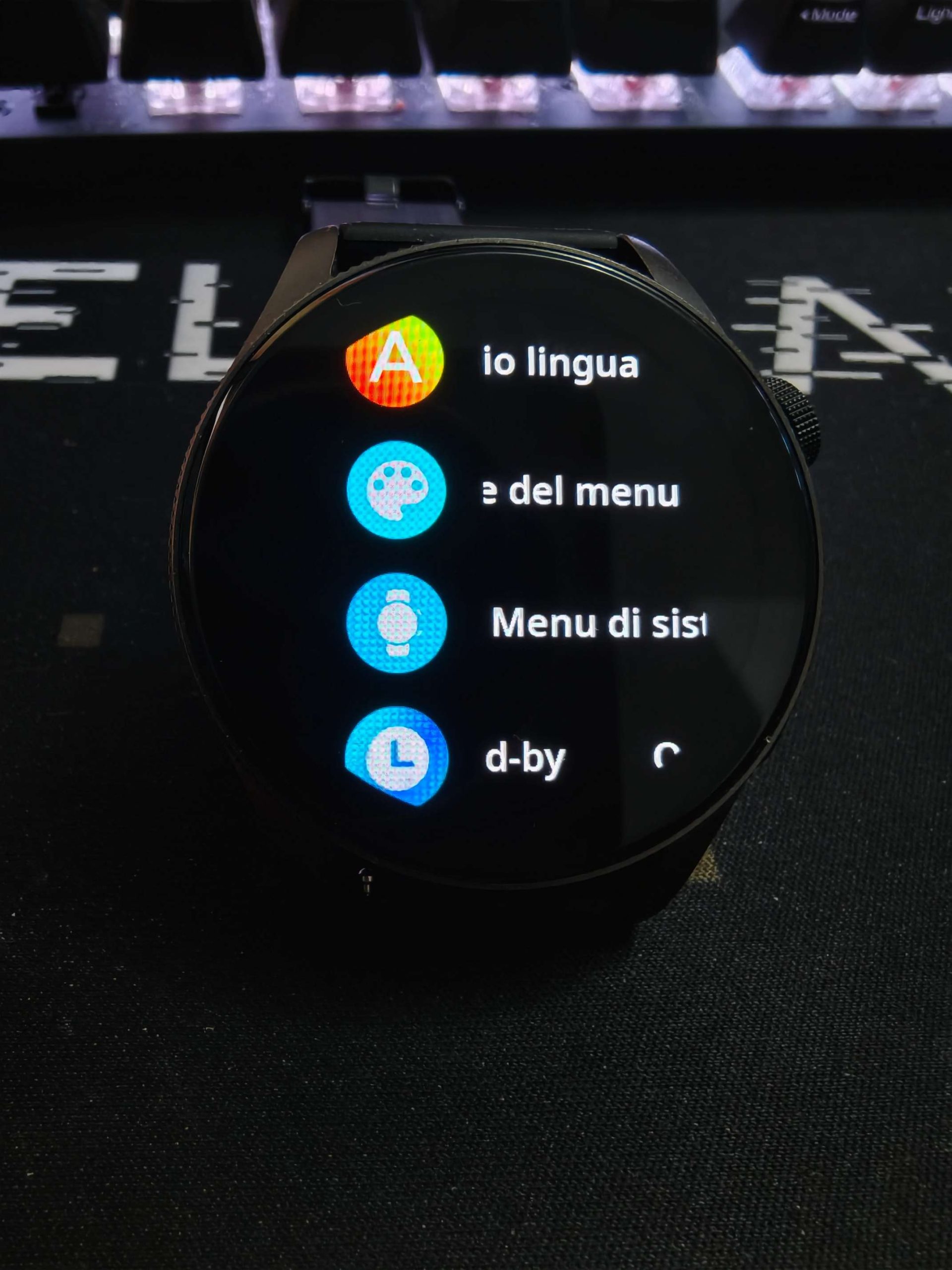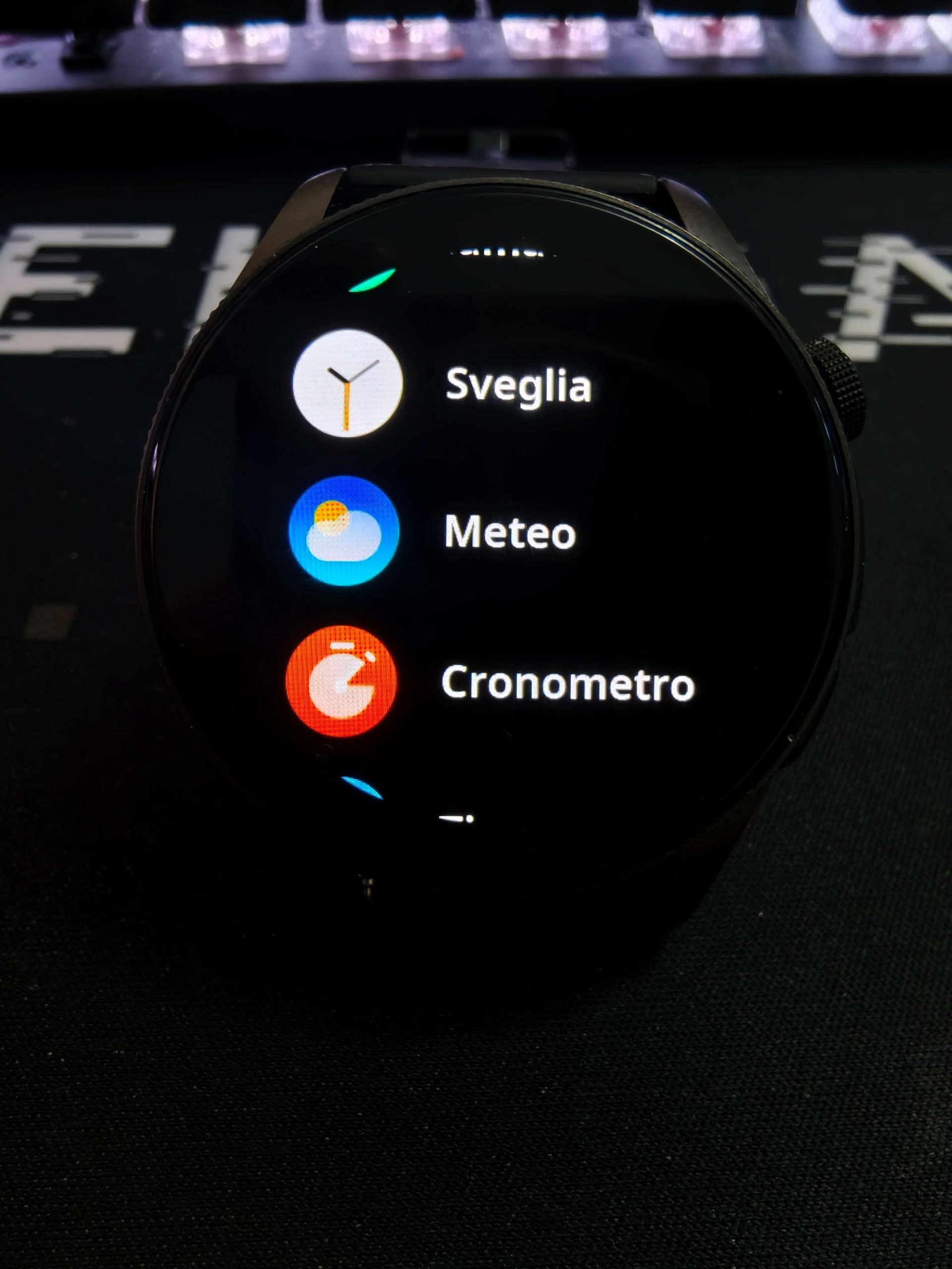 Per entrare nel menu completo di tutte le applicazioni, basta premere il pulsante superiore dotato di ghiera, che serve anche per tornare rapidamente alla schermata principale del quadrante.