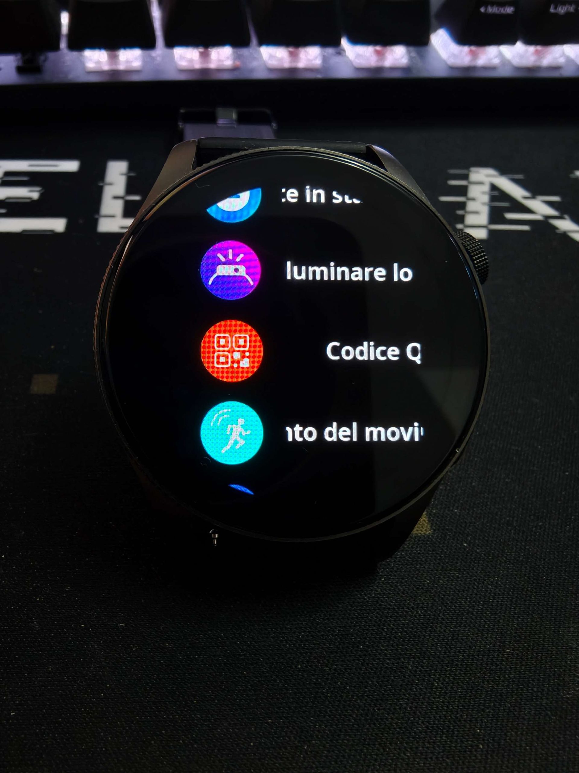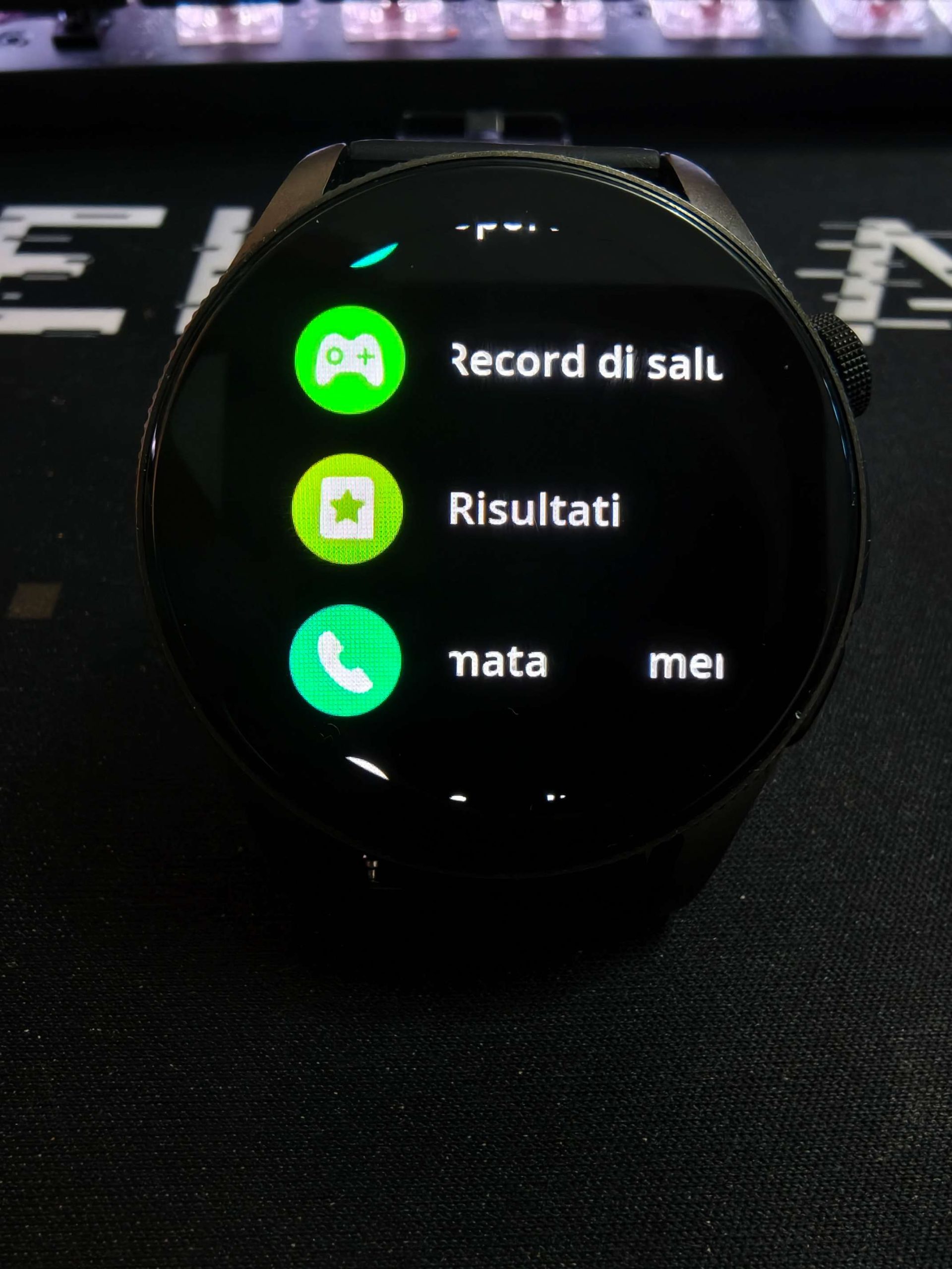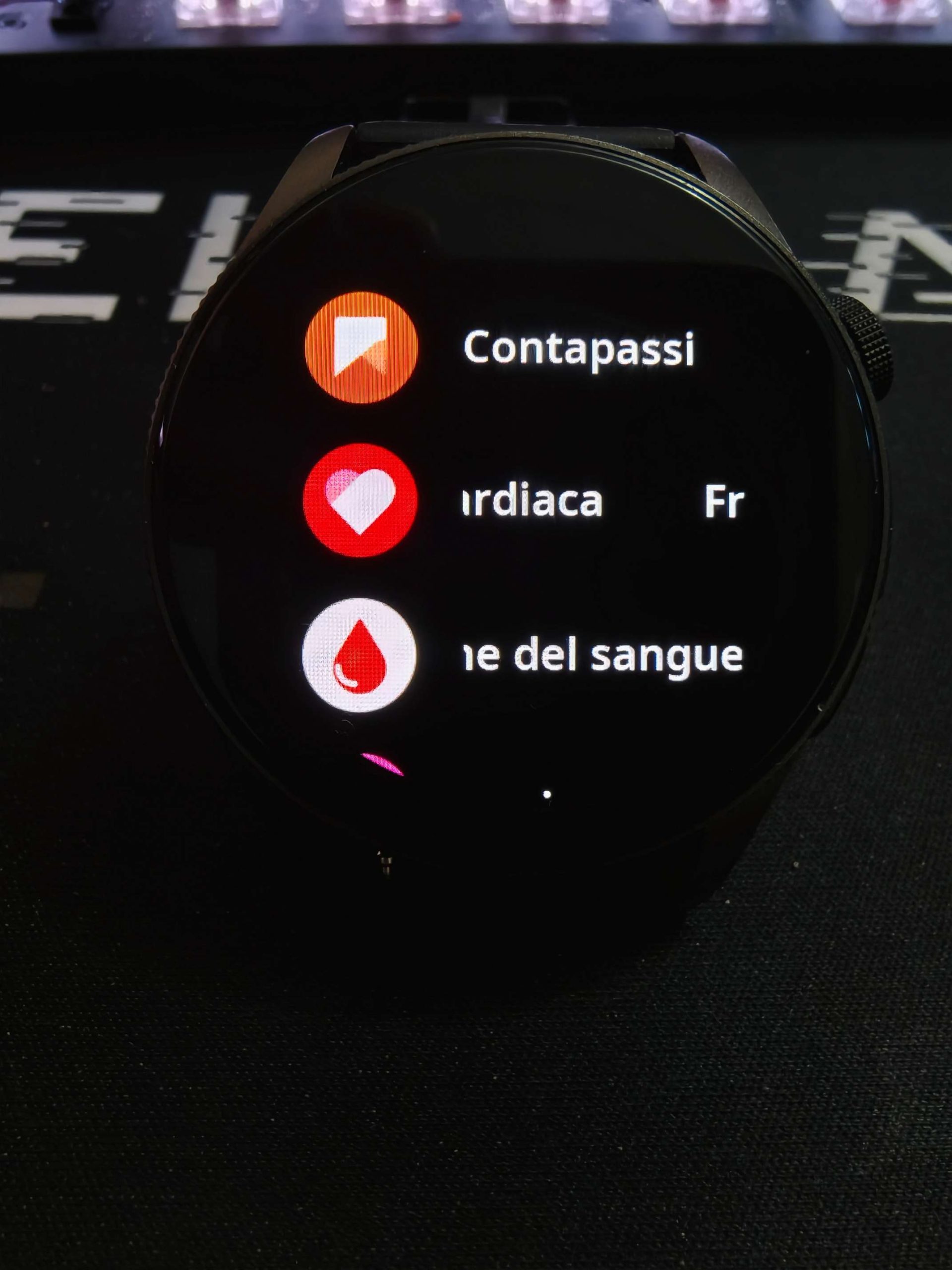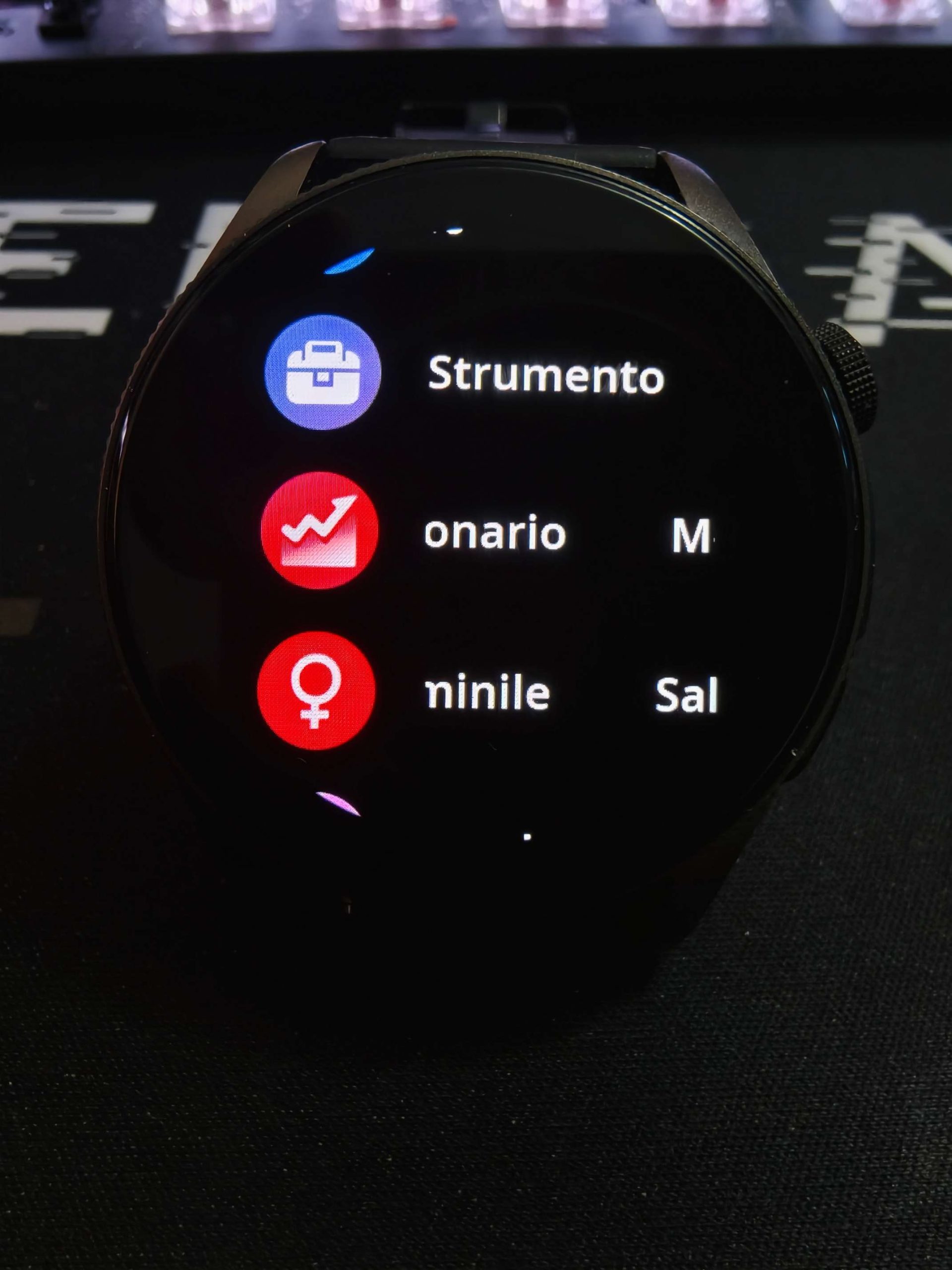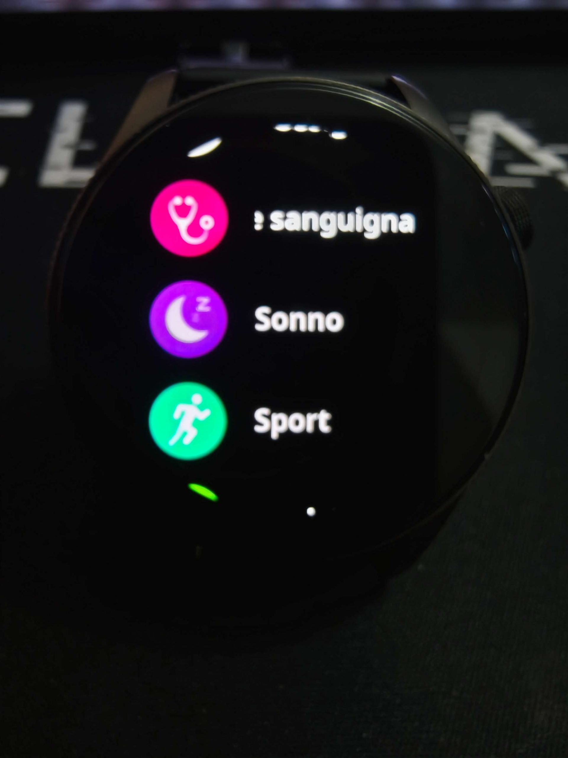 Tramite una pressione del pulsante inferiore, possiamo accedere alle varie modalità sportive. Durante l’uso delle applicazioni, lo stesso tasto può essere usato anche per tornare indietro di un passaggio, rendendo l’interazione più veloce rispetto al solo utilizzo del touch.