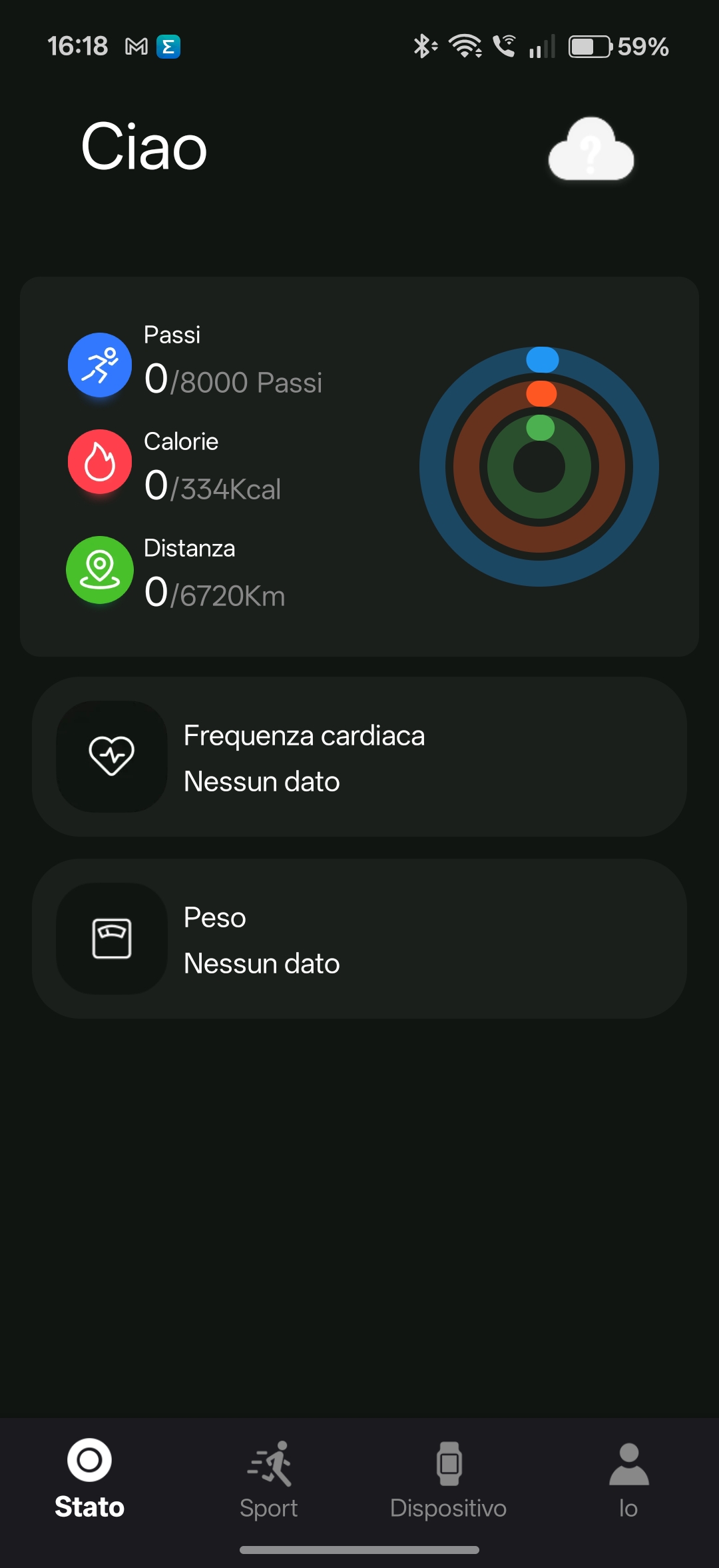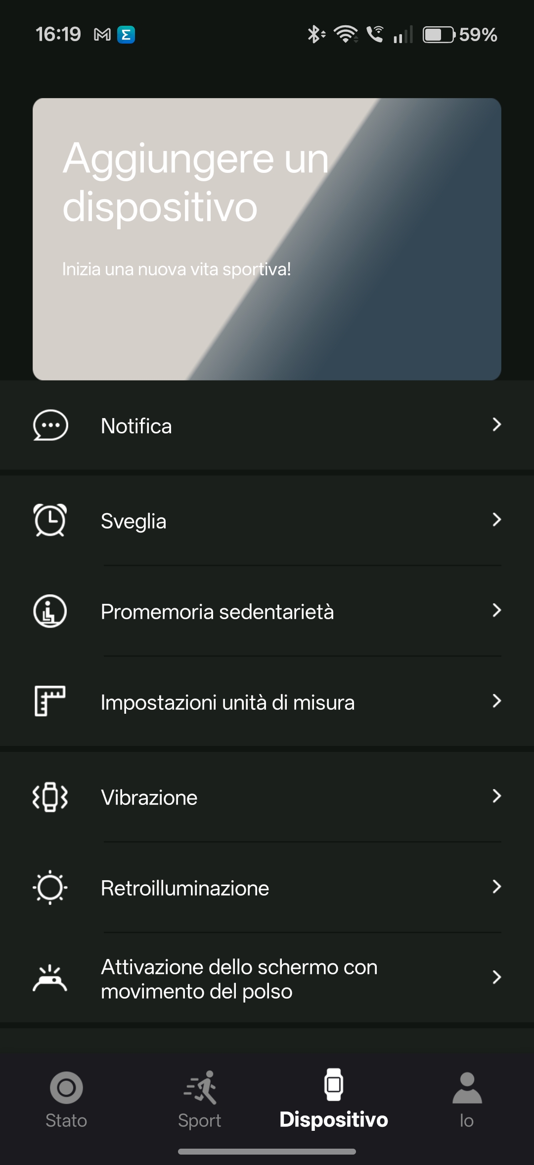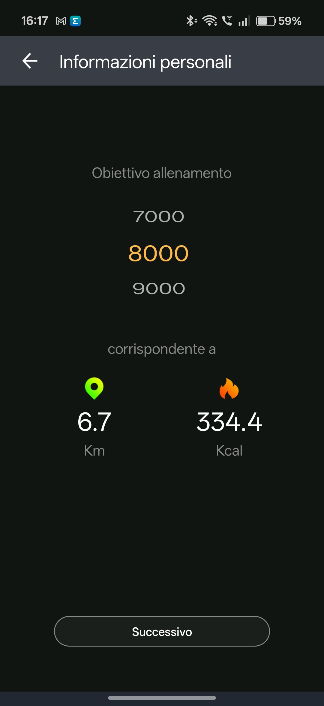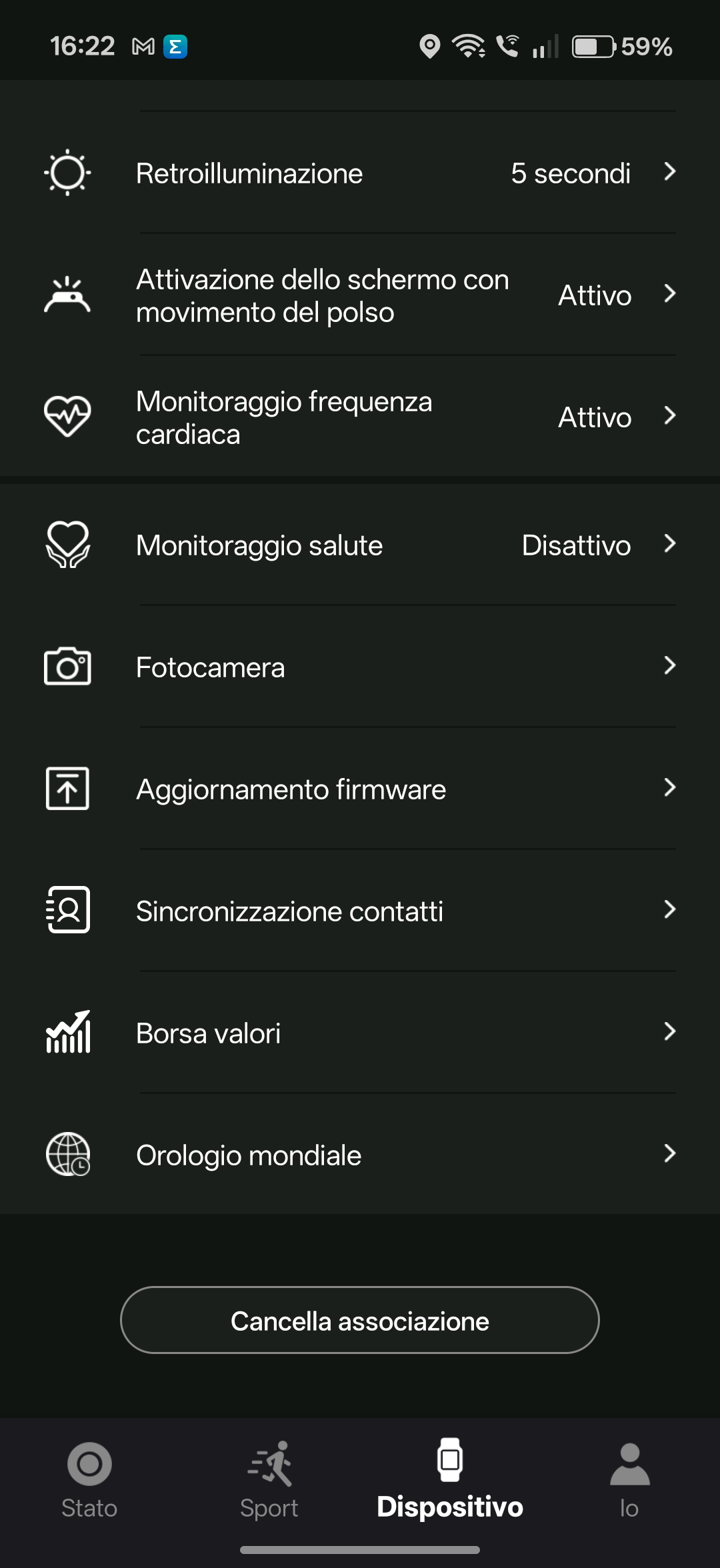 Tramite una pressione del pulsante inferiore, possiamo accedere alle varie modalità sportive. Durante l’uso delle applicazioni, lo stesso tasto può essere usato anche per tornare indietro di un passaggio, rendendo l’interazione più veloce rispetto al solo utilizzo del touch.