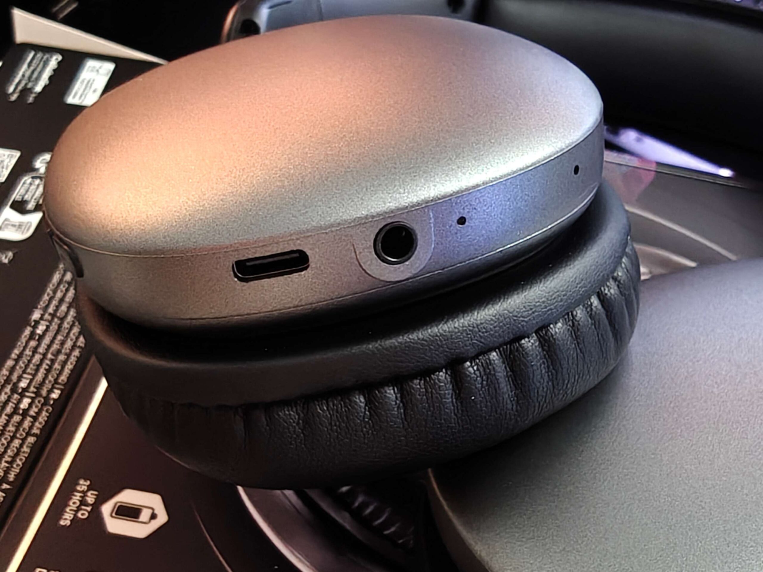 Come detto, in caso di batteria scarica, potrà venirci in soccorso il cavetto AUX in dotazione da collegare al padiglione destro.