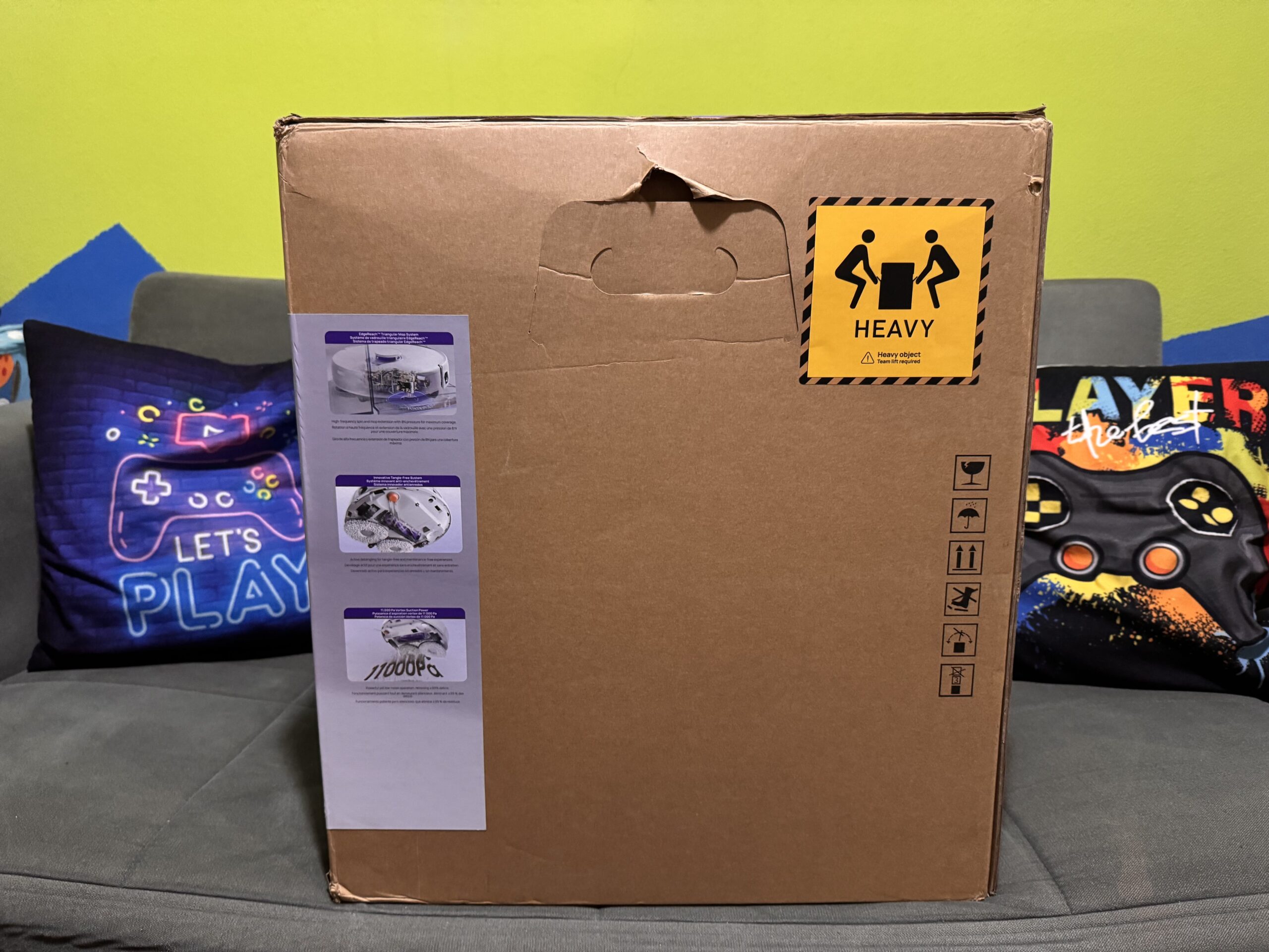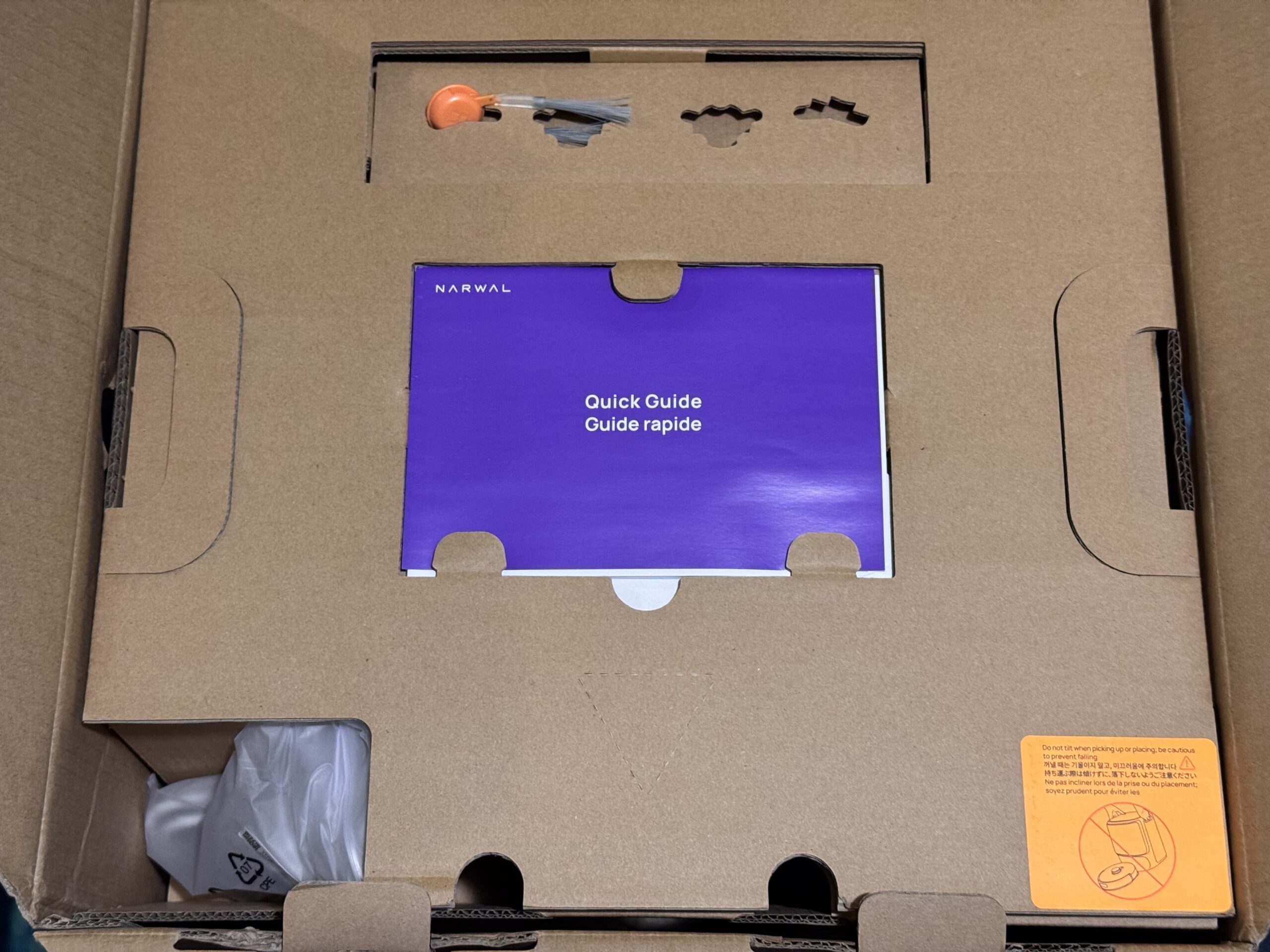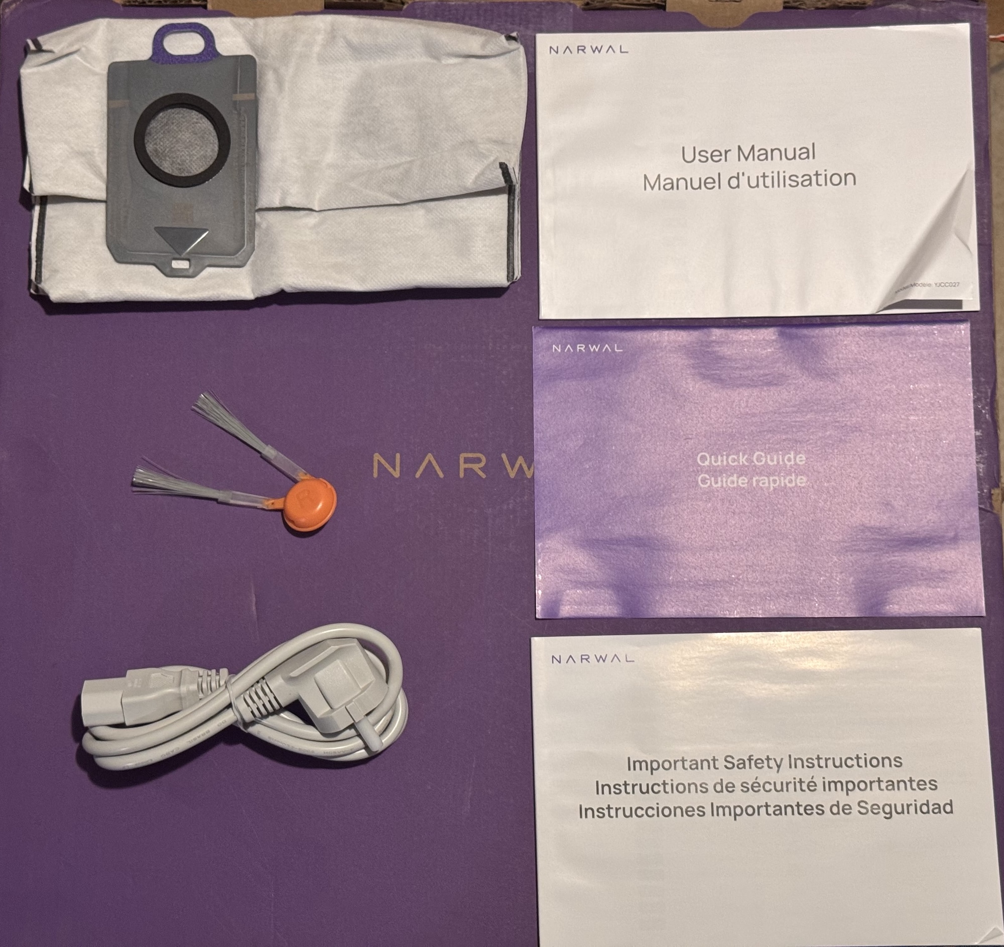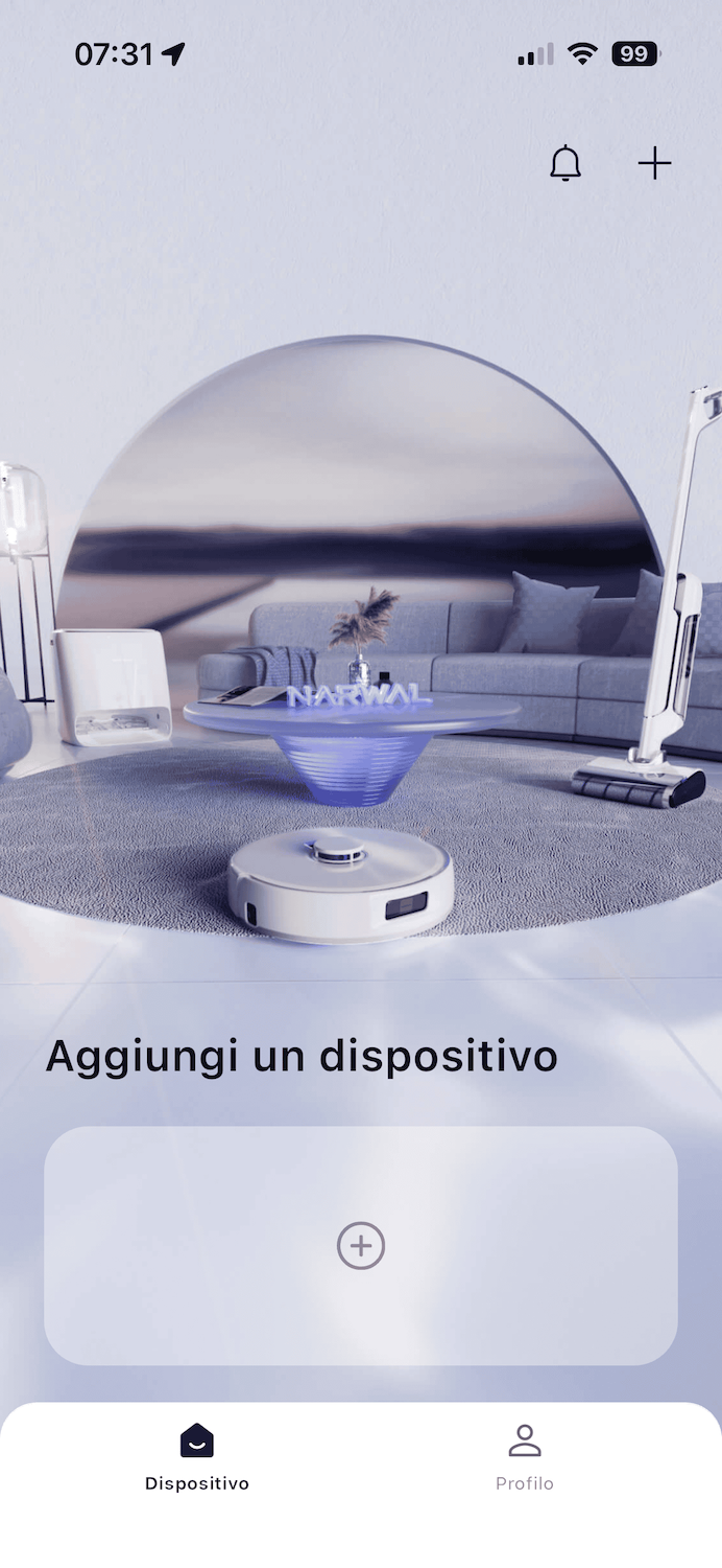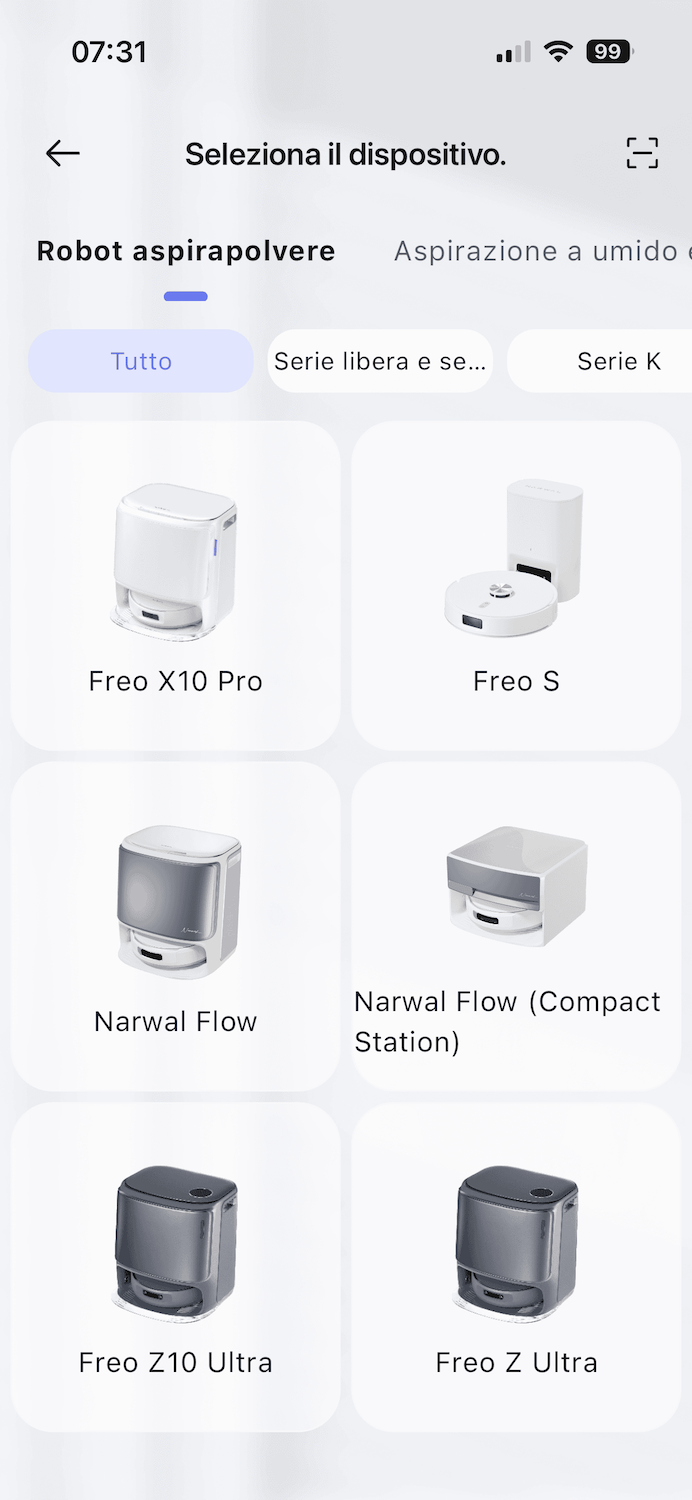 Al primo avvio, è sufficiente scansionare il QR code stampato sul cartoncino interno per accedere al download dell’app Narwal Freo, disponibile per Android e iOS. L’app guida l’utente nelle operazioni preliminari: installazione delle spazzoline laterali, posizionamento corretto della base di ricarica, attivazione del robot e collegamento alla rete Wi-Fi.