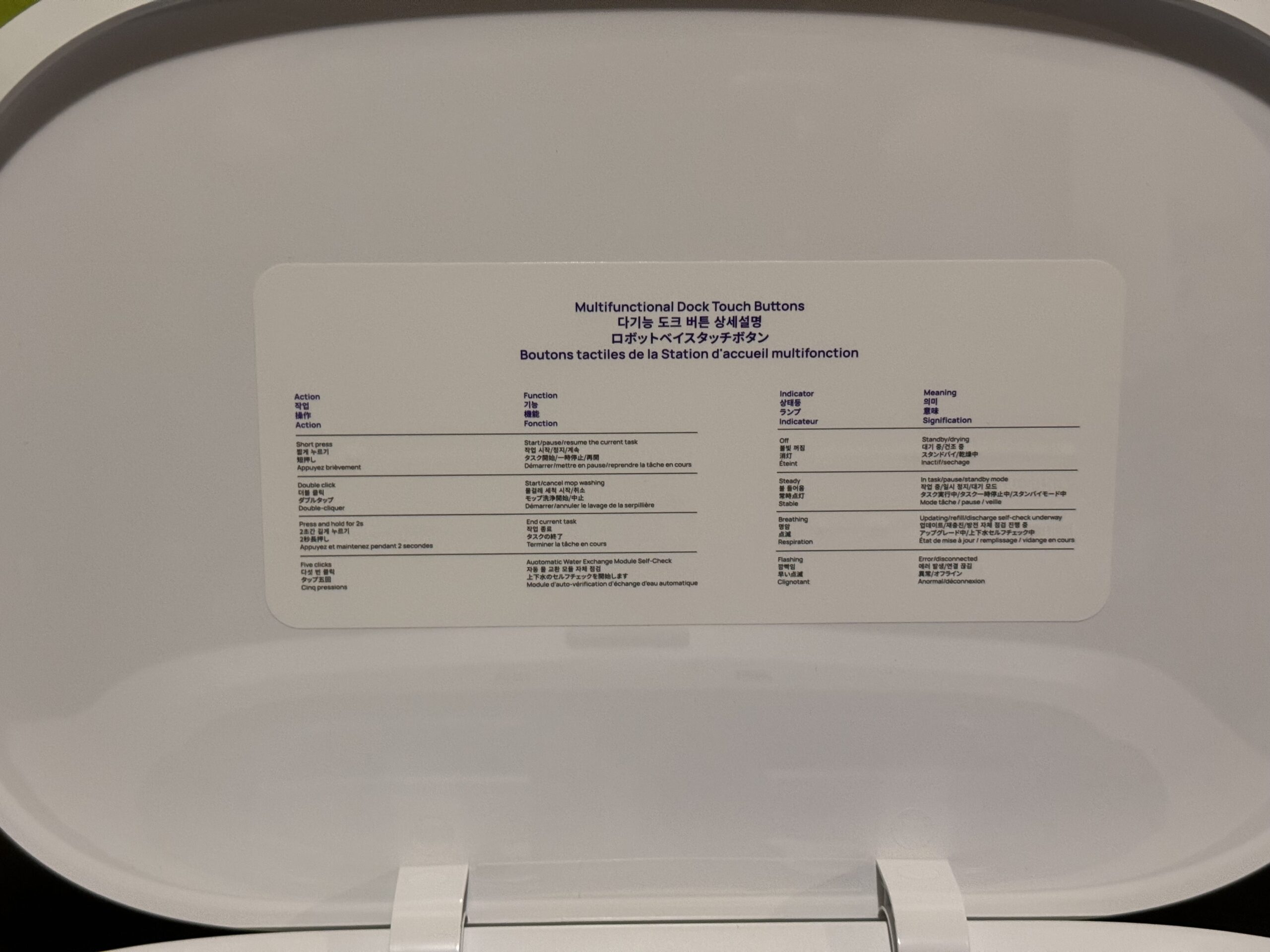 La stazione base intelligente gestisce automaticamente la manutenzione interna. Sfruttando l’intelligenza artificiale, rileva il livello di sporco dei panni e attiva cicli di lavaggio con acqua riscaldata tra 45°C e 75°C, eliminando fino al 99,99% dei batteri. Concludendo il ciclo, i moci, i tubi e i sacchetti vengono asciugati con aria calda a 45°C, prevenendo odori e umidità residua. Grazie al sacchetto da 2,5 litri, l’autonomia di raccolta può raggiungere i 120 giorni senza necessità di svuotamento.