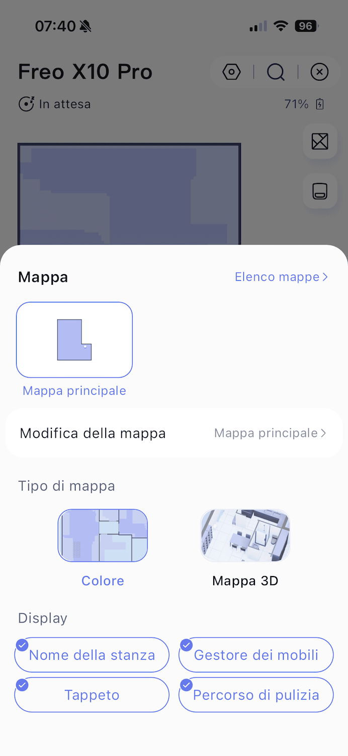 Se la vostra abitazione è disposta su più piani, è possibile creare una mappa personalizzata per i vari piani e sceglierla nel momento in cui si sposta il robot sul nuovo pianto.