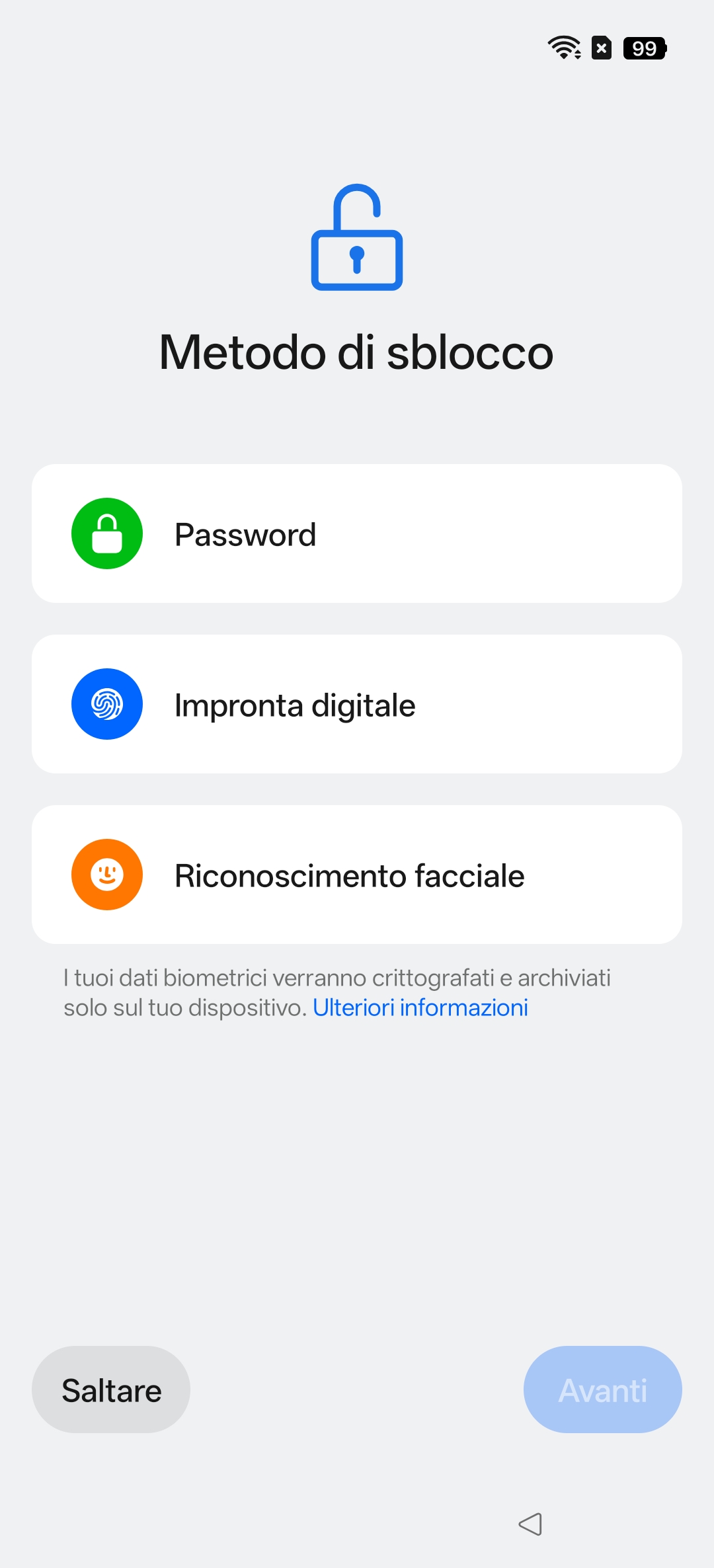 Il sensore di impronte digitali ottico, seppur posizionato un po’ in basso, è rapido e affidabile. Molto preciso e rapido anche lo sblocco tramite riconoscimento del volto.