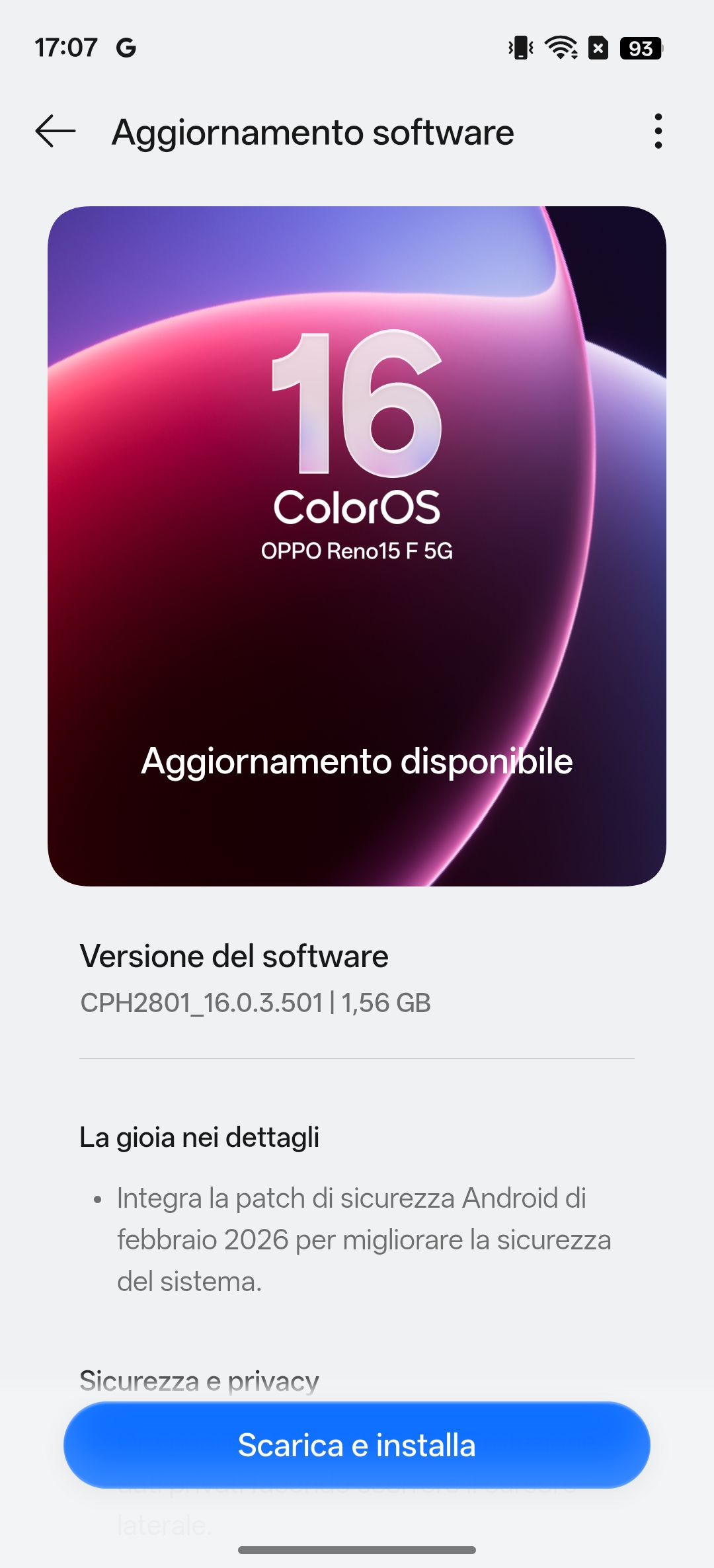 La versione attuale di Android è la 16 con la ColorOS 16 come interfaccia e, il sistema gira fluido, e il processore offre buone prestazioni. Le app si aprono velocemente, il multitasking è fluido e i giochi girano senza particolari intoppi.