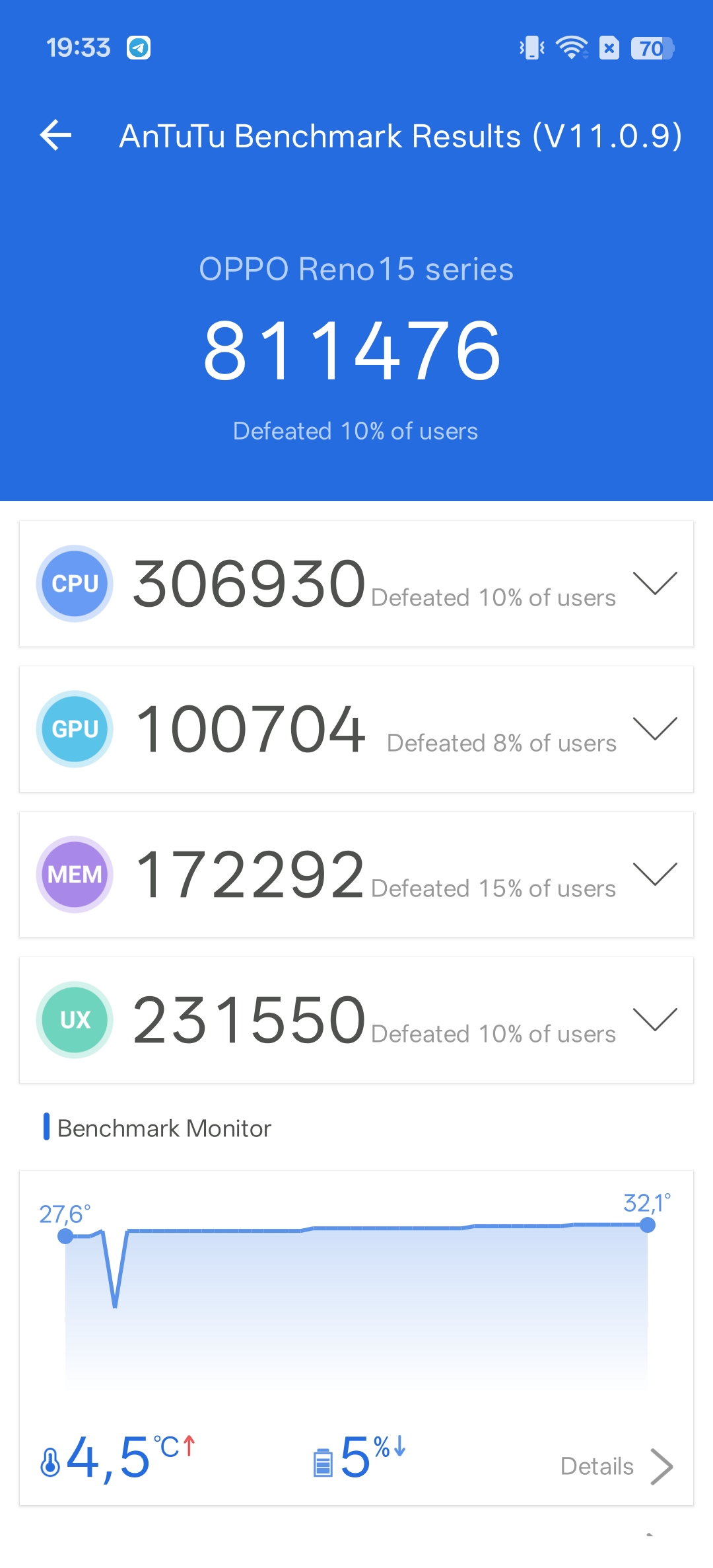 Durante sessioni di gioco intensive, anche a una temperatura ambientale di 35 °C (simulando condizioni estive), il Reno 15F riesce a mantenere una temperatura massima inferiore ai 43 °C, risultando pienamente gestibile anche dopo circa tre ore di gaming su alcuni dei titoli più popolari.