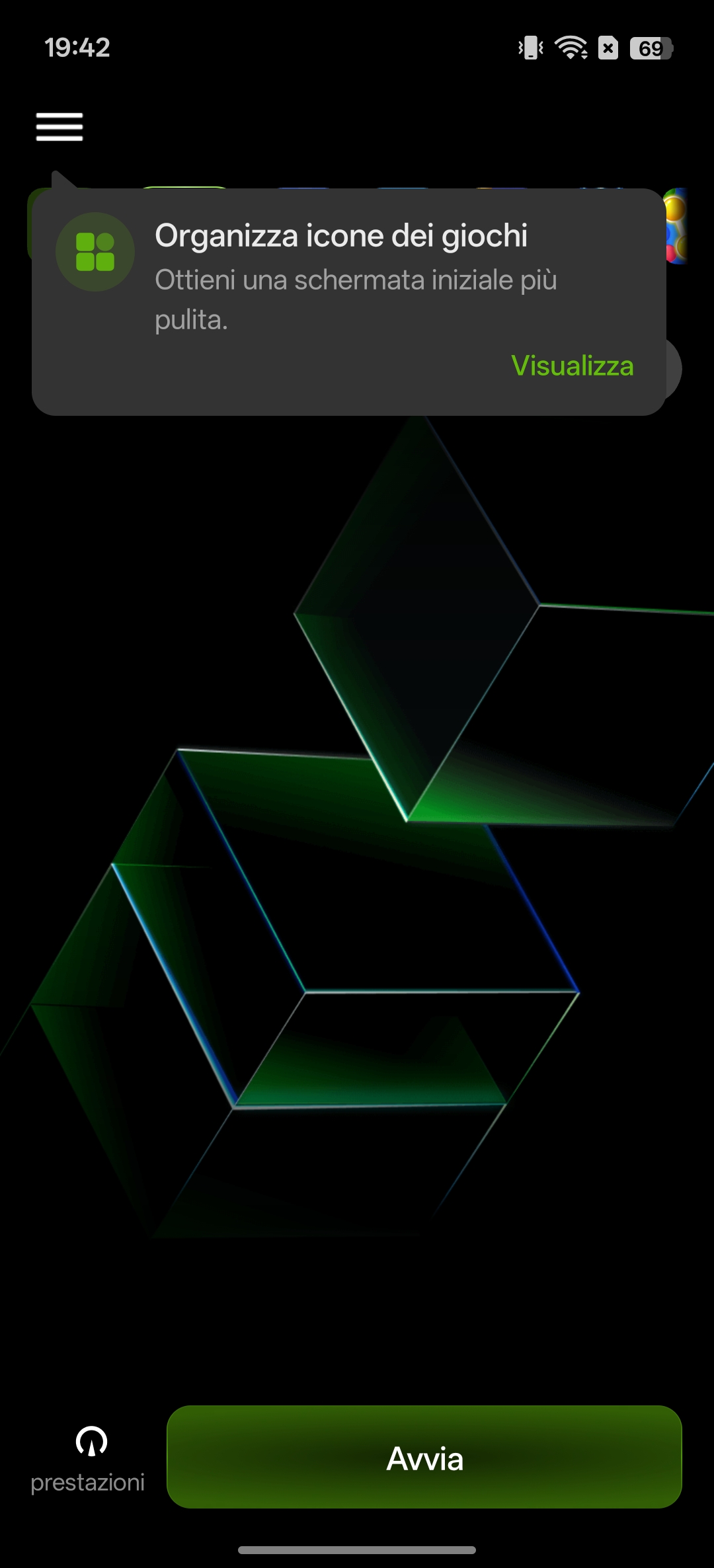 Giochi è un contenitore al cui interno posso essere inseriti i giochi, in modo da essere lanciati in modalità prestazioni, ovvero svuotando la RAM e applicando il profilo di utilizzo scelto (Competizione, Bilanciato e Basso Consumo). Sarà inoltre possibile silenziare le notifiche per non essere disturbati durante il gioco