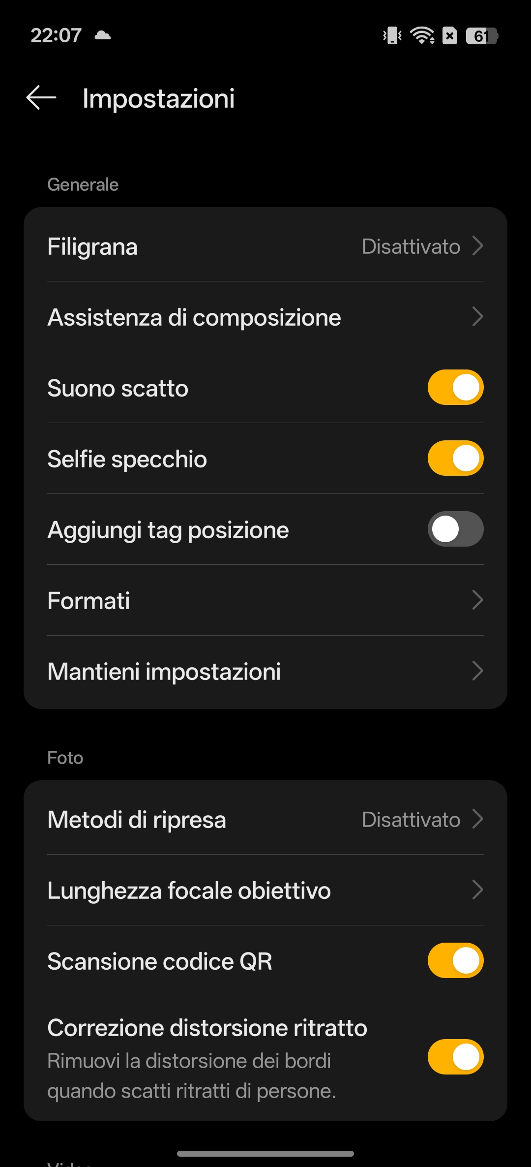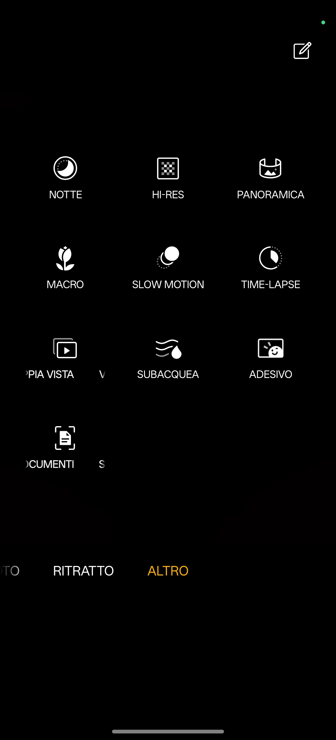 L’app di gestione offre diverse funzioni pre impostate, Pro, Ritratto, Notte, HI-RES, Panoramica, Macro, Slow motion, Time-lapse, Video a doppia Vista, Subacquea, Adesivo, Scanner documenti.
