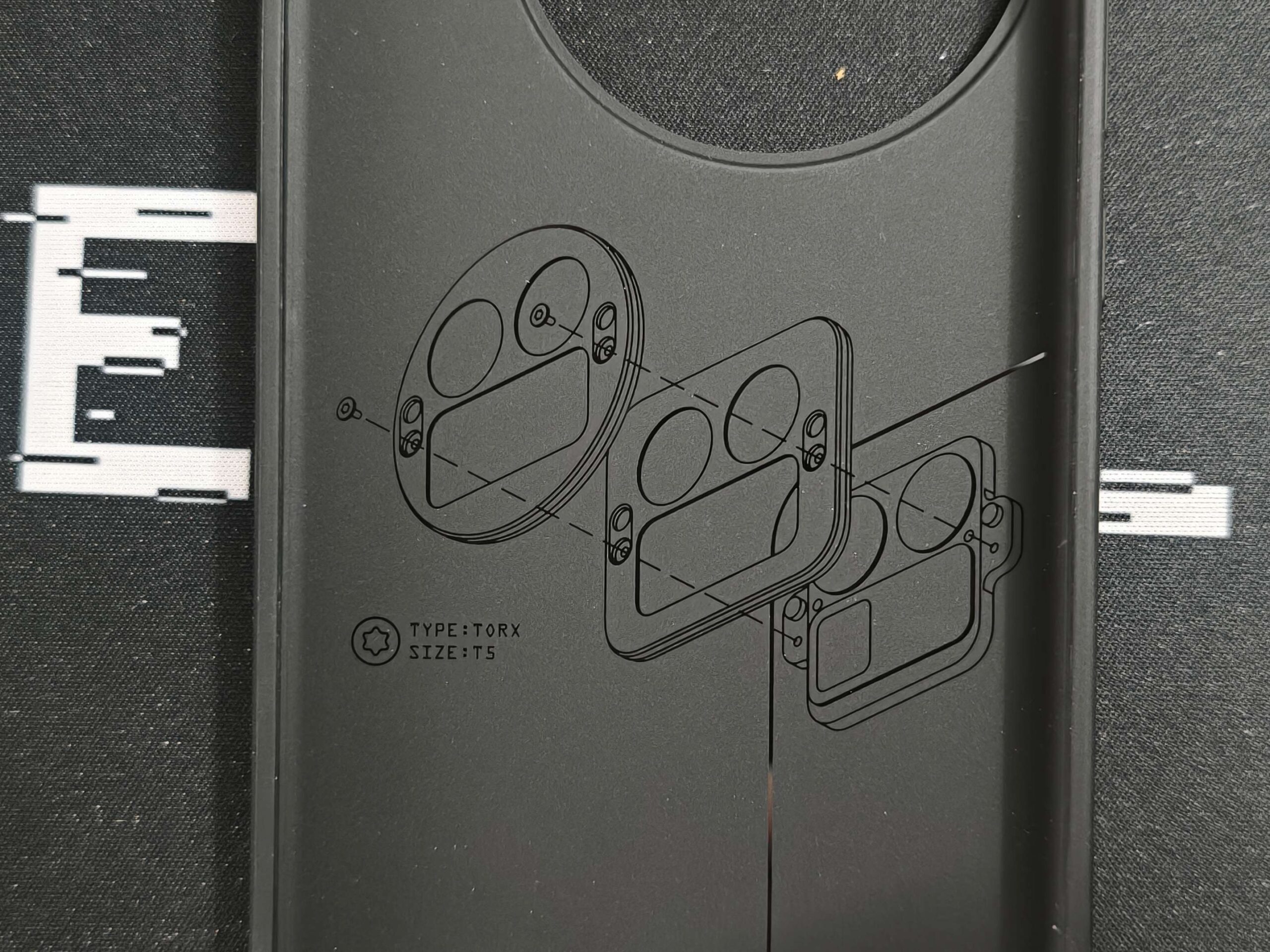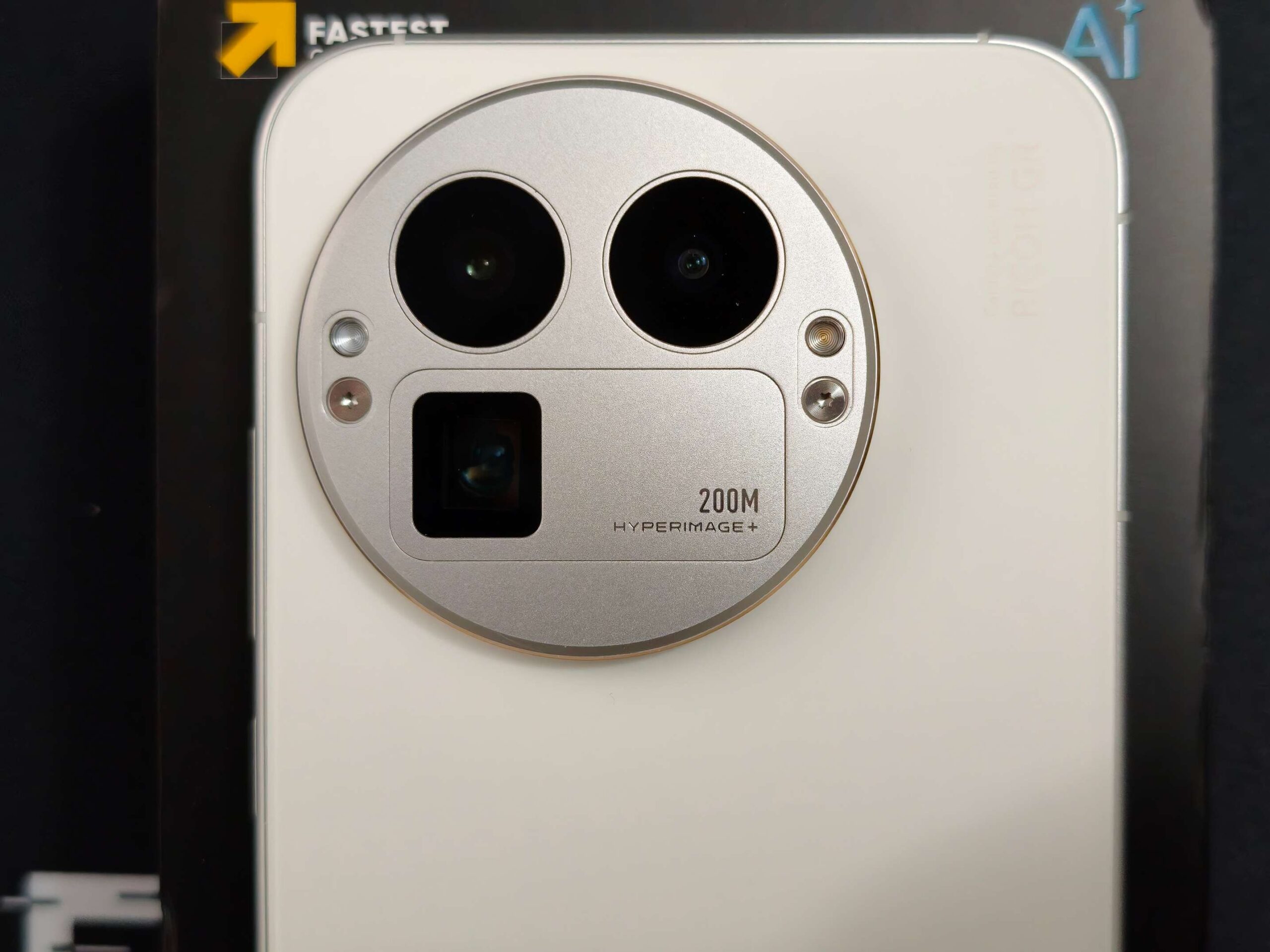 Posteriormente, sulla sinistra è presente il modulo fotografico di forma circolare che presenta un anello in metallo zigrinato che richiama le macchine fotografiche di Ricoh, composto da tre sensori da 50 MP, 200 MP e 50 MP con il Flash LED ai lati.