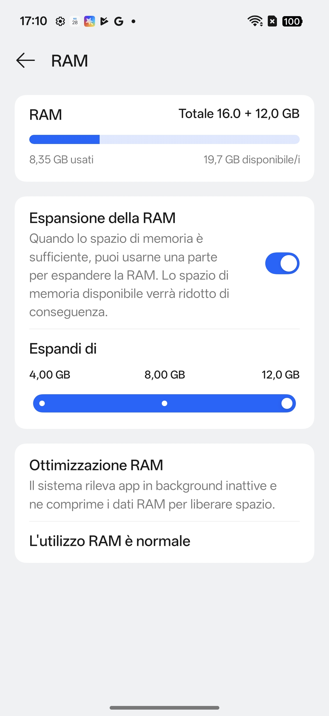 Presente come sempre la memoria virtuale che, se impostata, quando possibile, utilizzerà parte della memoria interna, fino ad un massimo di 12 GB per dedicarla al sistema.