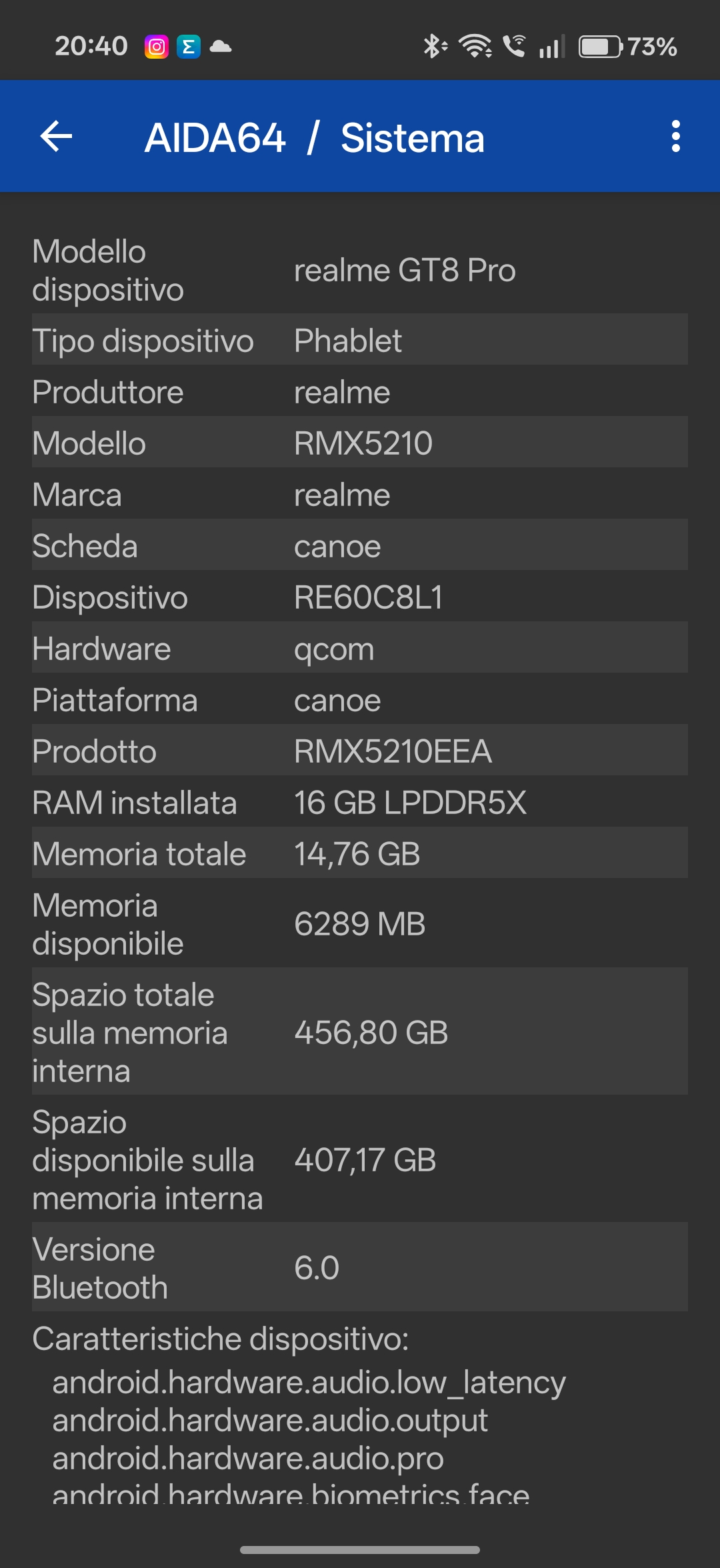 Il realme GT 8 Pro, ci è piaciuto davvero molto, con un ottima qualità d’insieme, un ottimo processore e 16 GB di RAM che permettono al sistema di girare sempre fluido e senza problemi di sorta con uno svolgimento davvero rapido di tutte le operazioni effettuate. Senta dimenticare lo standard UFS 4.1 per l’archivio interno da 512 GB.
