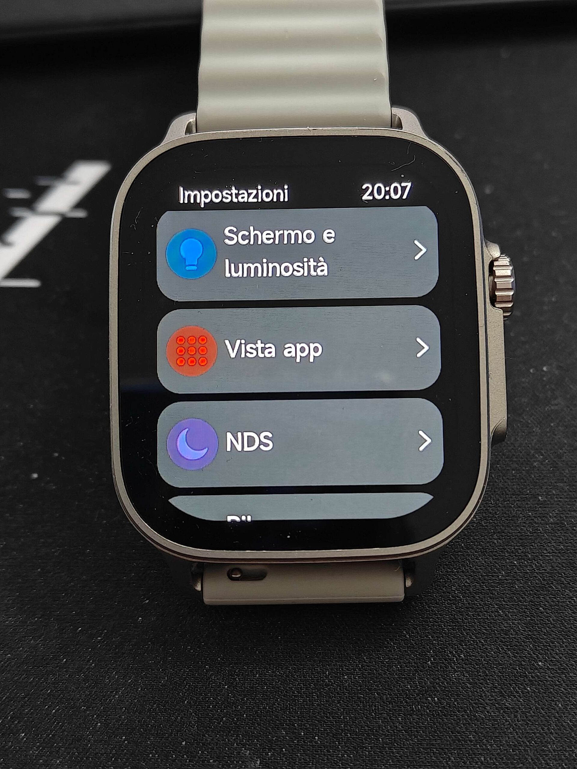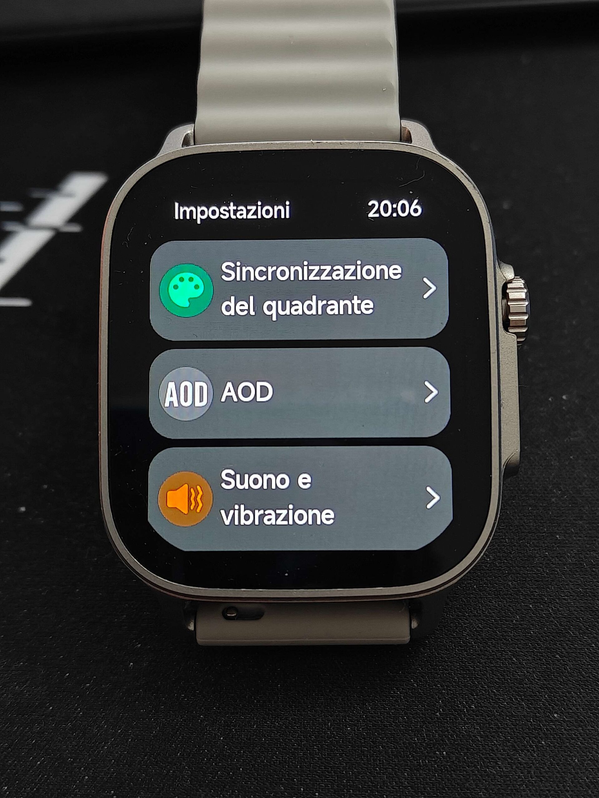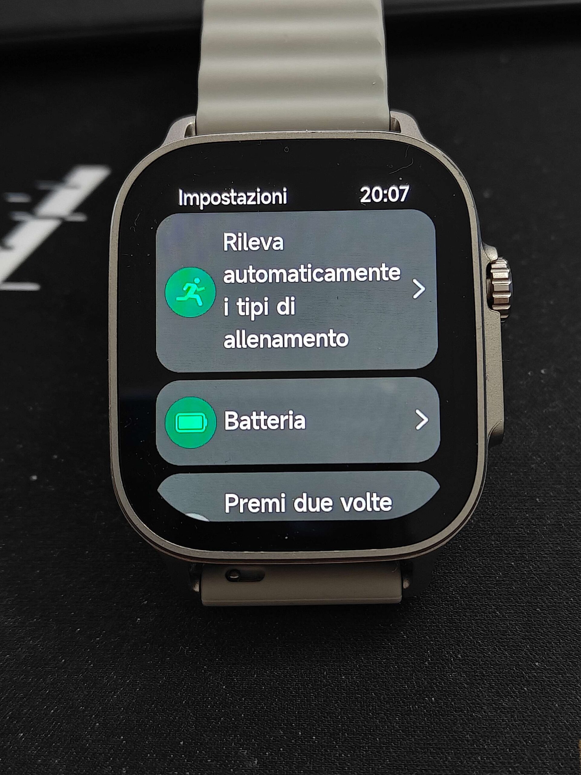 Il display AMOLED da 1,97″ offre neri profondi, colori vividi e una superficie utile che migliora notevolmente la lettura di notifiche, widget e gli aggiornamenti sul fitness. All’aperto la leggibilità è buona a patto di adattare manualmente la luminosità, in quanto non è presente un sensore di luminosità. Per ovviare al problema, consigliamo di impostare due profili manuali (indoor/outdoor) per non dover intervenire ogni volta.