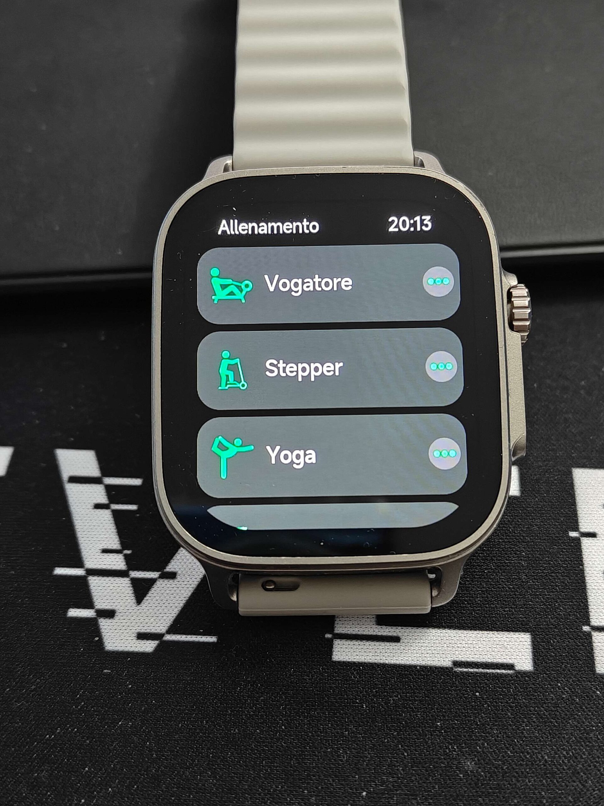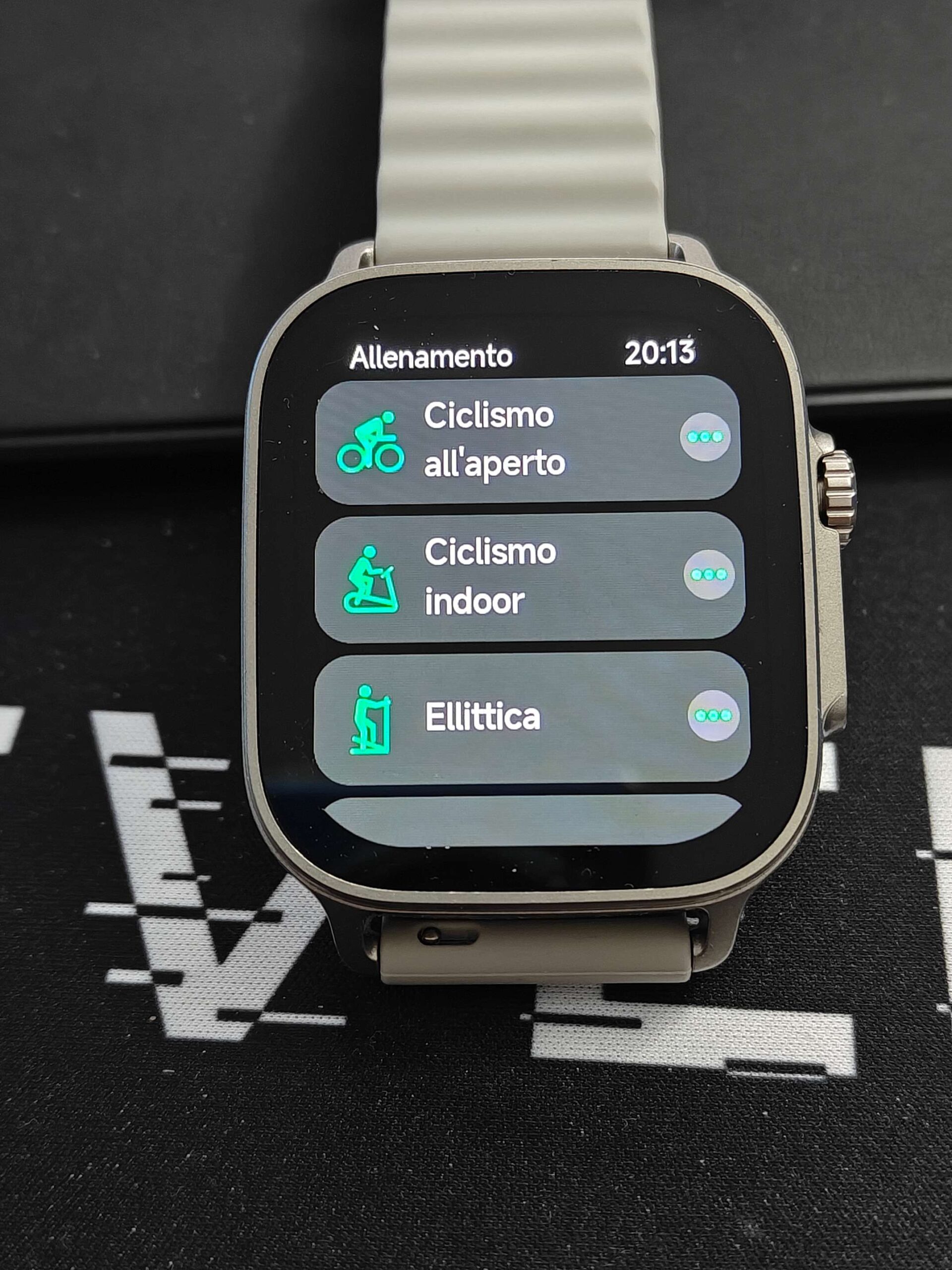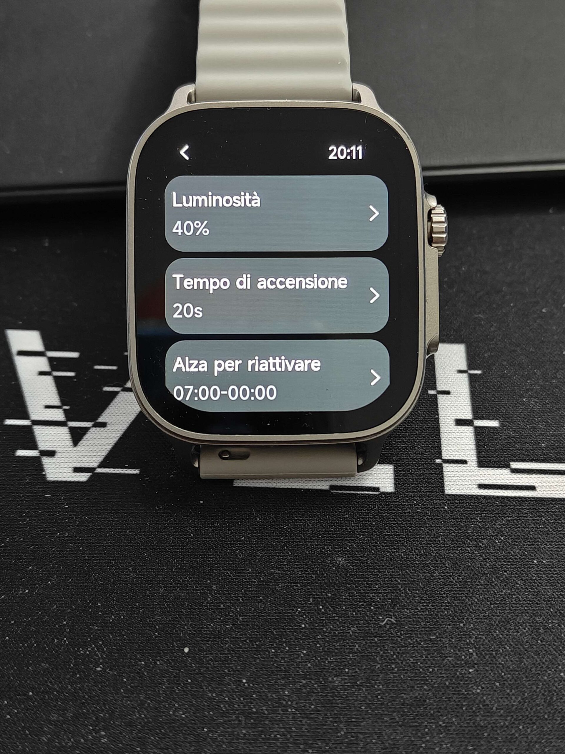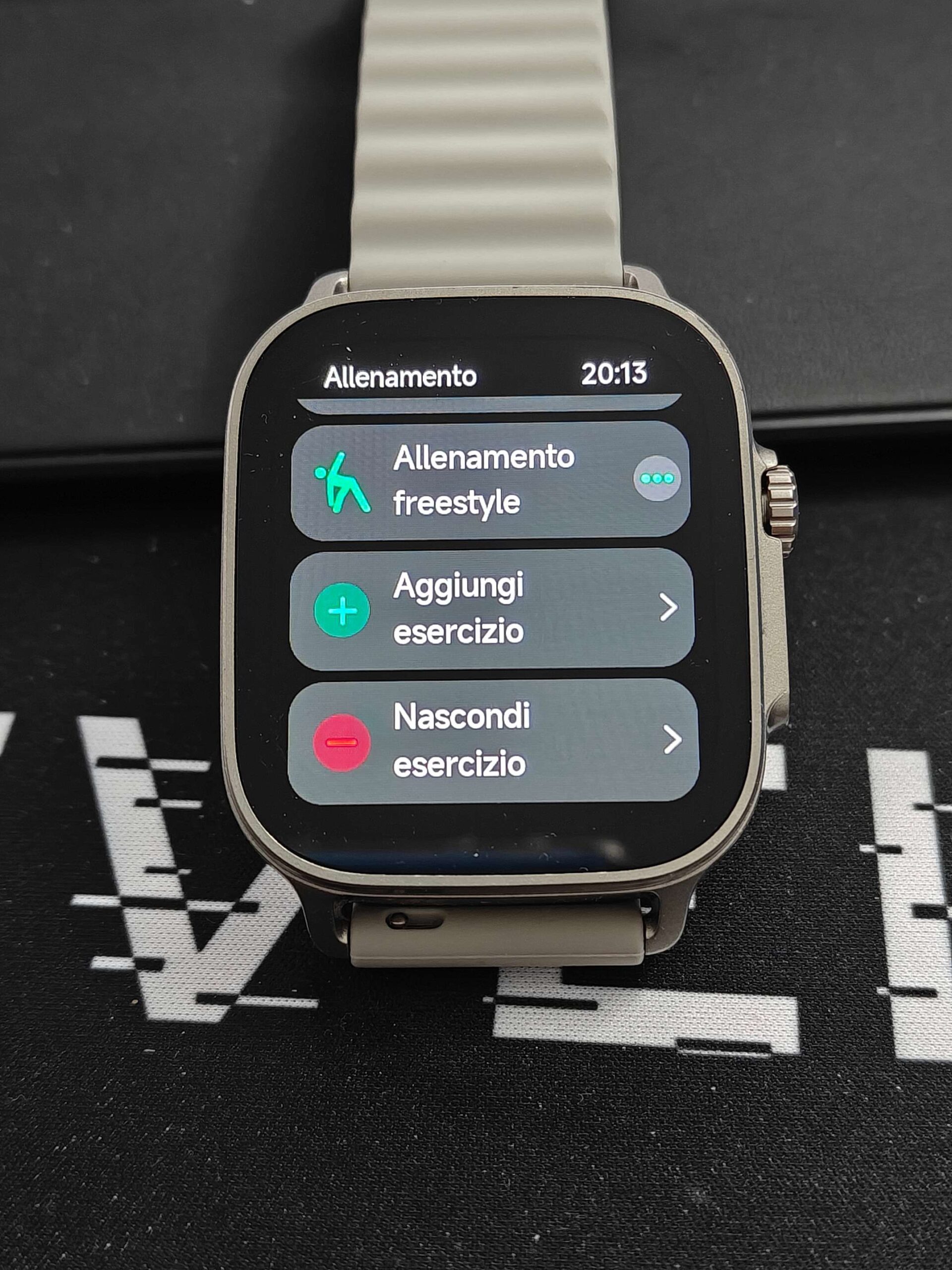 Il design adotta forme squadrate ma addolcite agli angoli, con una cassa dall’effetto metal‑look e una corona laterale in lega e linee pulite che si abbinano tanto a un contesto sportivo quanto a quello lavorativo. Al polso è leggero e non ingombrante, con una sensazione di solidità superiore rispetto alla sua fascia di appartenenza. Al polso è leggero e comodo per tutto il giorno; Il cinturino in silicone risulta morbido al tatto e traspirante, caratteristiche fondamentali per un dispositivo pensato per l’attività fisica, inoltre utilizza un sistema di sgancio rapido standard da 22 mm.