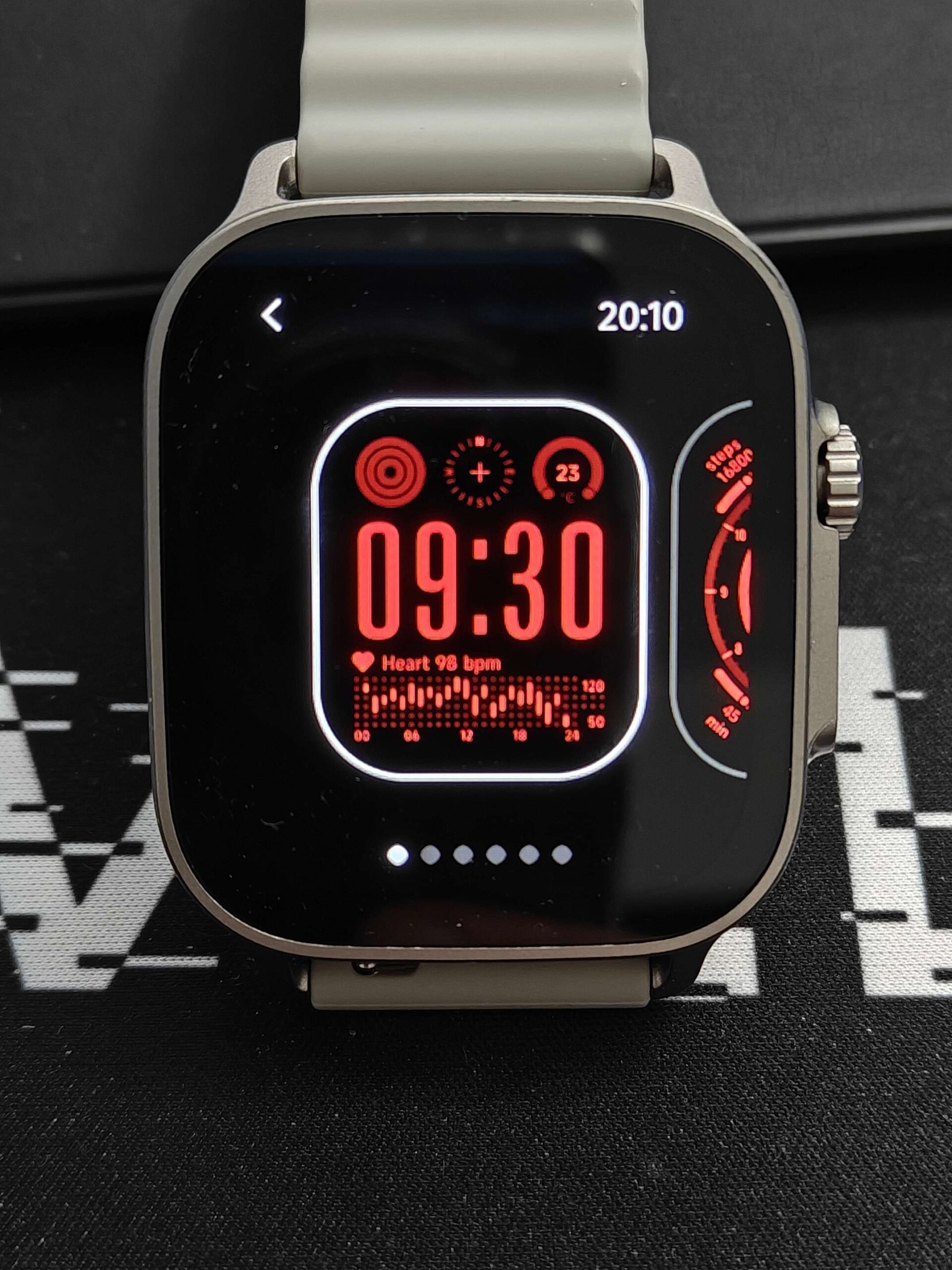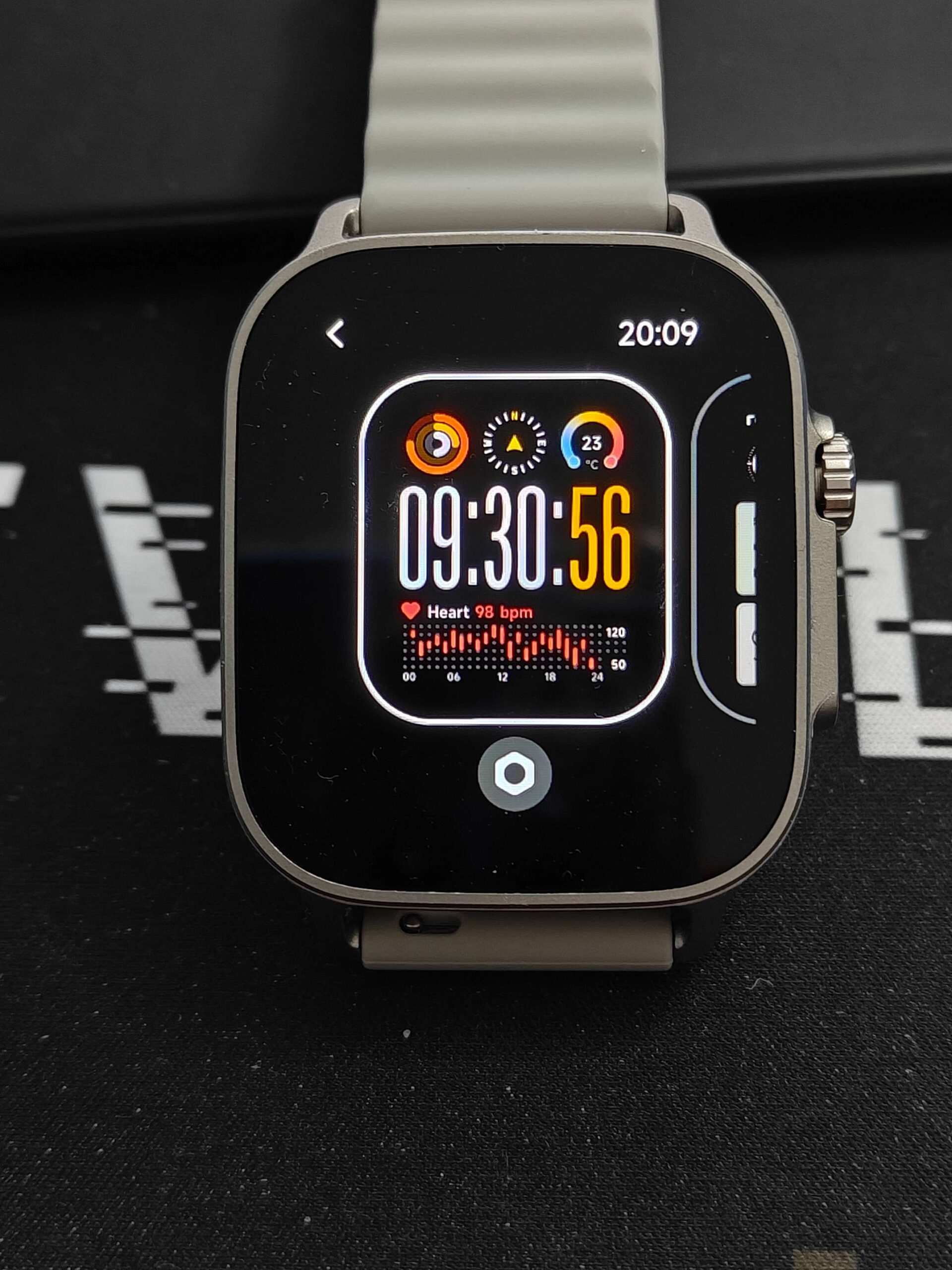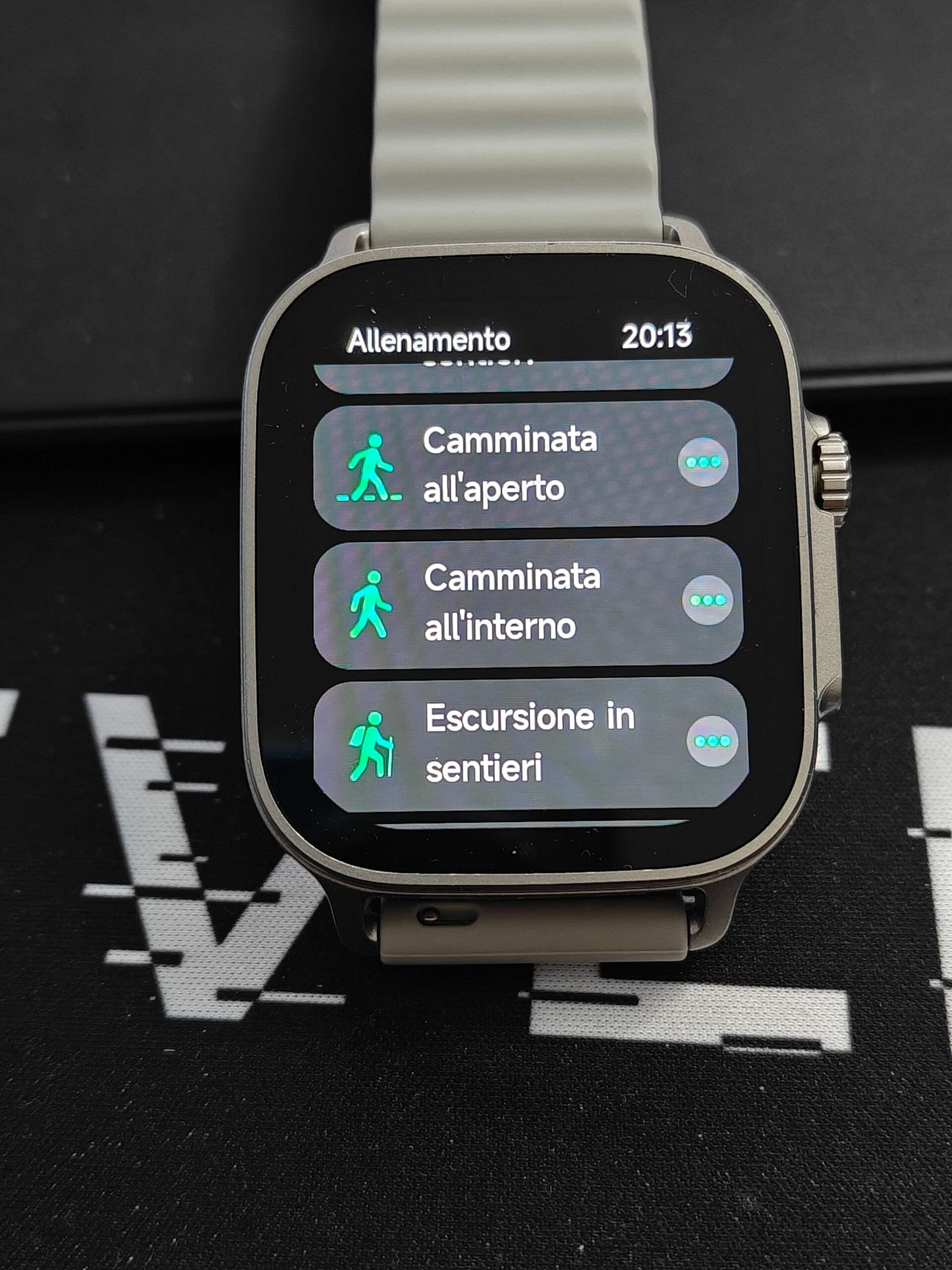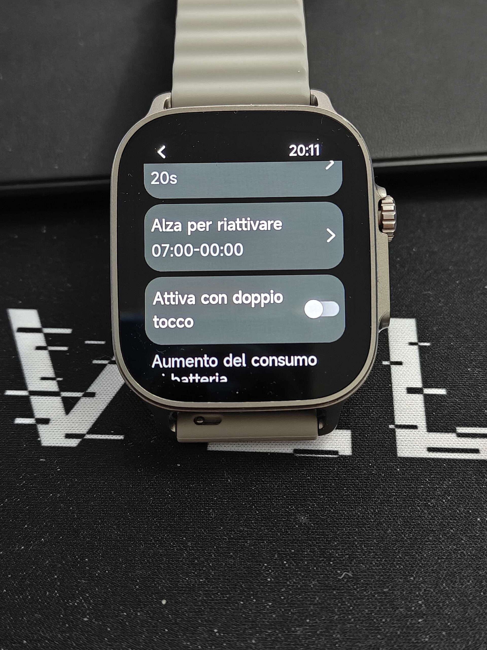 Il design adotta forme squadrate ma addolcite agli angoli, con una cassa dall’effetto metal‑look e una corona laterale in lega e linee pulite che si abbinano tanto a un contesto sportivo quanto a quello lavorativo. Al polso è leggero e non ingombrante, con una sensazione di solidità superiore rispetto alla sua fascia di appartenenza. Al polso è leggero e comodo per tutto il giorno; Il cinturino in silicone risulta morbido al tatto e traspirante, caratteristiche fondamentali per un dispositivo pensato per l’attività fisica, inoltre utilizza un sistema di sgancio rapido standard da 22 mm.