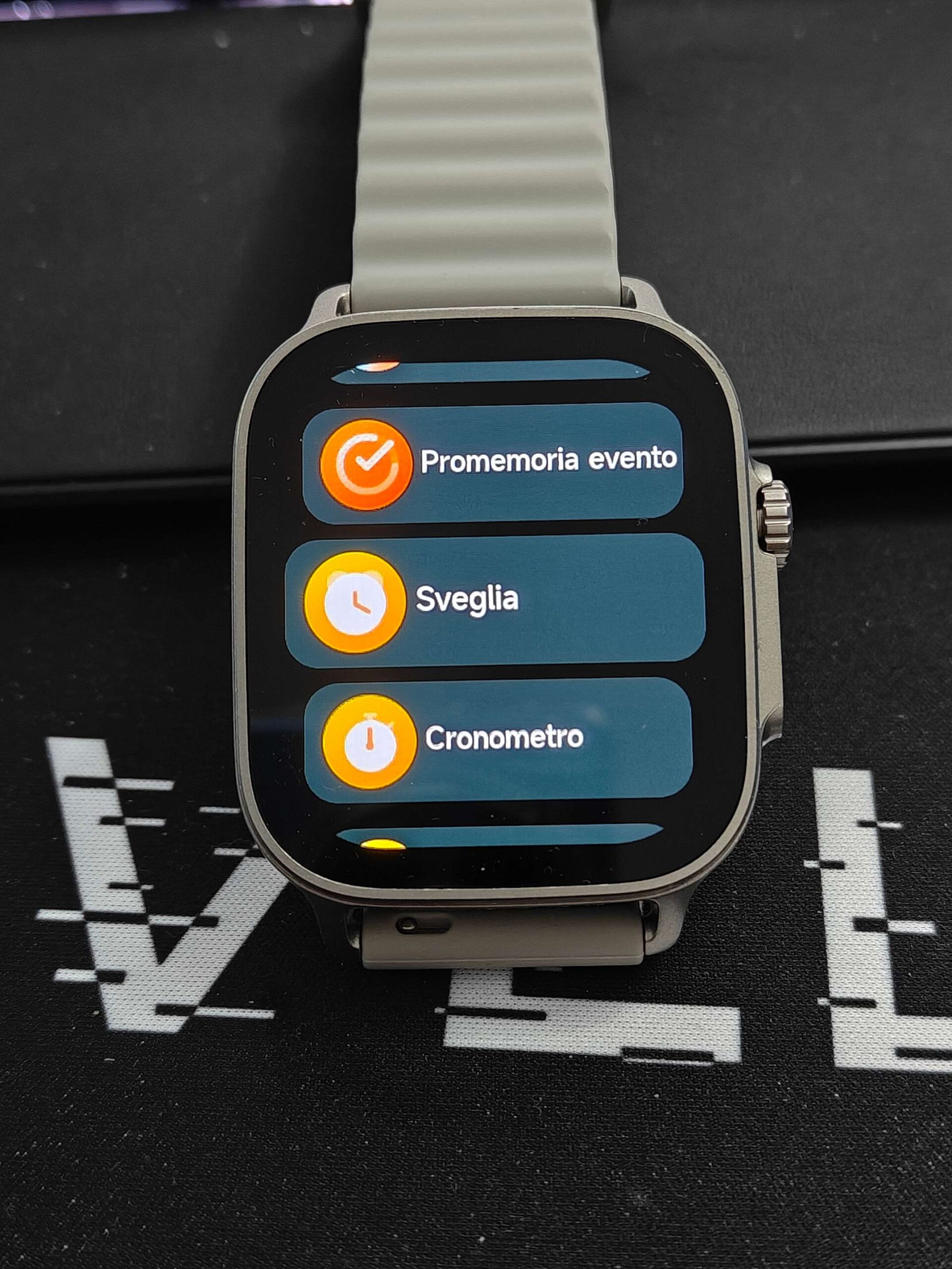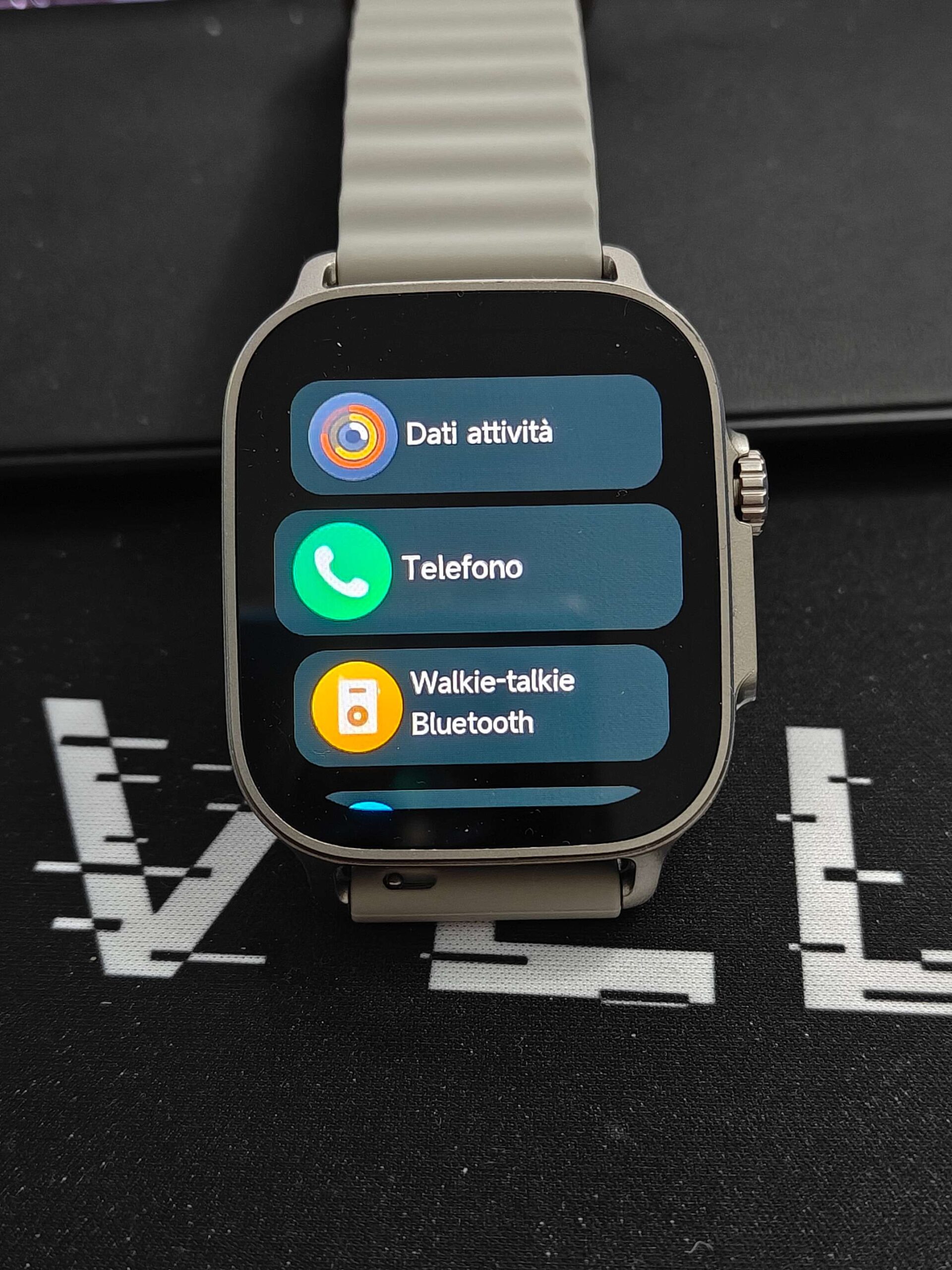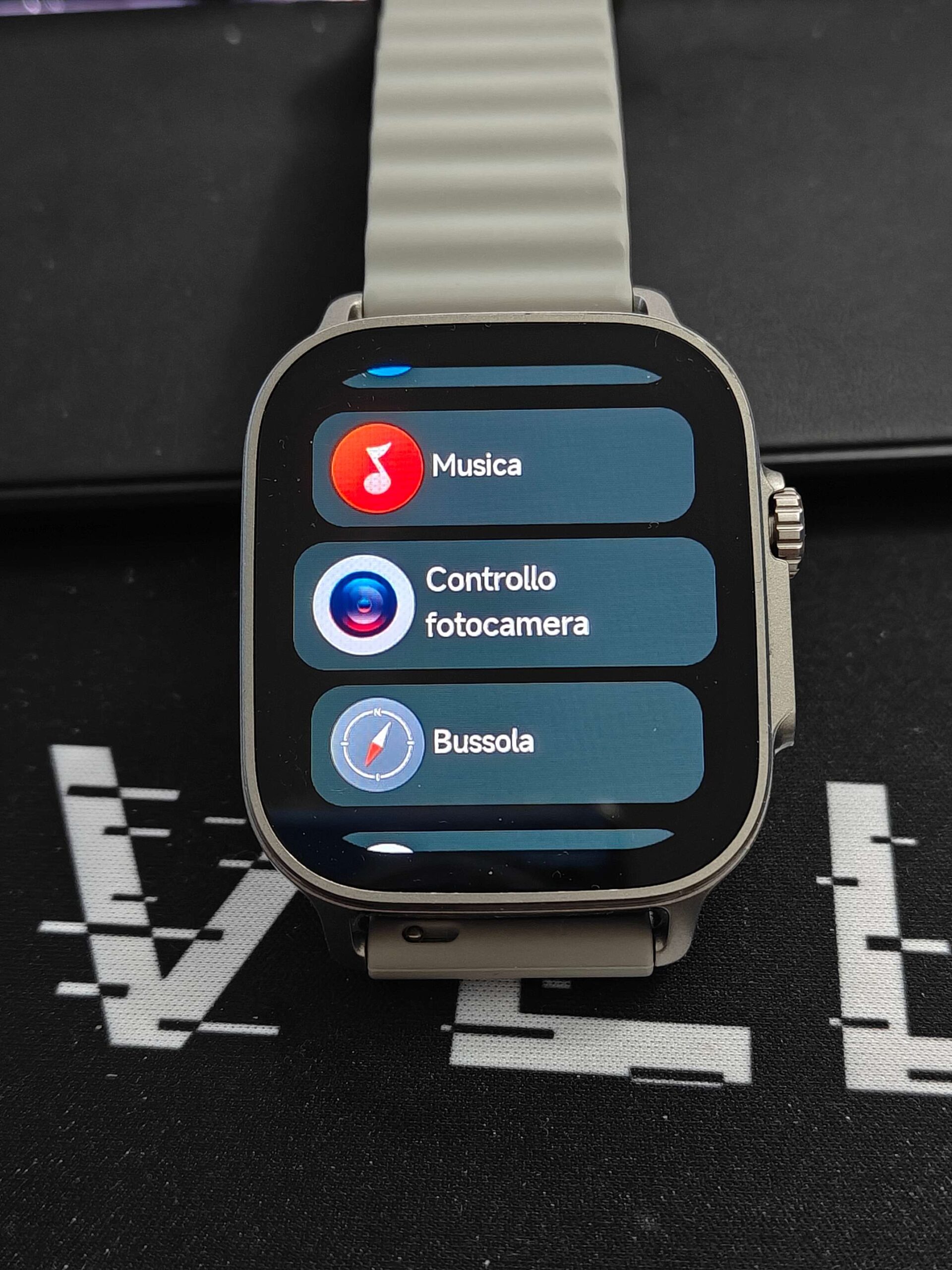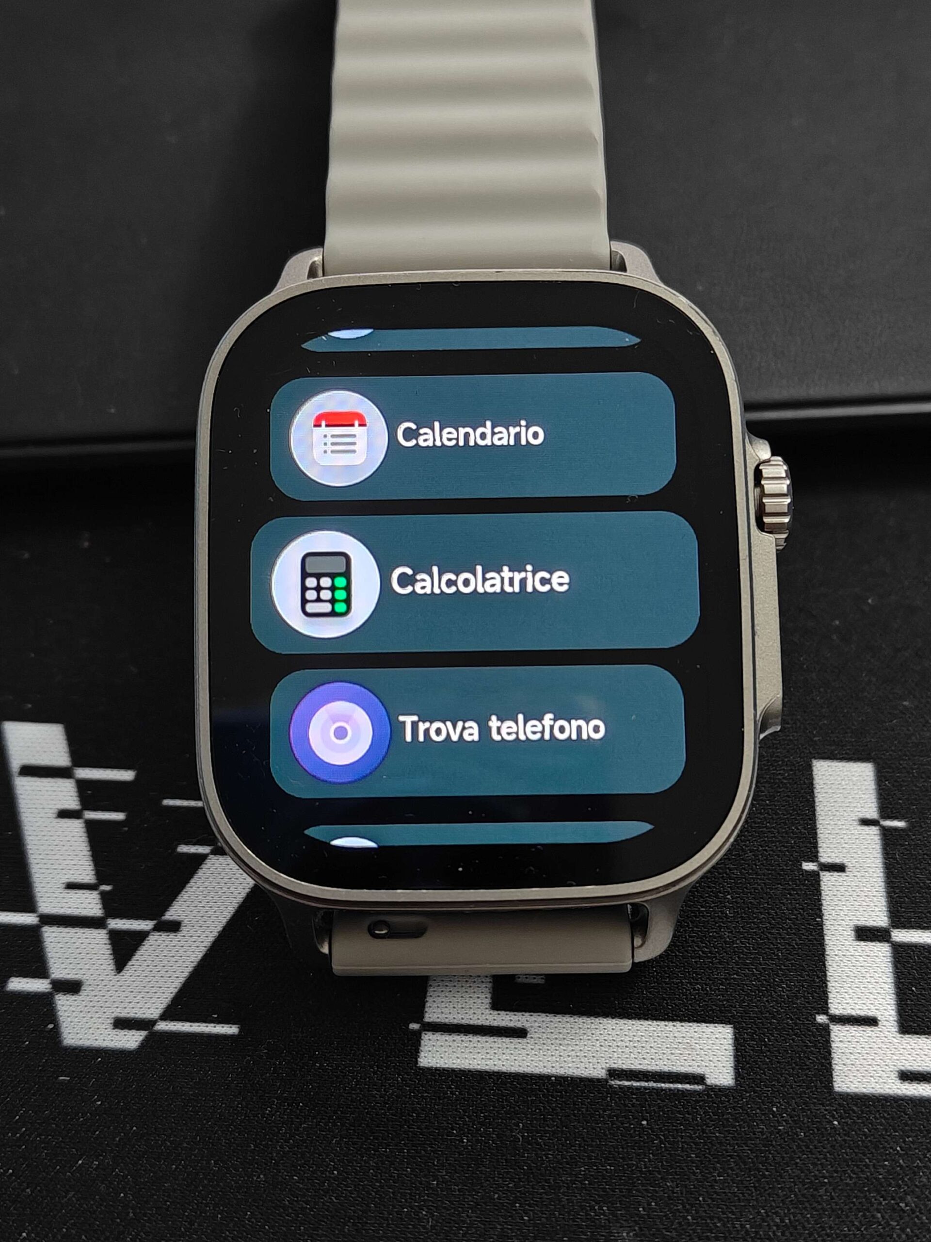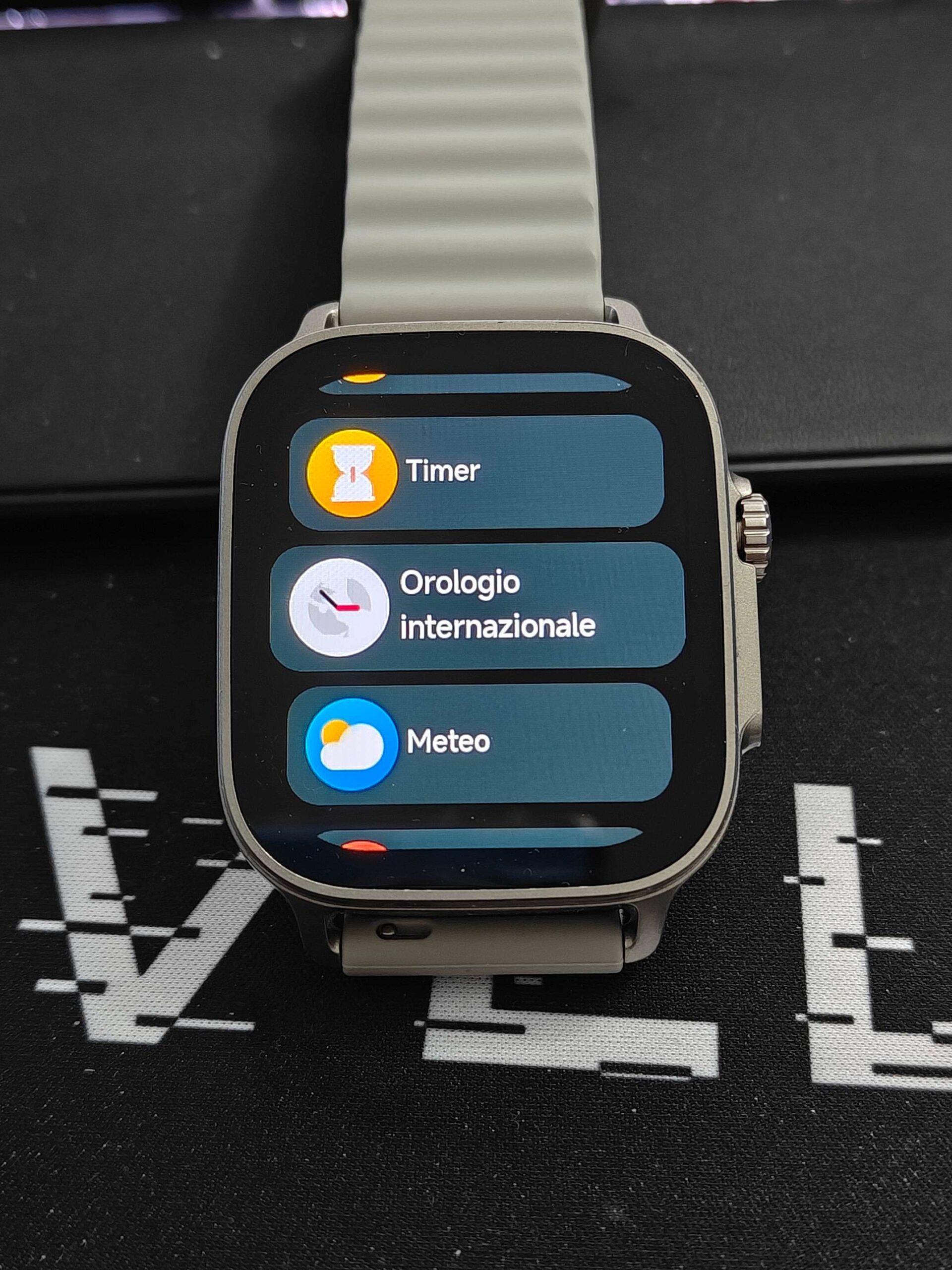 L’interfaccia è lineare e reattiva con animazioni sobrie e zero lag nelle schermate principali. Widget utili a portata di swipe (meteo, attività, cardio, allenamento). Notifiche puntuali con anteprime ampie; interazione essenziale ma affidabile. Presenti timer, sveglie, torcia, controlli musica, promemoria.