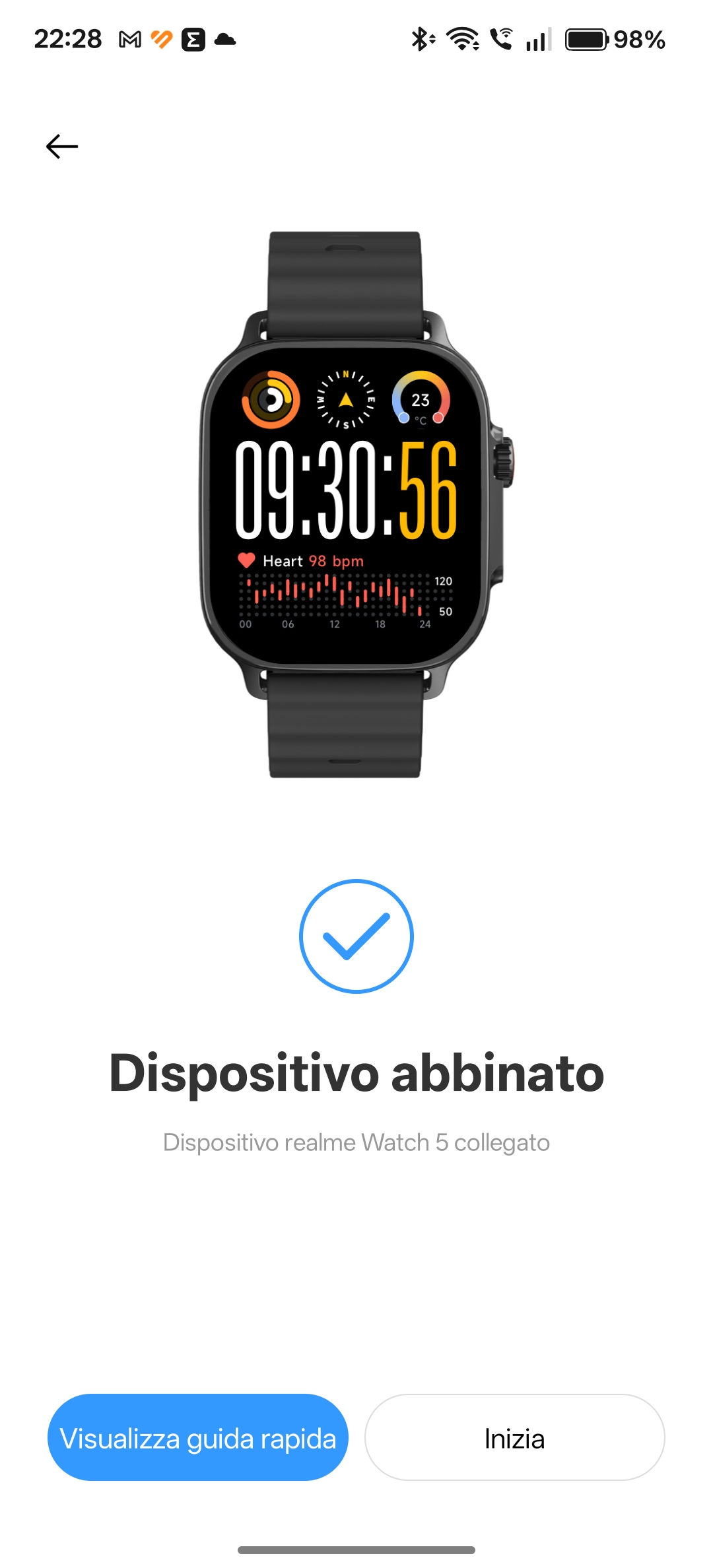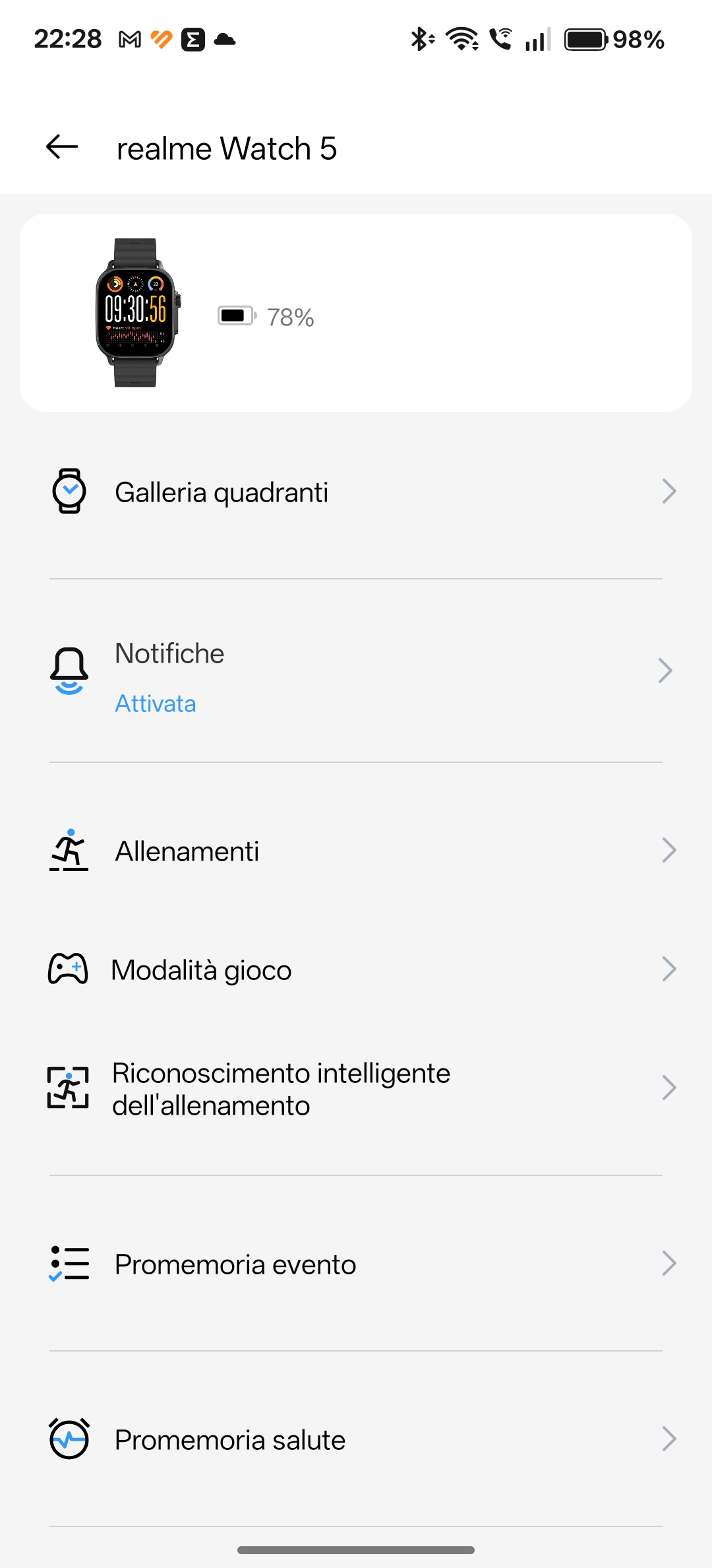 L’associazione avviene scaricando l’app di gestione, realme link (disponibile sia per Android che per iOS), e risulta essere molto facile e immediata, tramite l’app abbiamo accoppiato i dispositivi e cominciato la configurazione dello Smartwatch.