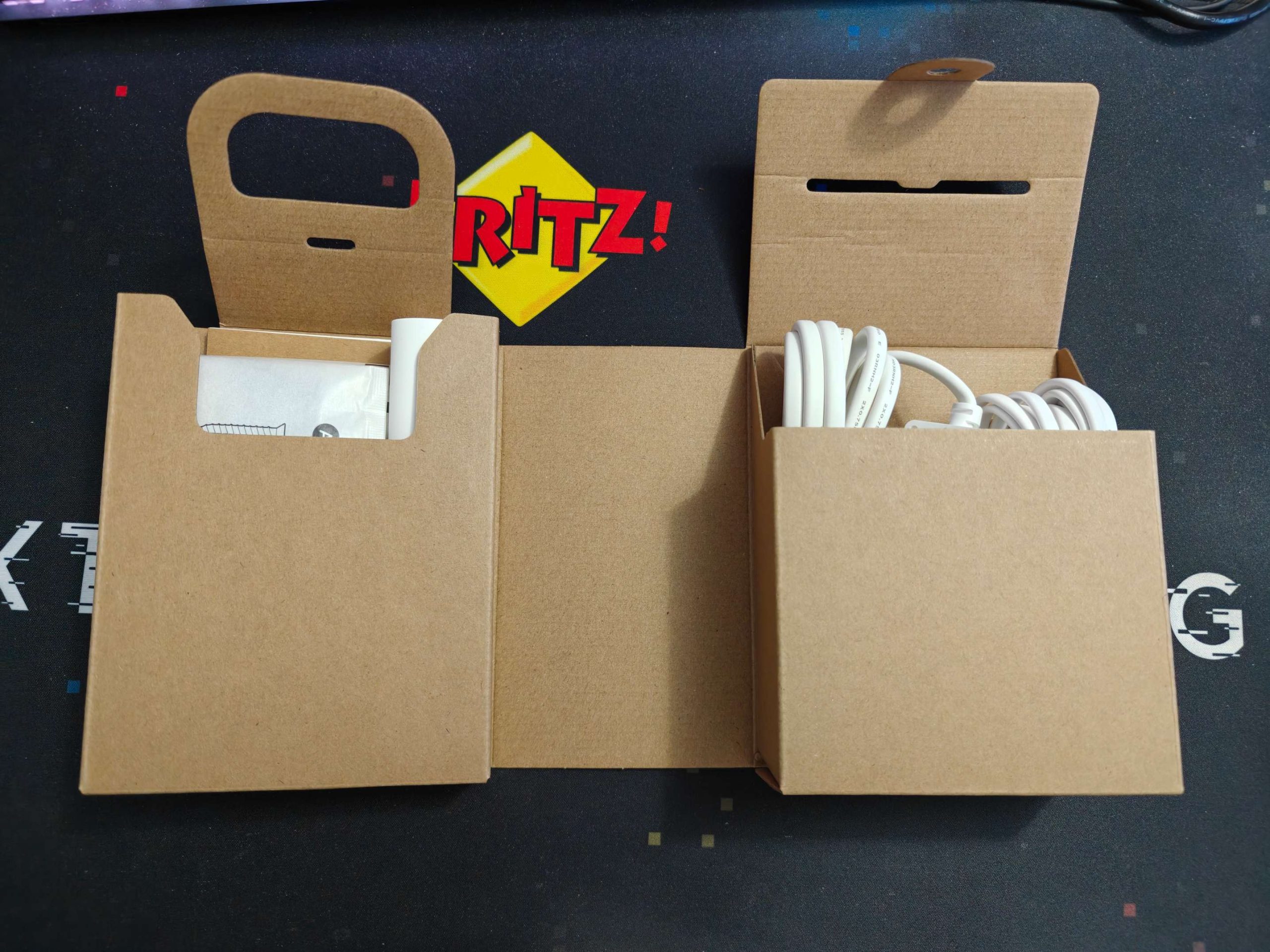 La confezione è molto grande e oltre alla cam, troviamo, alimentatore con cavetto USB C, tasselli per l’eventuale montaggio a parete, adesivo di sicurezza e la guida rapida.