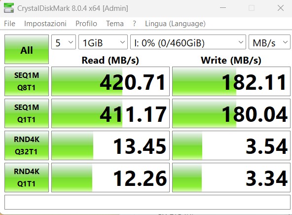 La velocità in scrittura è ottima e rispetta le specifiche dichiarate, il problema principale è l’aumento di calore un caso di grosse quantità di dati che vanno scendere notevolmente le velocità di trasferimento in scrittura.
