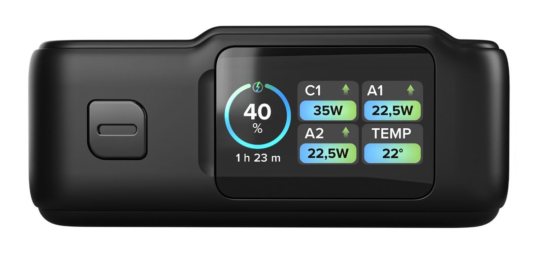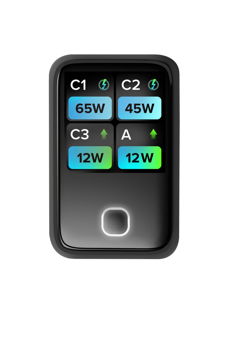 Il display digitale avanzato consente di visualizzare in tempo reale la potenza erogata, le porte attive e lo stato di ricarica, fornendo informazioni chiare e immediate per il monitoraggio dei dispositivi collegati. Compatto e altamente efficiente, lo Smart Wall Charger è progettato per rispondere alle esigenze di un utilizzo sia professionale sia quotidiano, offrendo la potenza ideale per laptop, smartphone, tablet e accessori audio.
