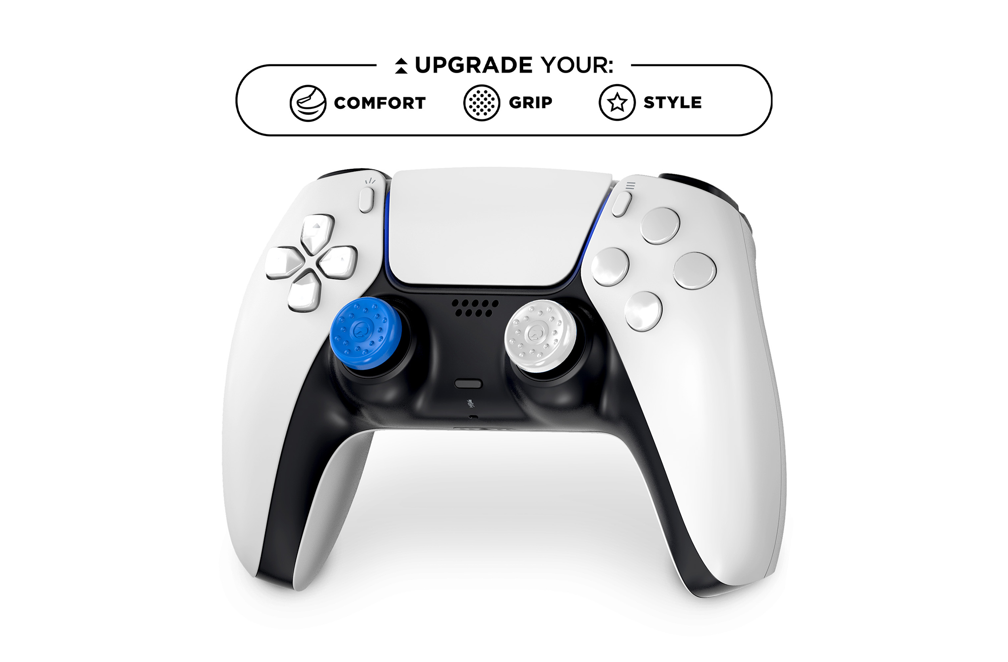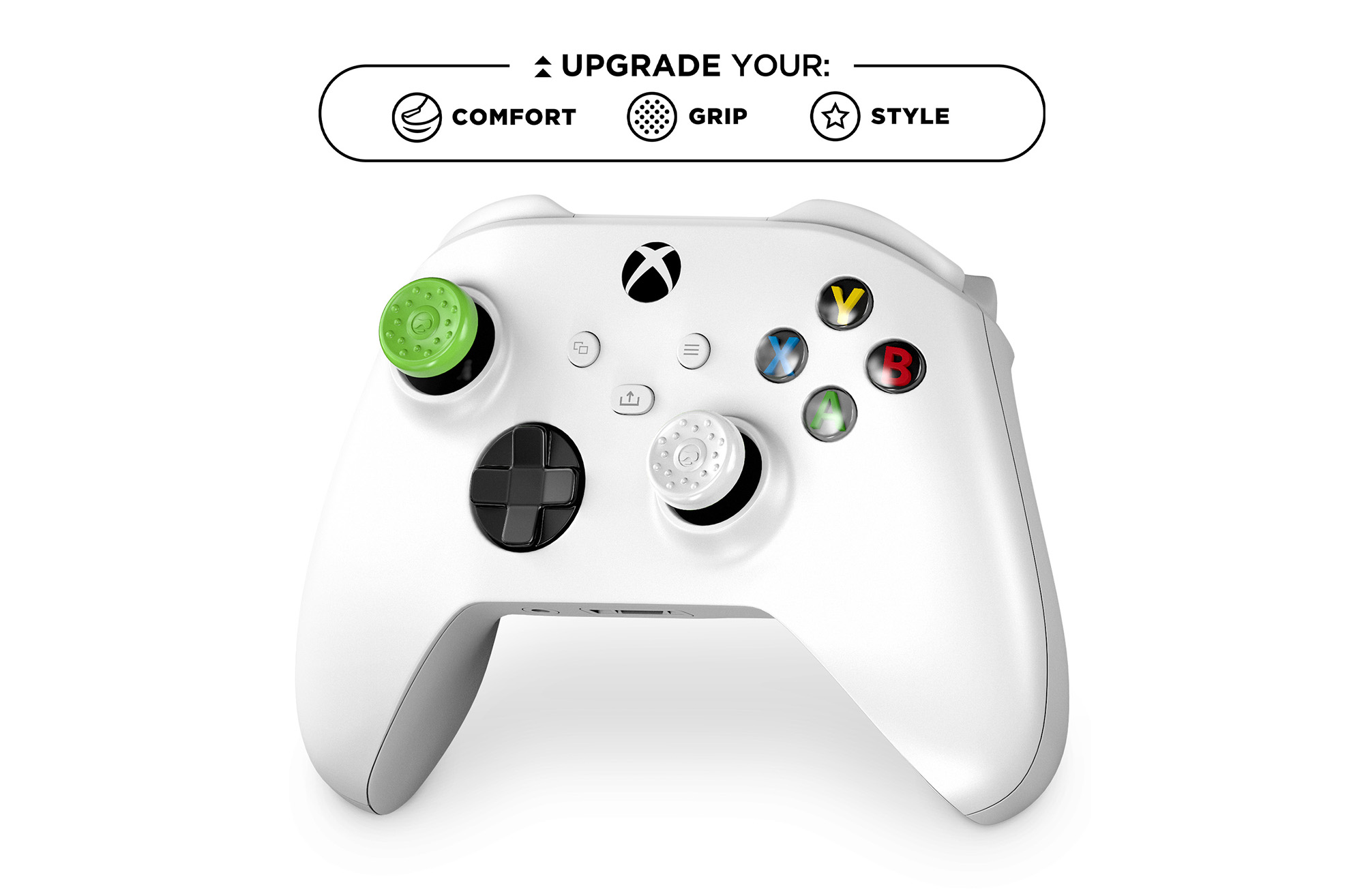 Le impugnature antiscivolo per pollice sono realizzate in un materiale di gomma brevettato per offrire maggiore presa, comfort e controllo in ogni gioco. Rimangono al loro posto durante le sessioni di gioco intense, e sono tanto resistenti quanto aderenti.